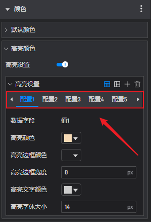 开启“高亮设置”的按钮后,才可以单独对组件中每个数据字段的高亮颜色进行配置。