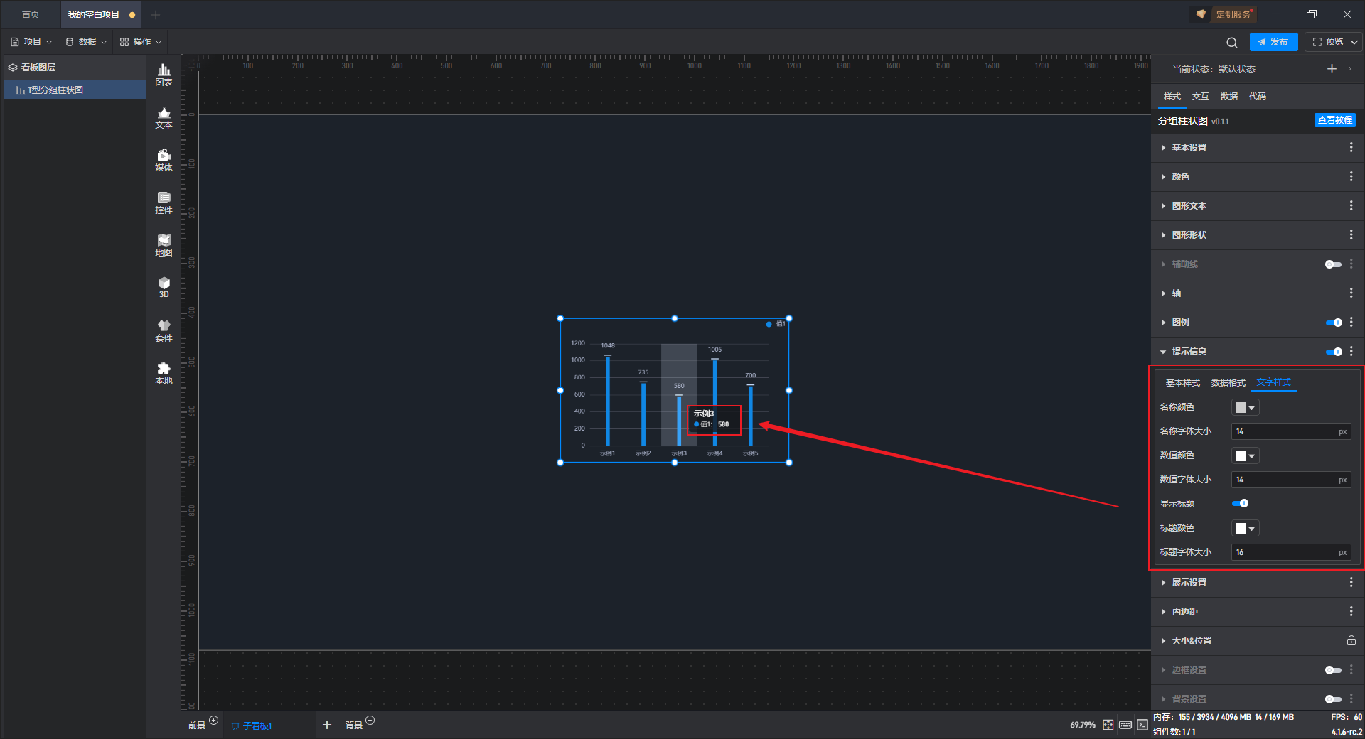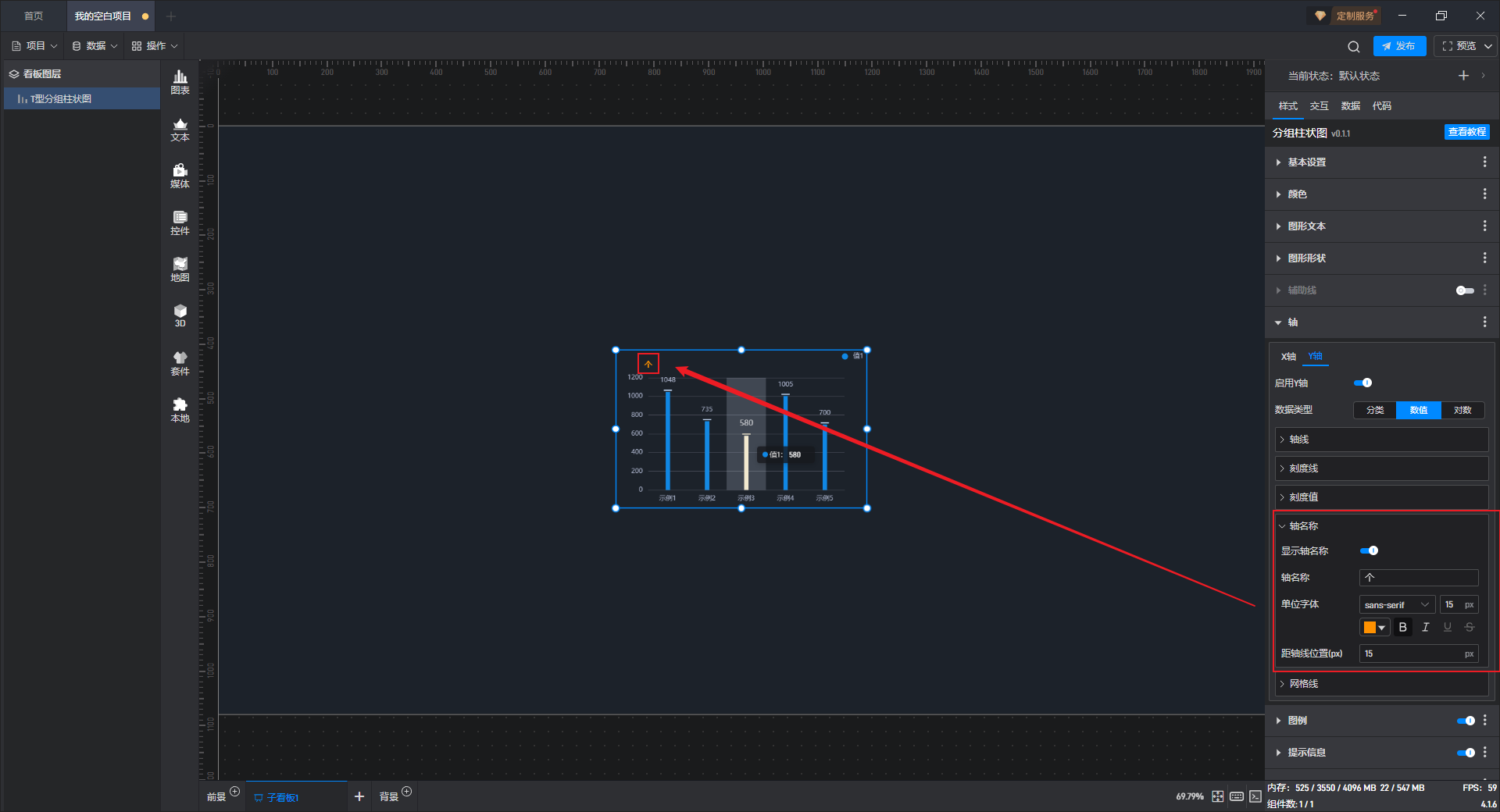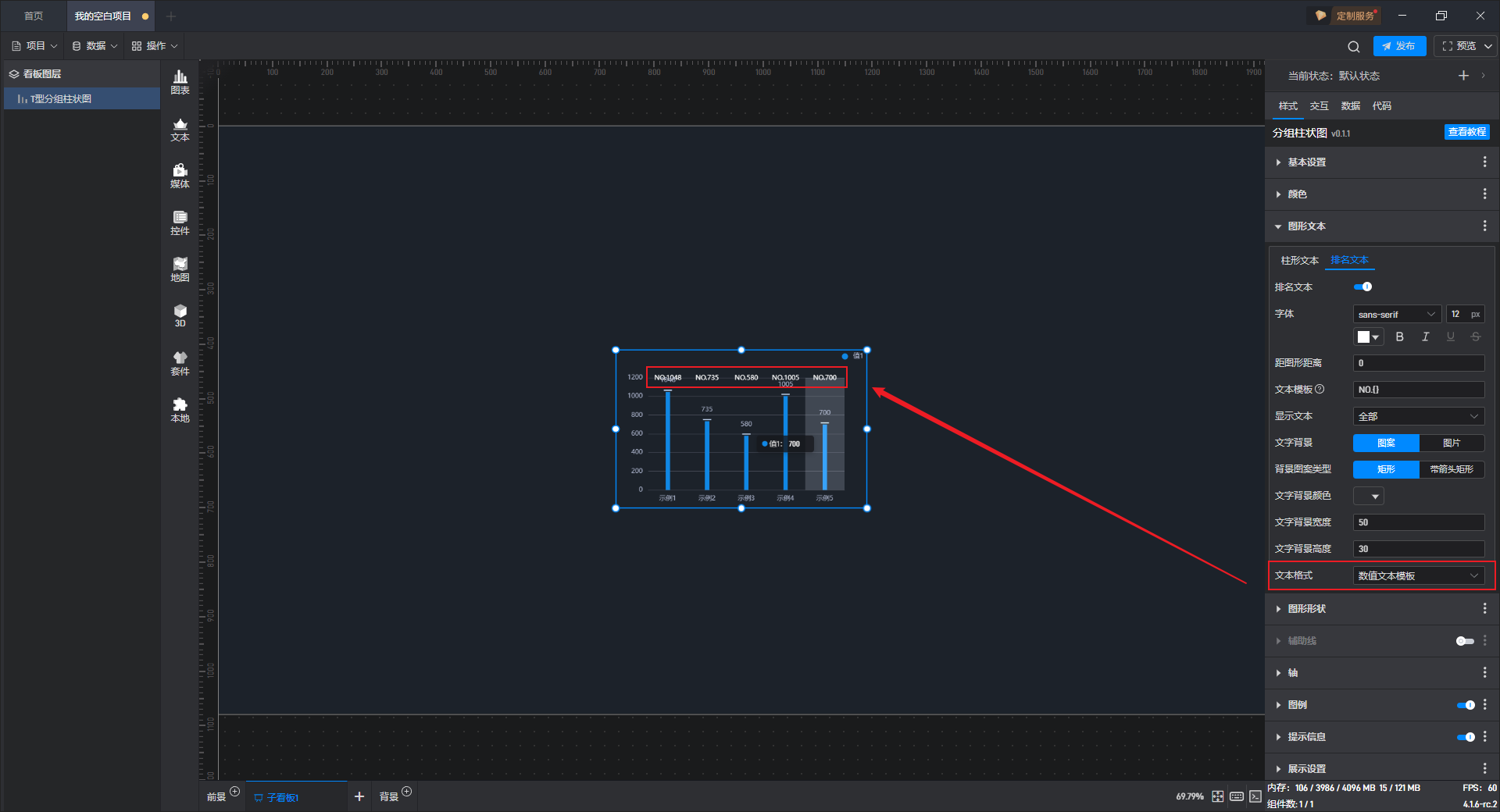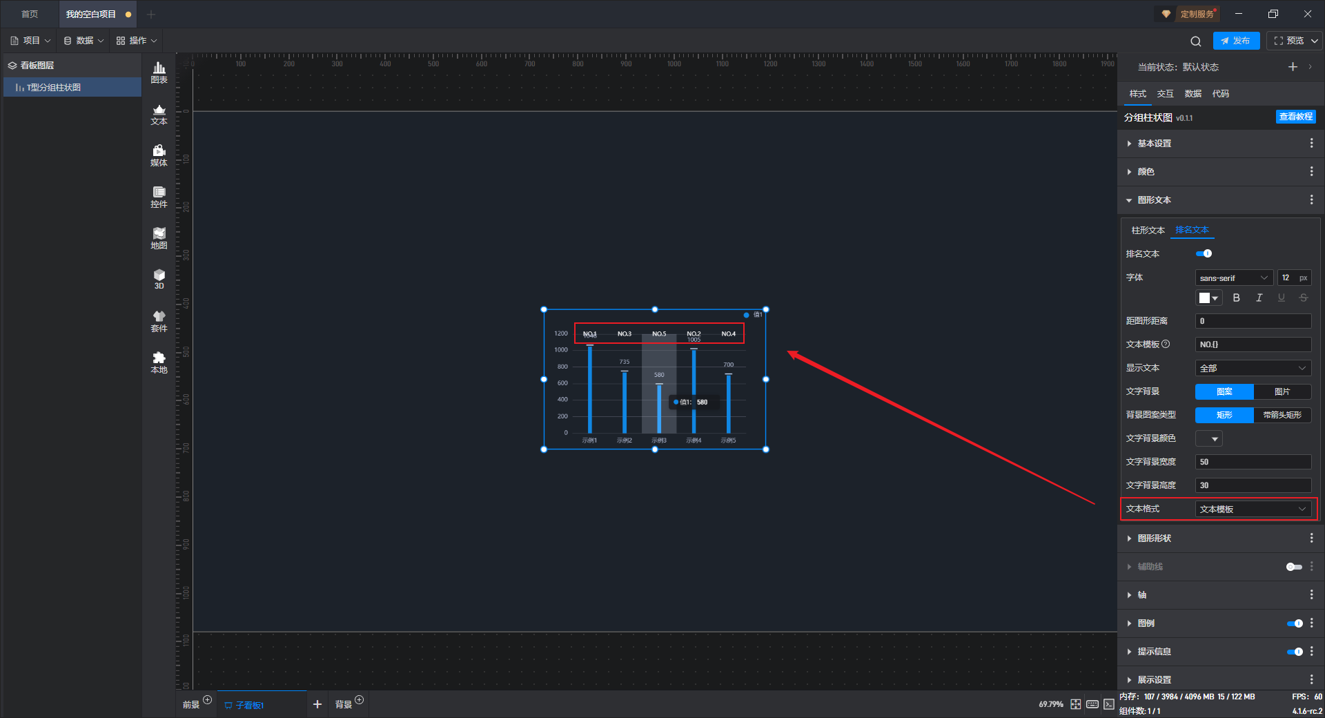 开启“排名文本”按钮后,组件中才能显示图形排名。