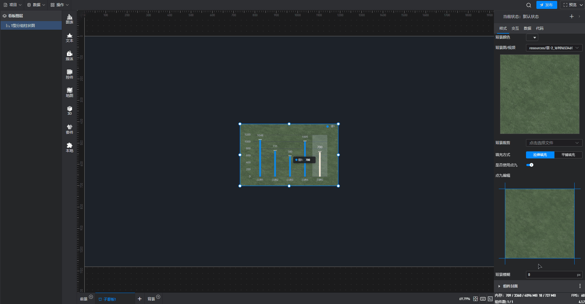 分组柱状图 使用点九填充背景样式,如下图所示: