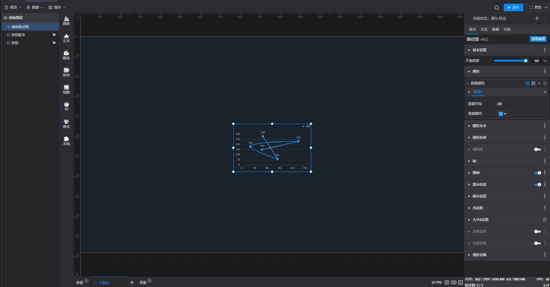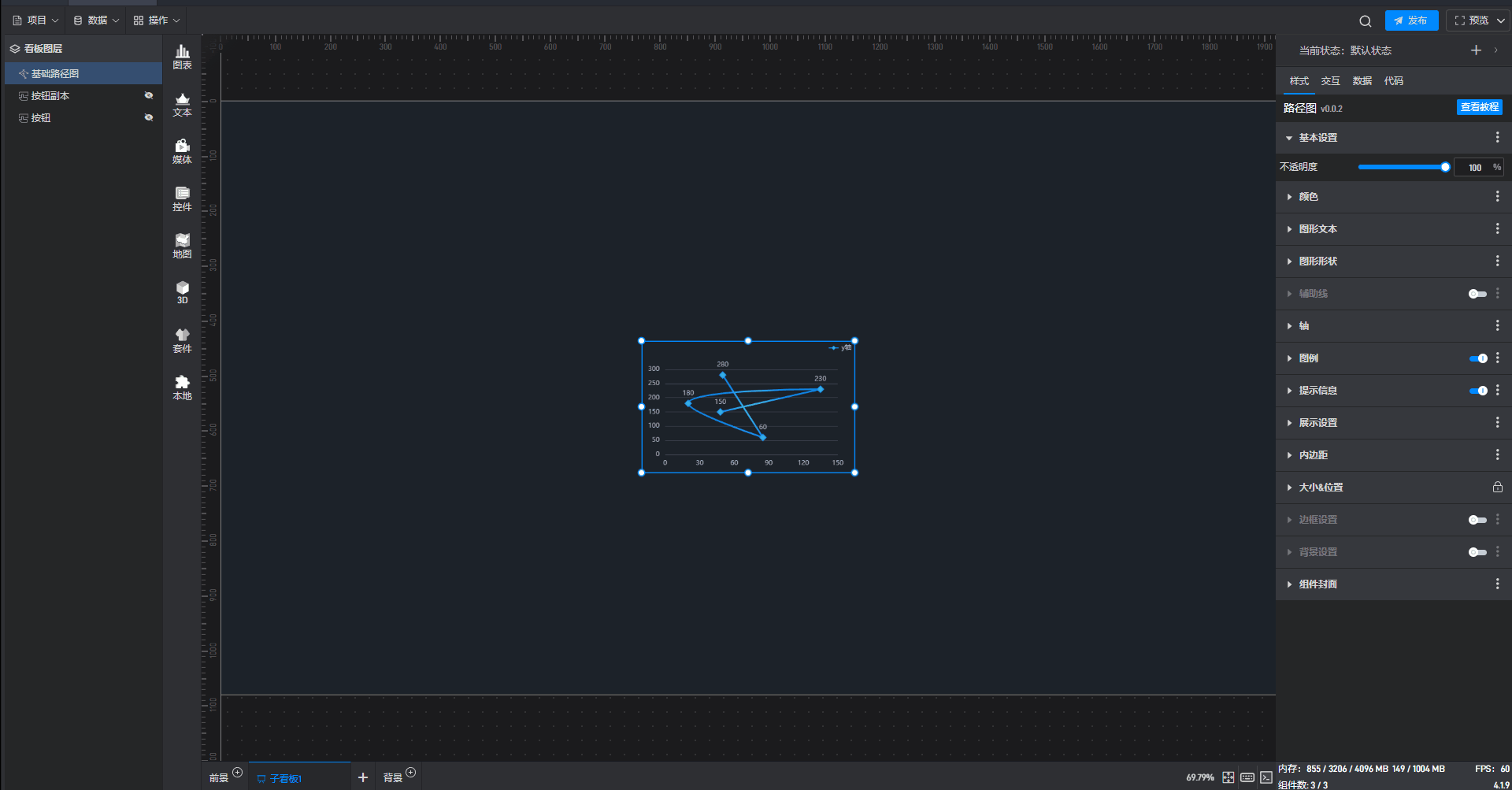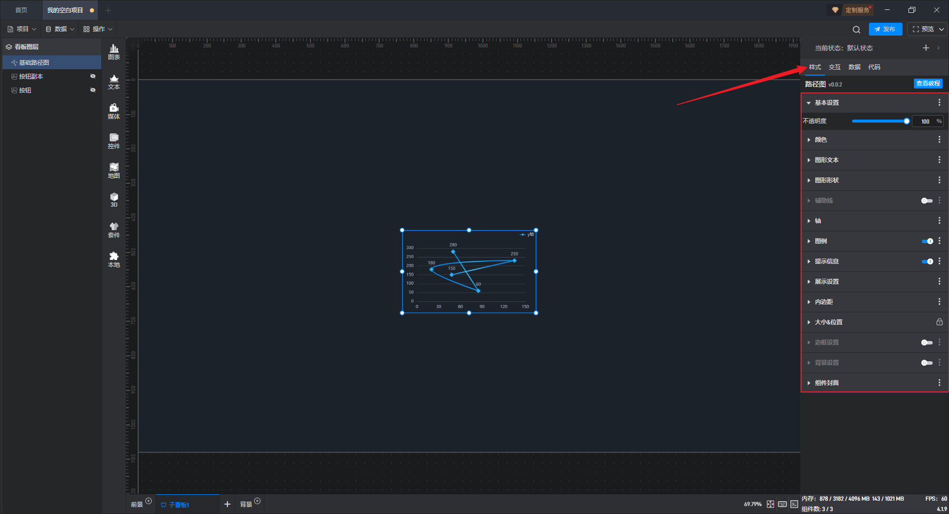 所谓固定样式,就是设置完之后一直保持的组件样式,这是和 3.2 章节中的条件样式相对应的,条件样式就是根据数据的变化改变组件的样式。