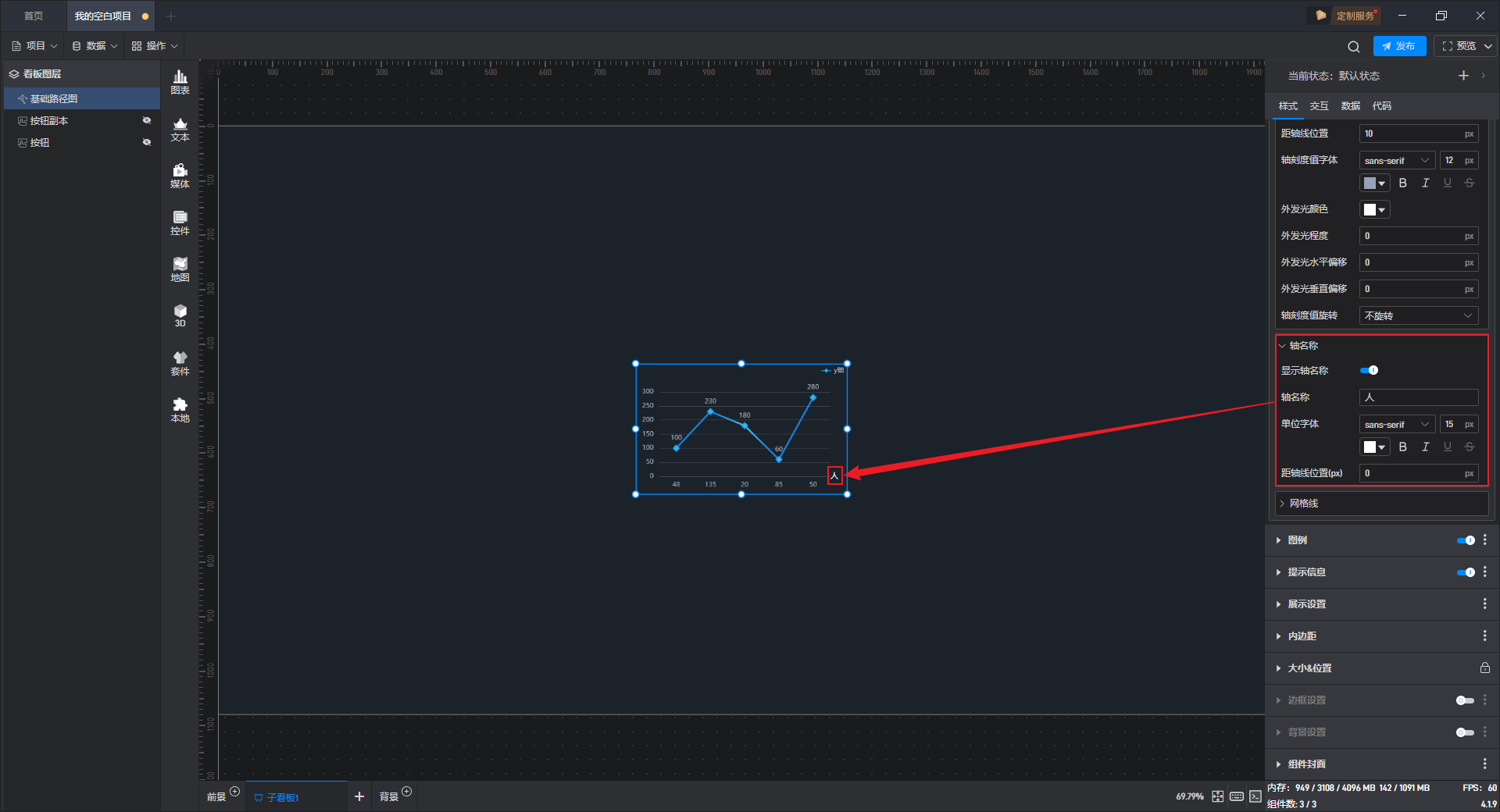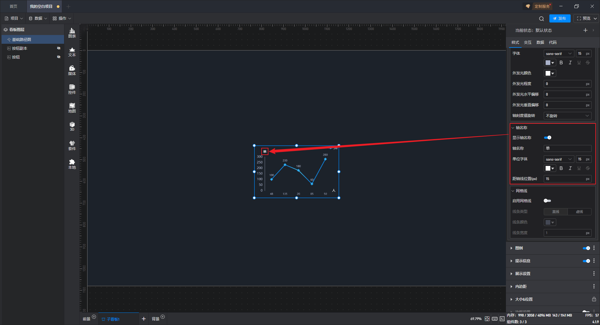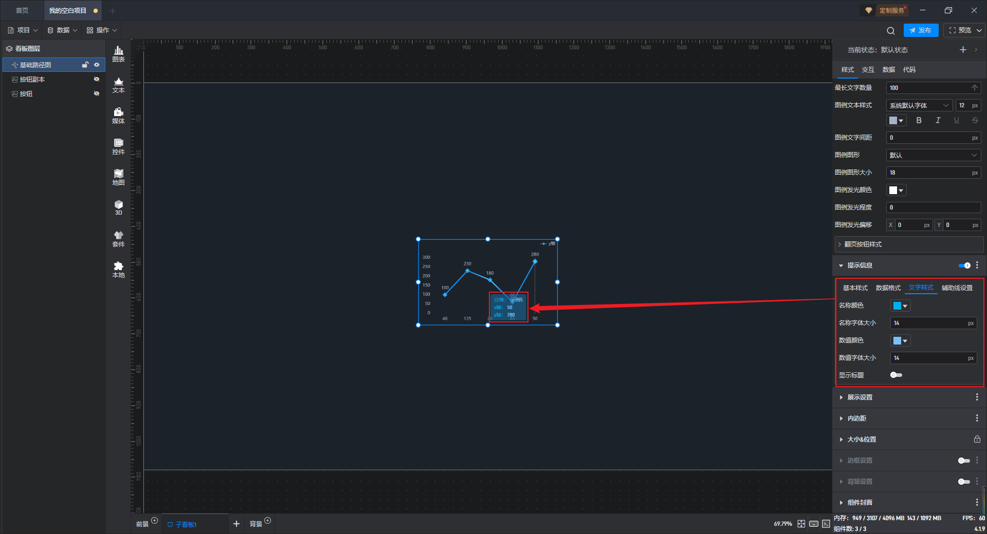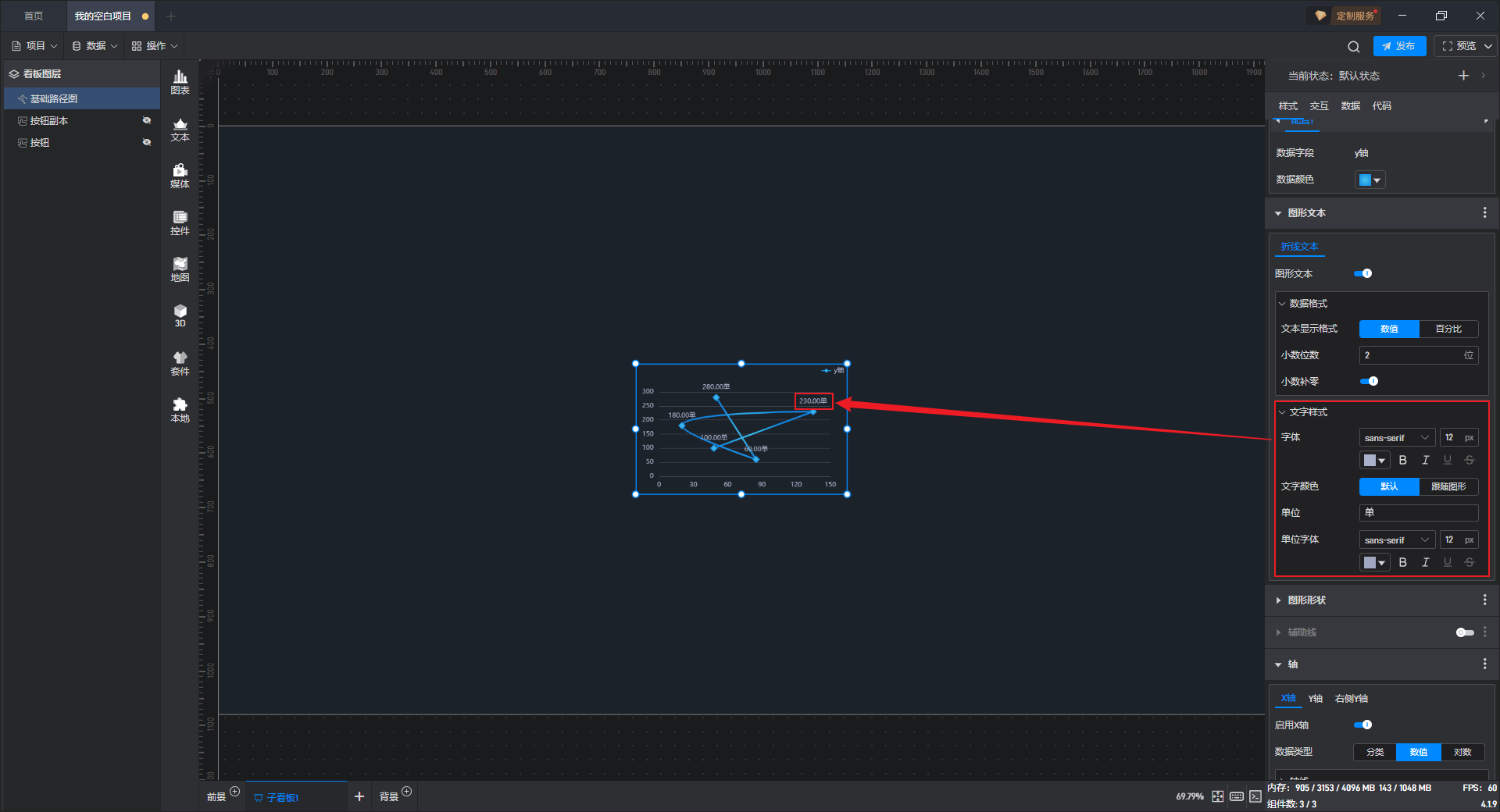 开启“图形文本”按钮后,组件中才能显示图形文字。