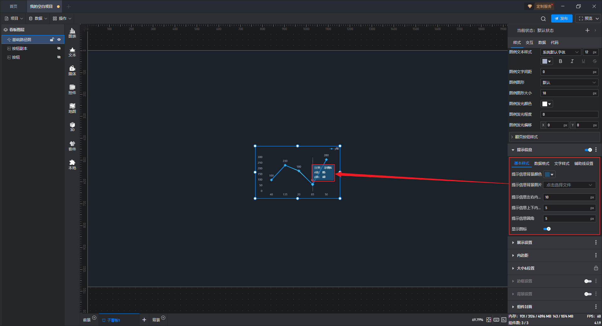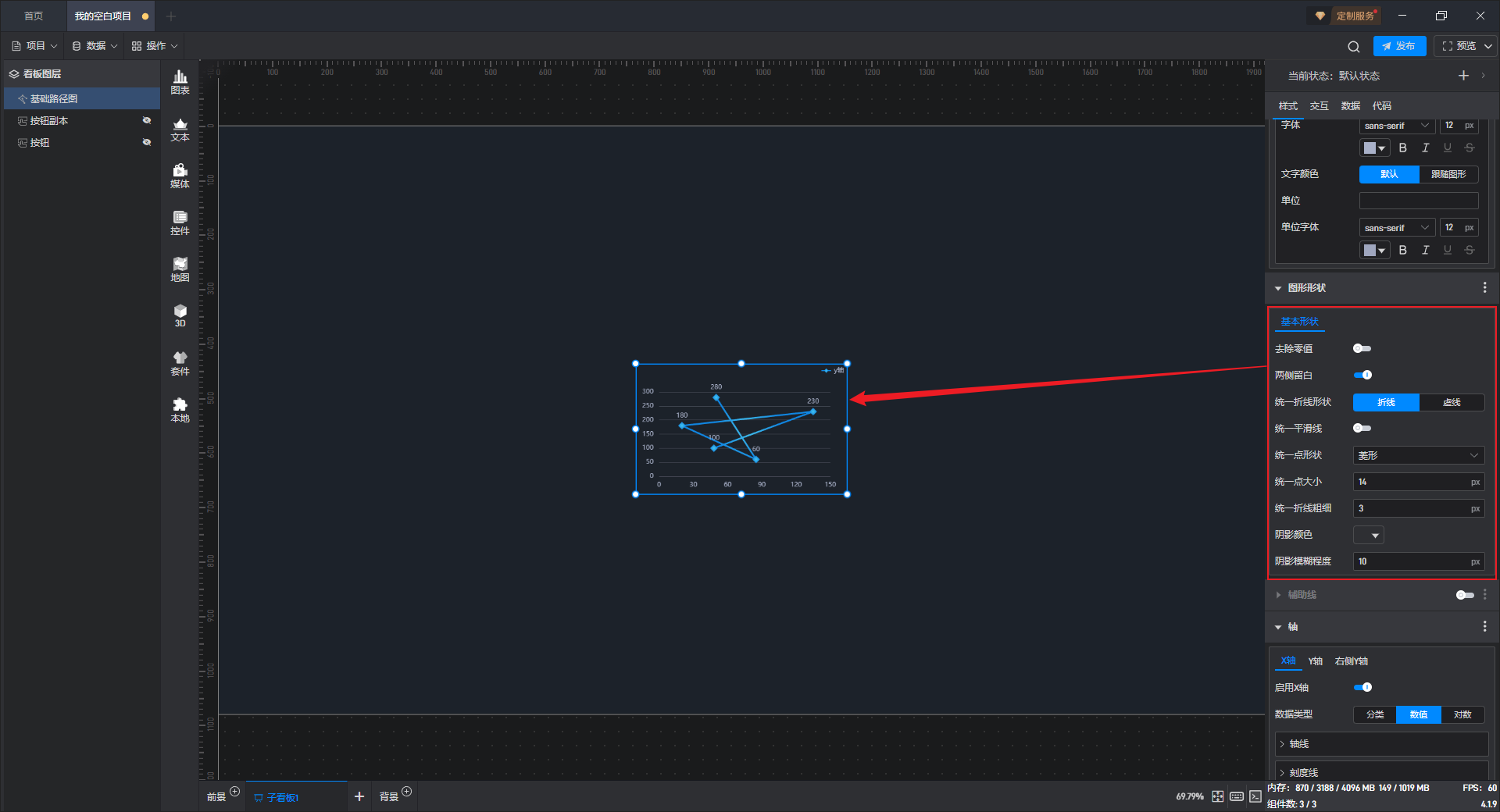 | 阴影模糊程度 | 自定义设置图形阴影模糊程度,默认模糊大小为“10px”。 |