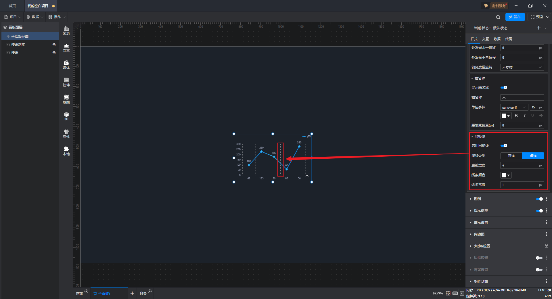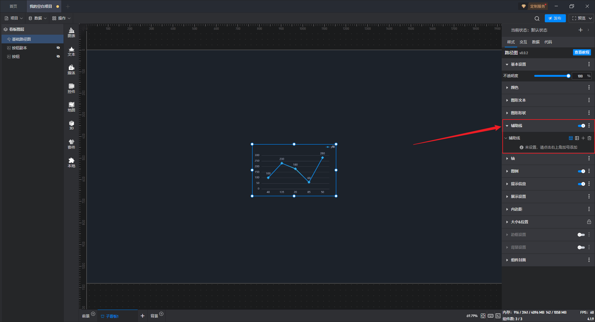 开启辅助线按钮后,可以添加辅助线,并进行设置。