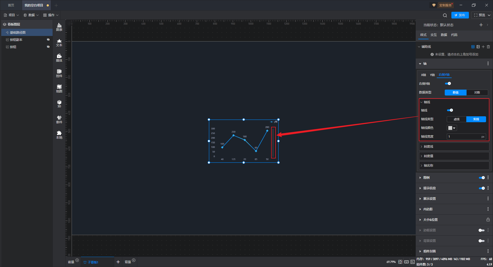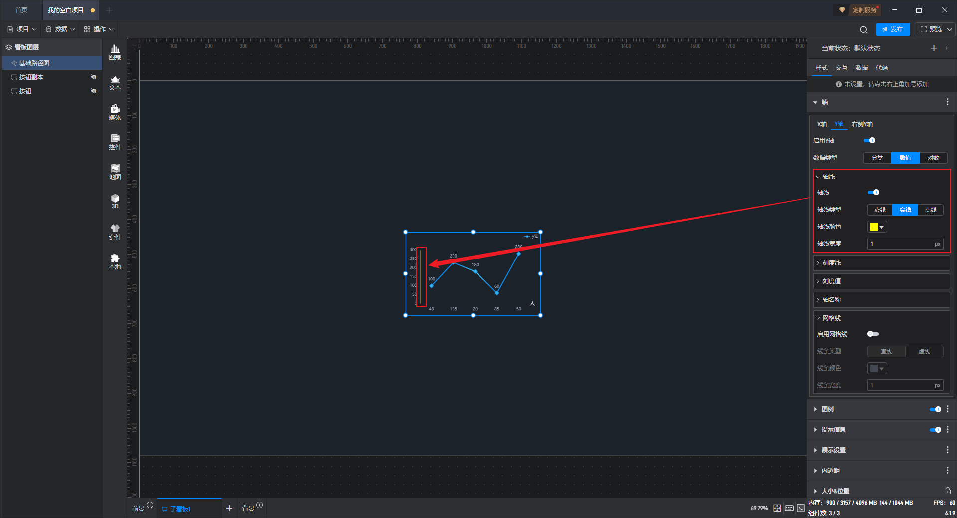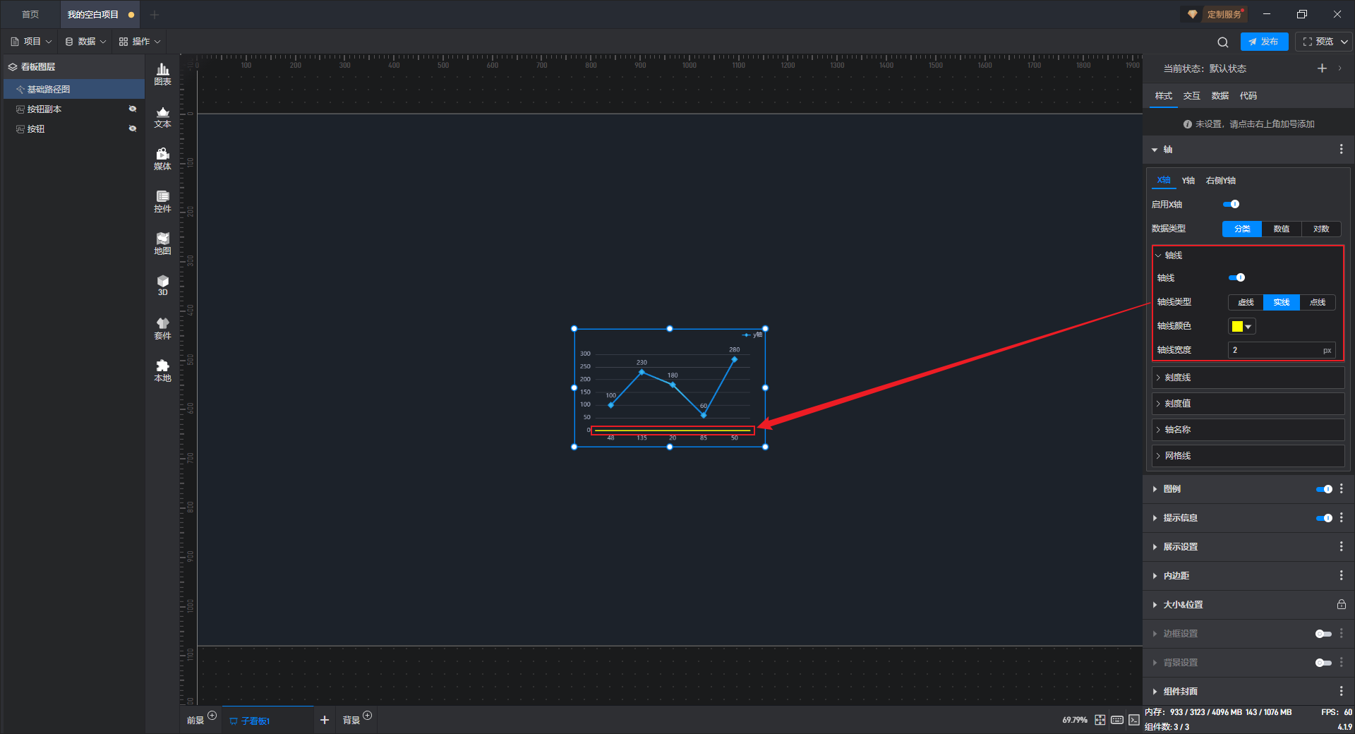 | 轴线宽度 | 自定义输入 X 轴轴线的宽度,默认宽度为“1px”。 |