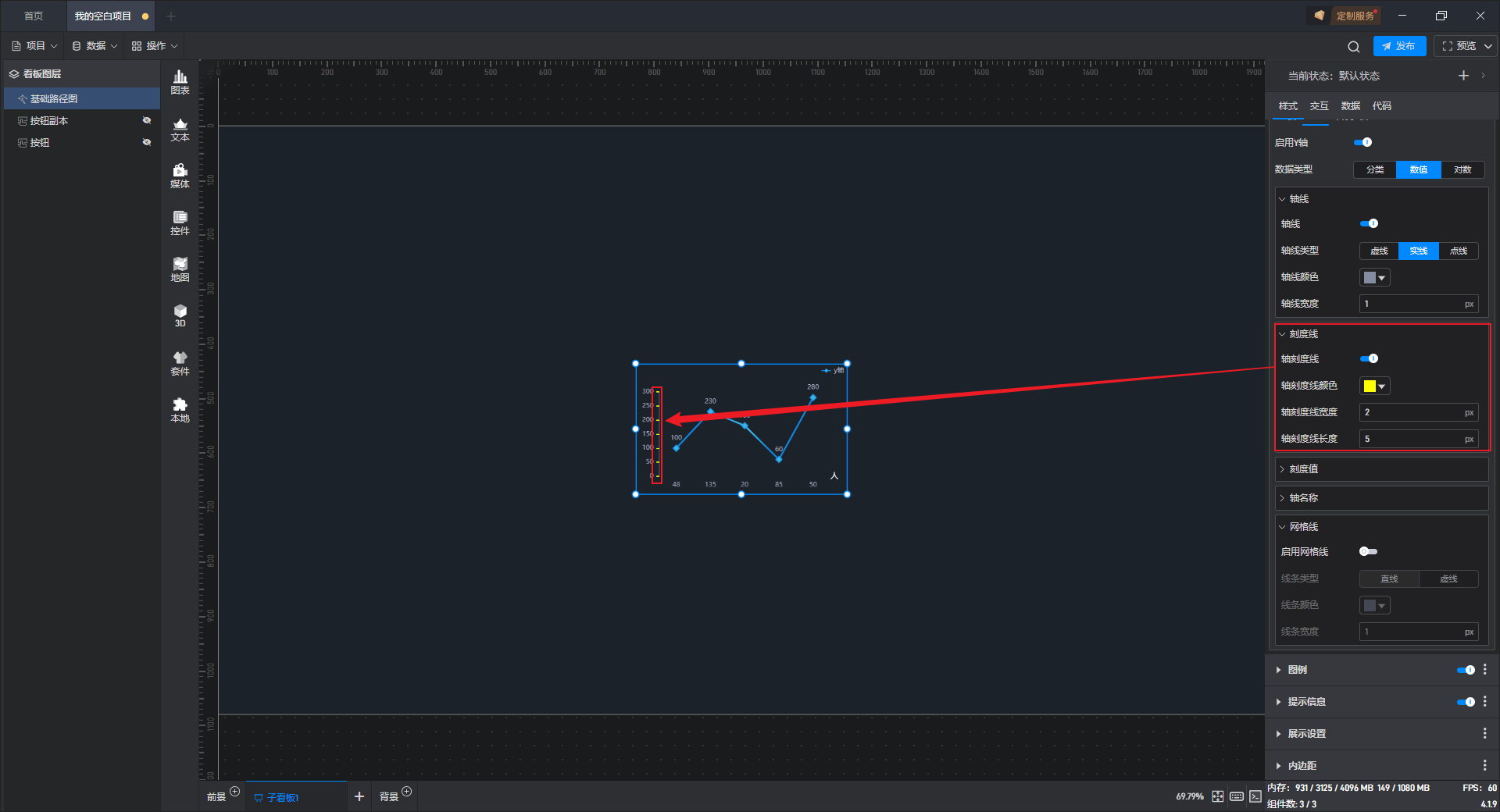 | 轴刻度线 | 开启此按钮后,才可以对轴刻度线进行配置。 |
