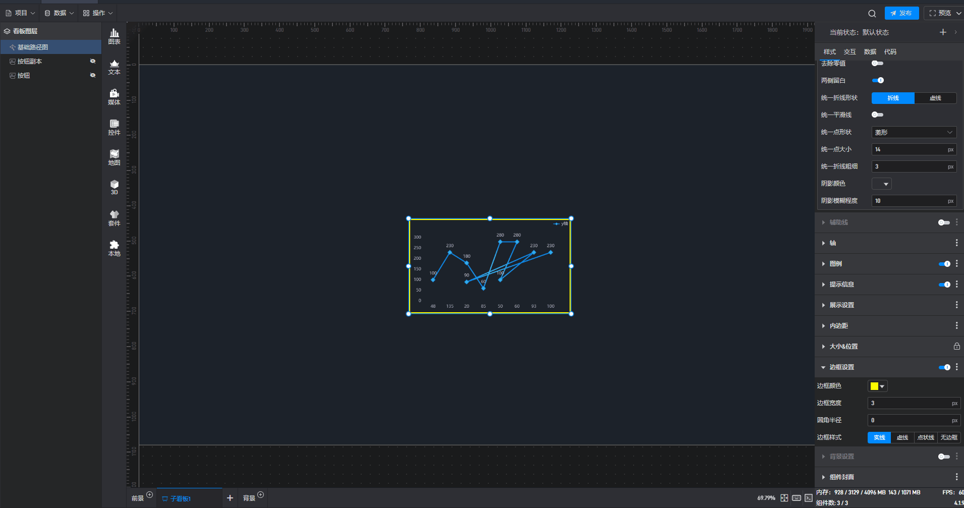 开启“边框设置”按钮后,组件中才会显示边框样式,才可以对组件整体边框样式进行配置。
