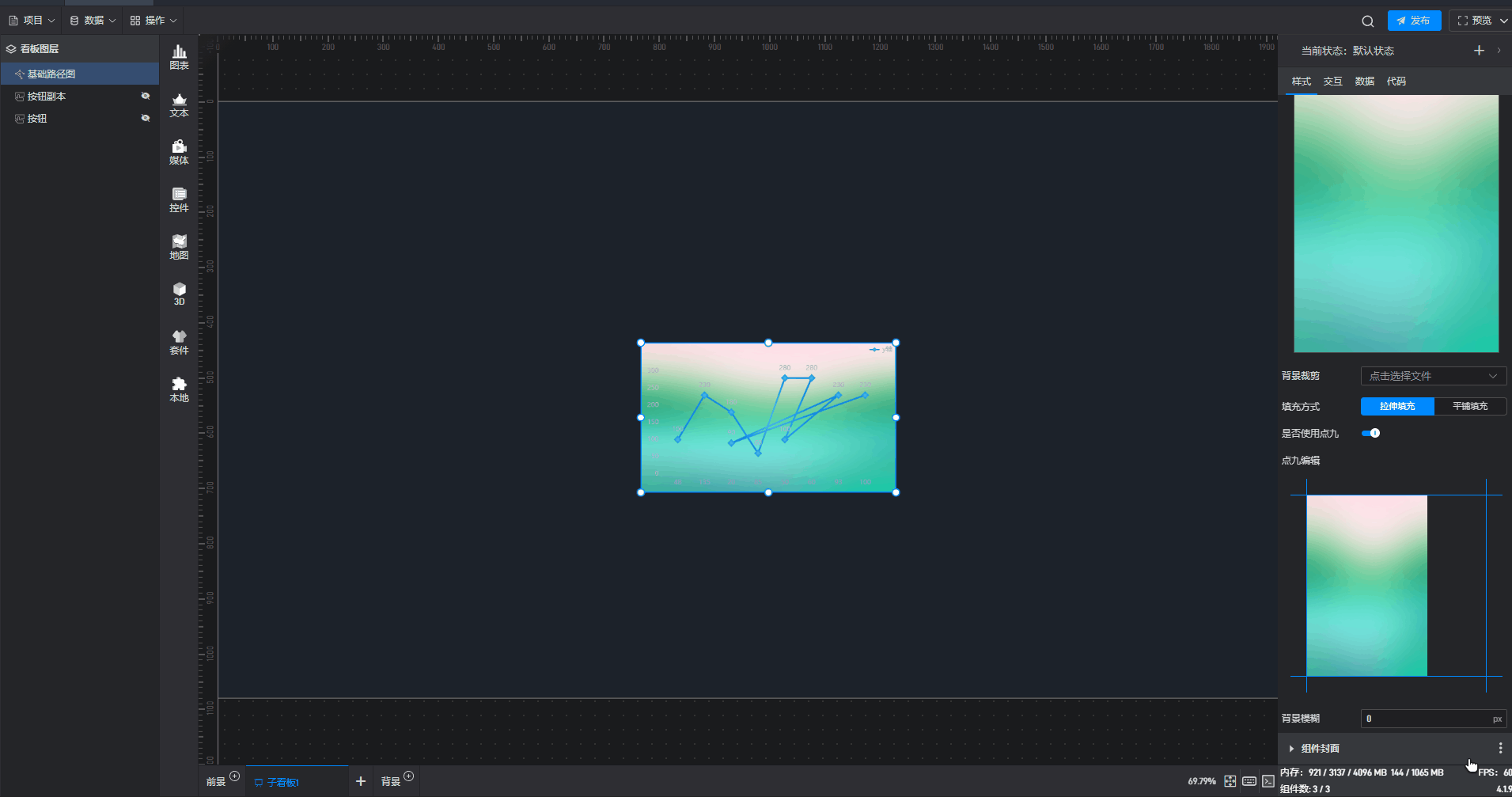 | 背景图/视频 | 可在此处添加本地图片或视频,充当组件背景。 |