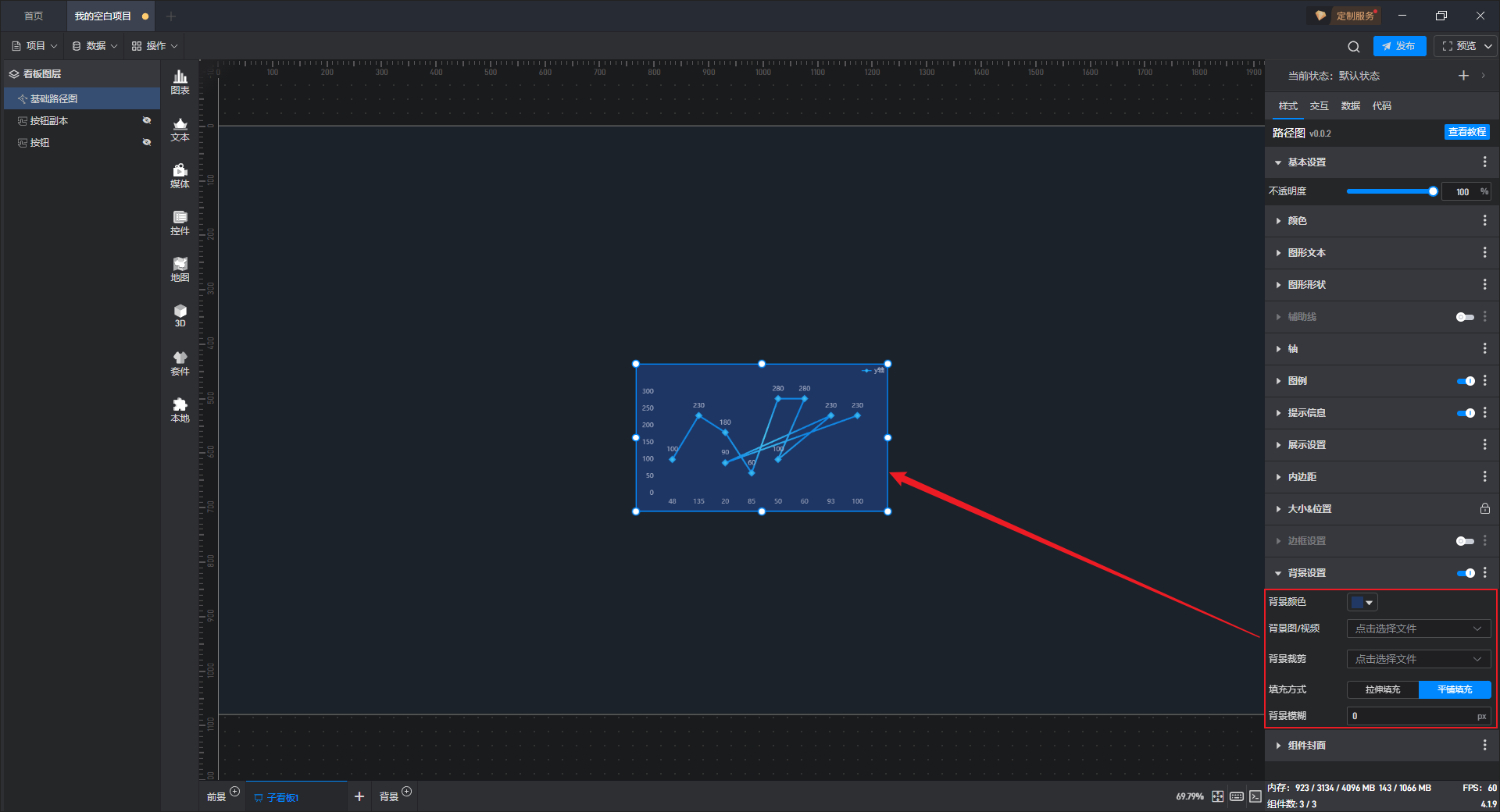 | 填充方式 | 背景“拉伸填充”方式下,图片会根据目标区域的大小进行拉伸或压缩,以完全覆盖该区域;背景“平铺填充”方式下,会将图片按其原始大小和比例不变的方式铺满整个区域。 |