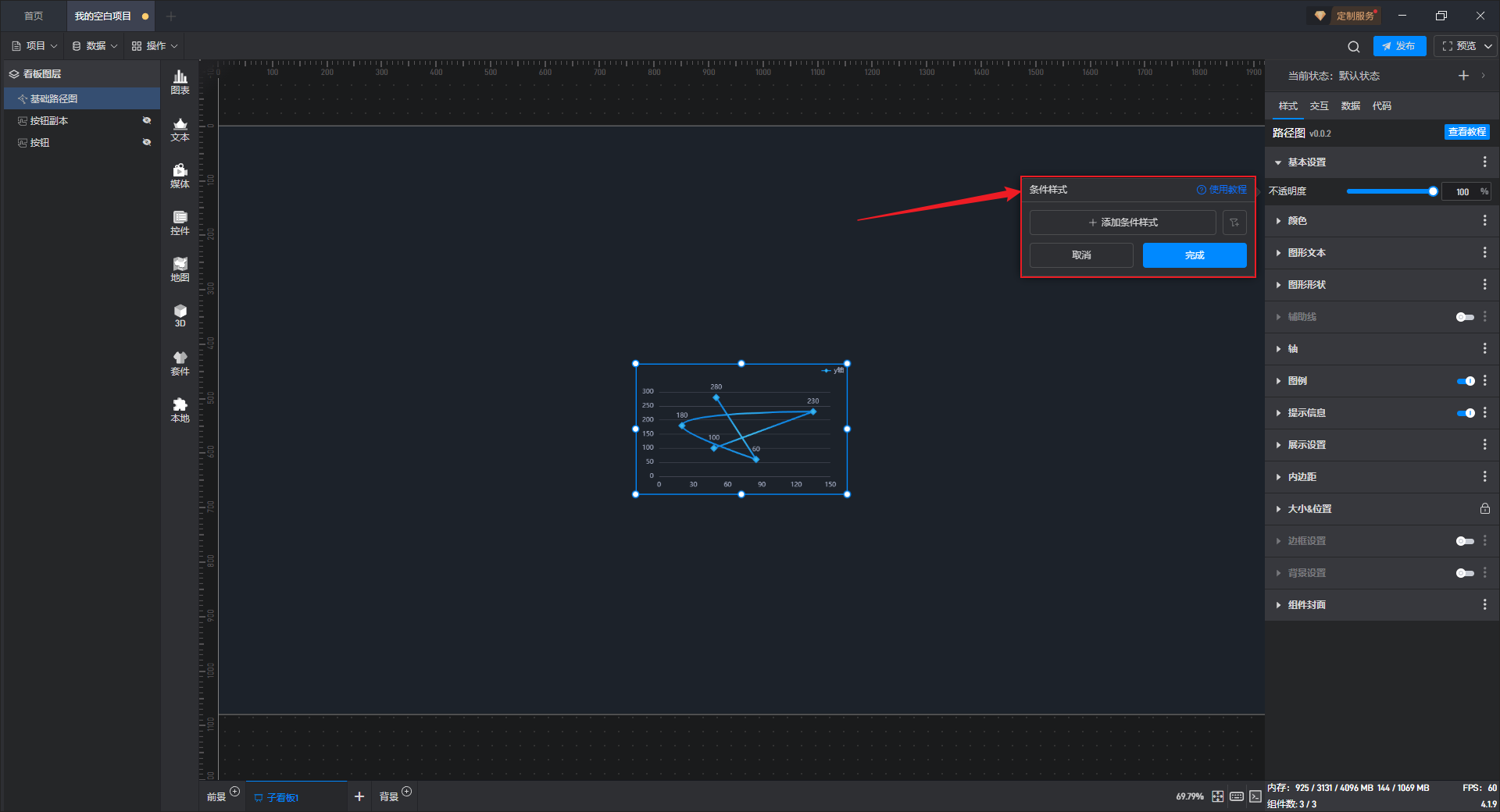 有一些设置项的条件设置方式会直接显示在设置项中,可以直接进行设置,但基础路径图的条件样式只能通过方式 1 进行设置。