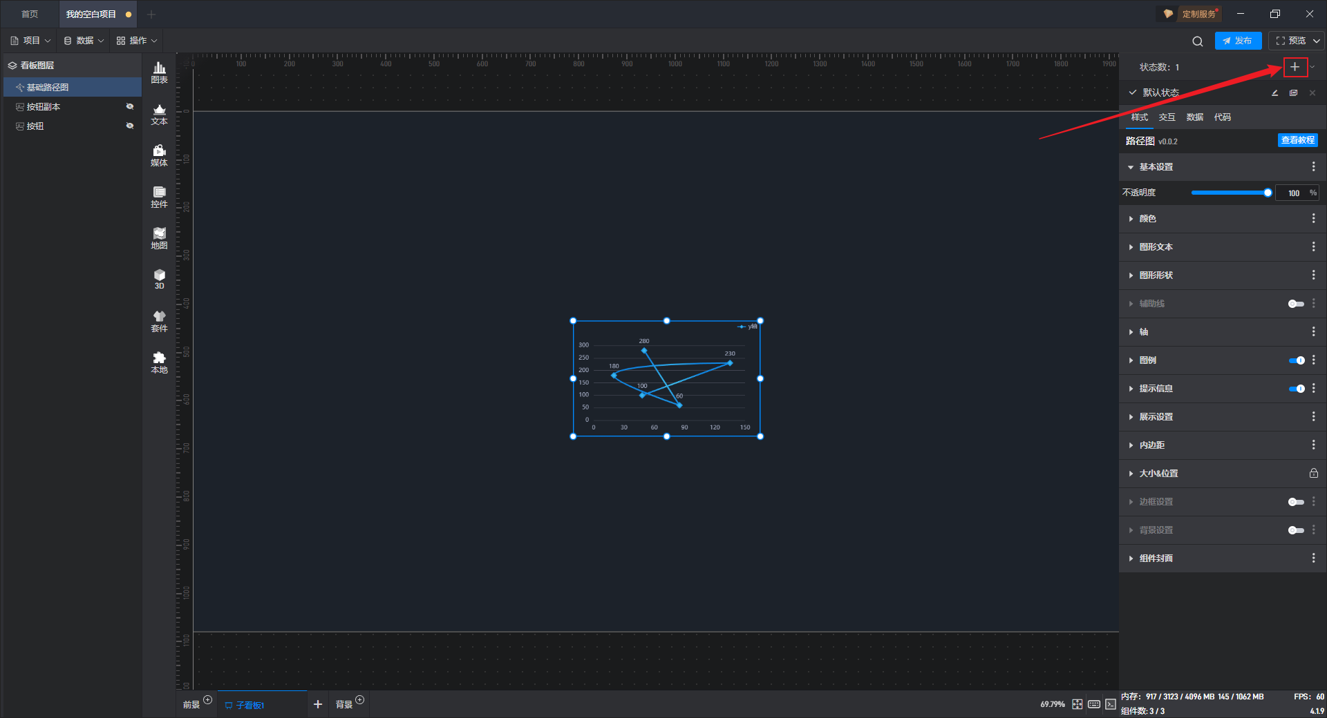 点击右上角的“+”可以添加一个新的组件状态。