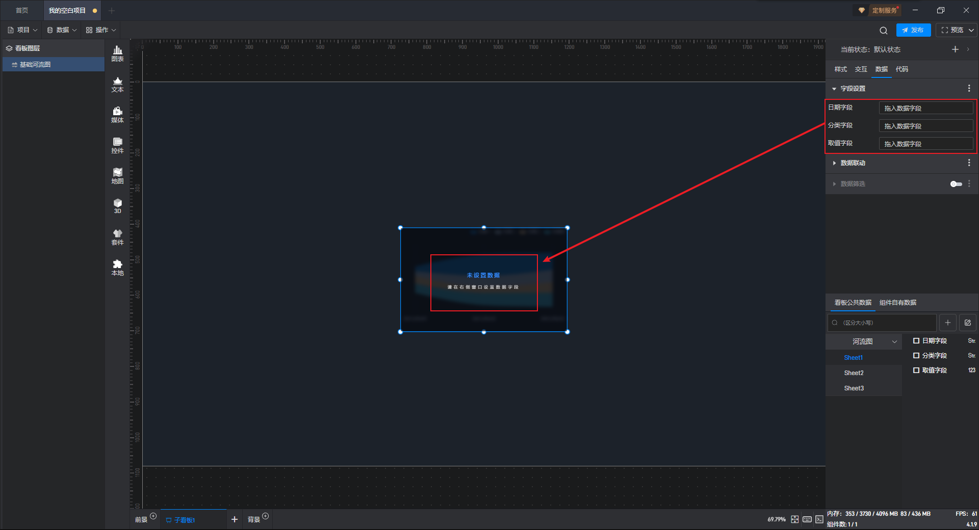 点击后,该设置项就会出现“请设置数据字段”的提示。