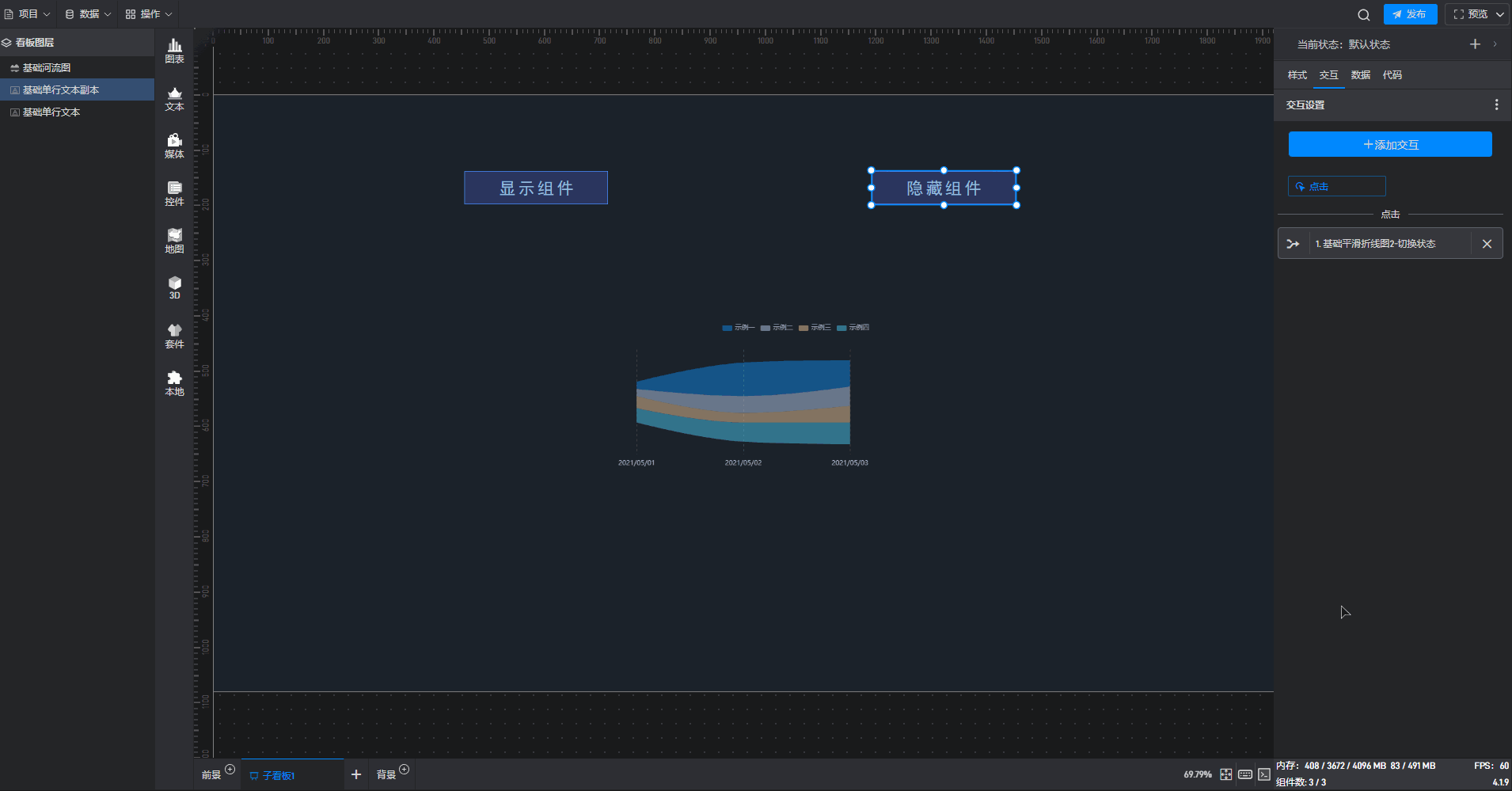给隐藏按钮组件添加一个交互,点击后切换河流图组件到隐藏状态。