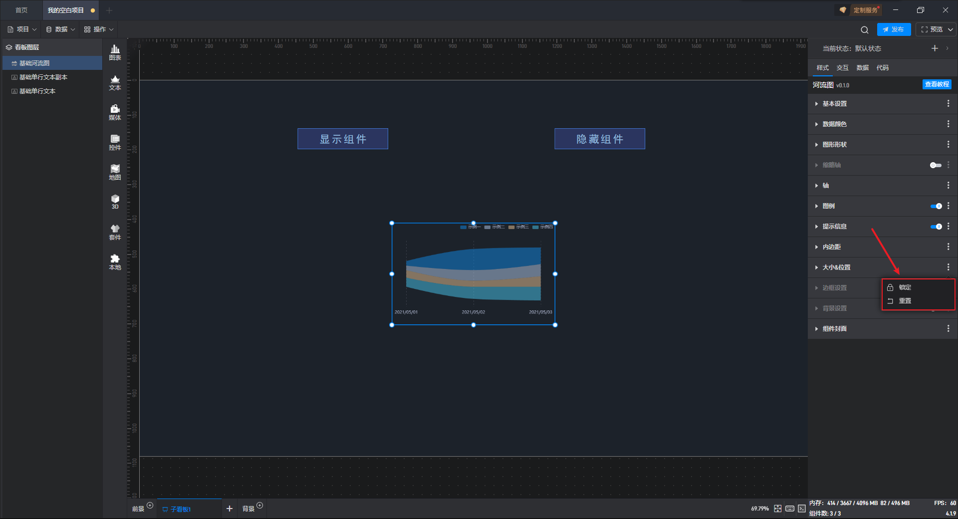首先我们给河流图组件设置一个隐藏状态(默认状态当做显示状态)。