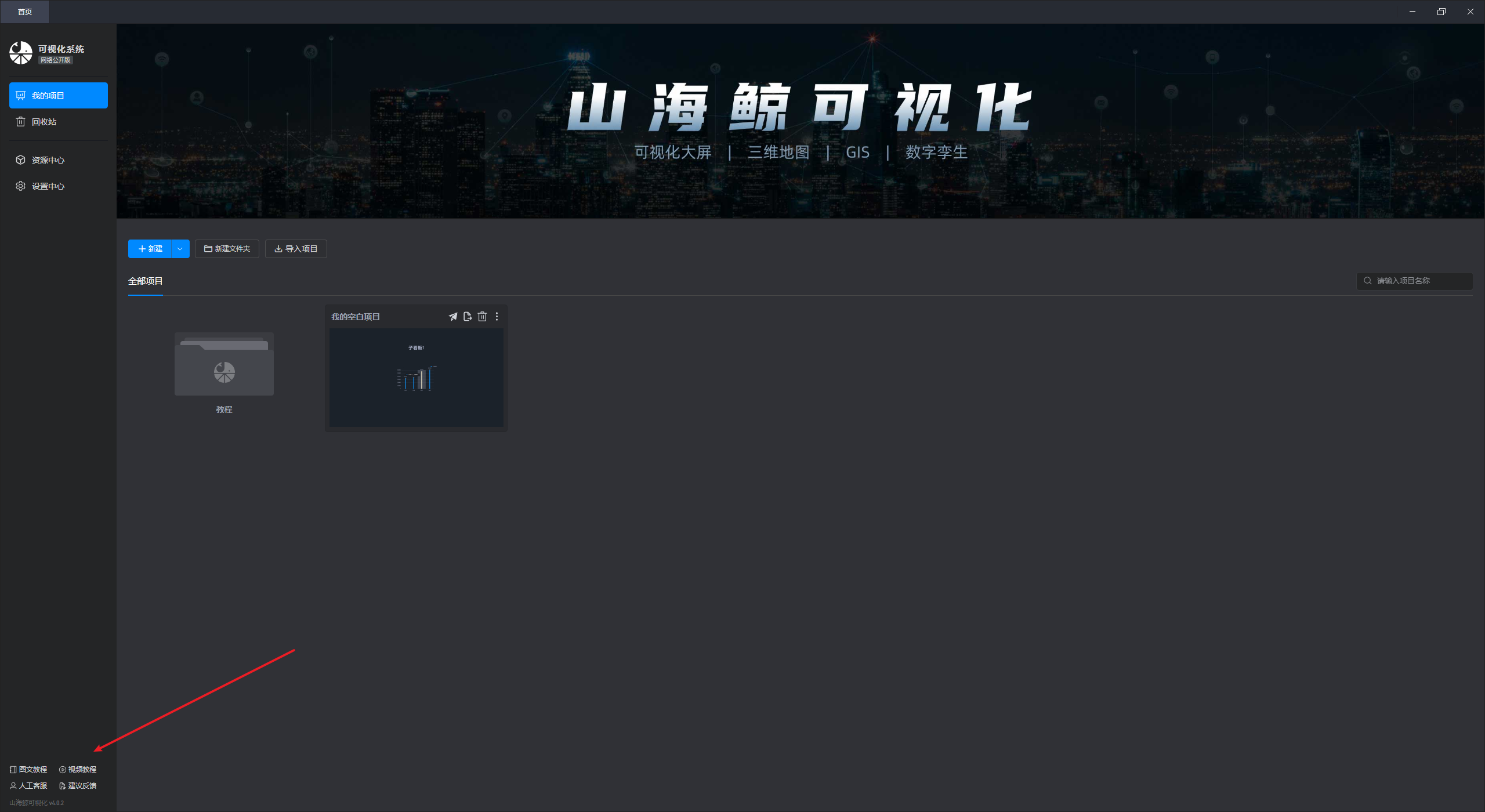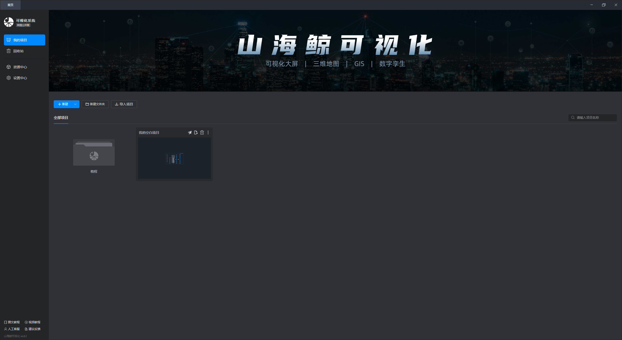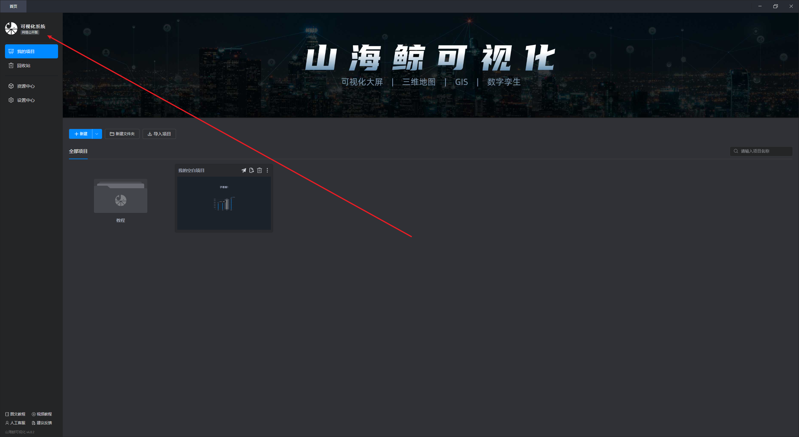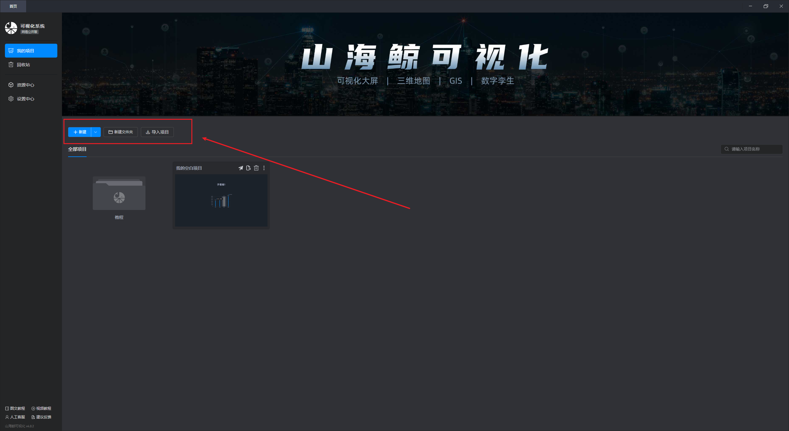 在这个界面中,我们可以对项目进行操作,包括“新建项目”“新建文件夹”“导入项目”等。