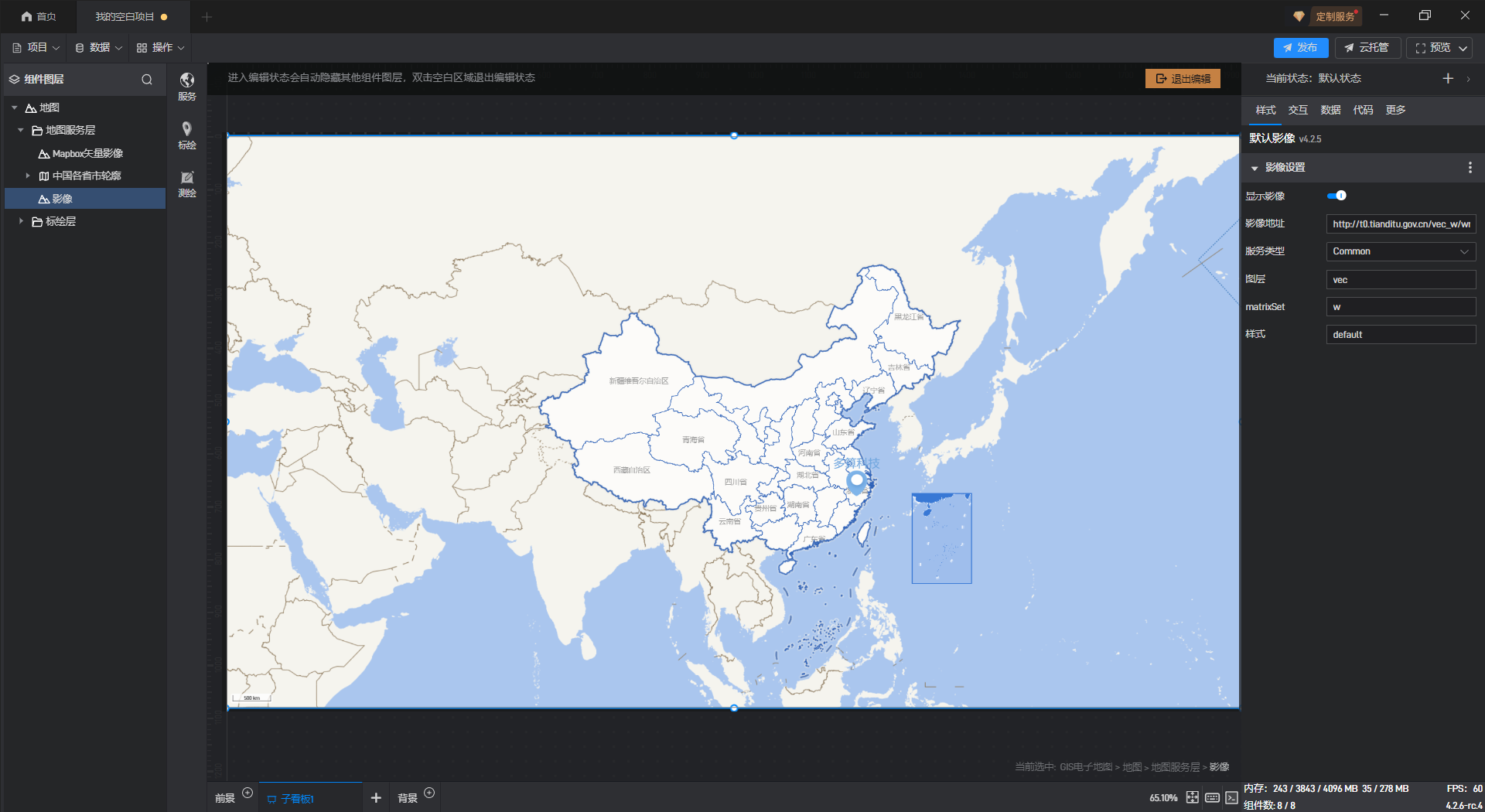 3)这样,天地图就已经成功导入至山海鲸可视化软件中了。