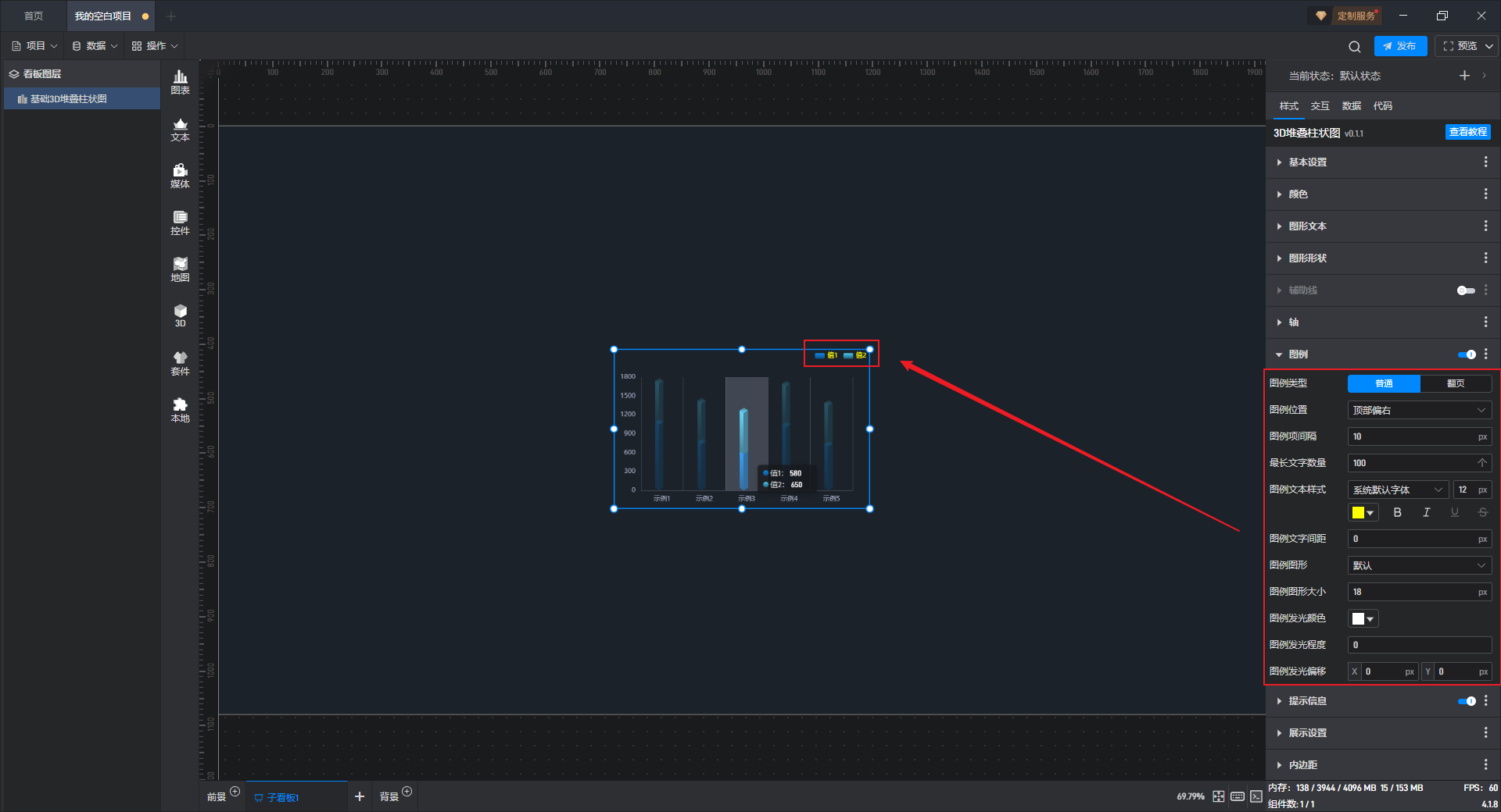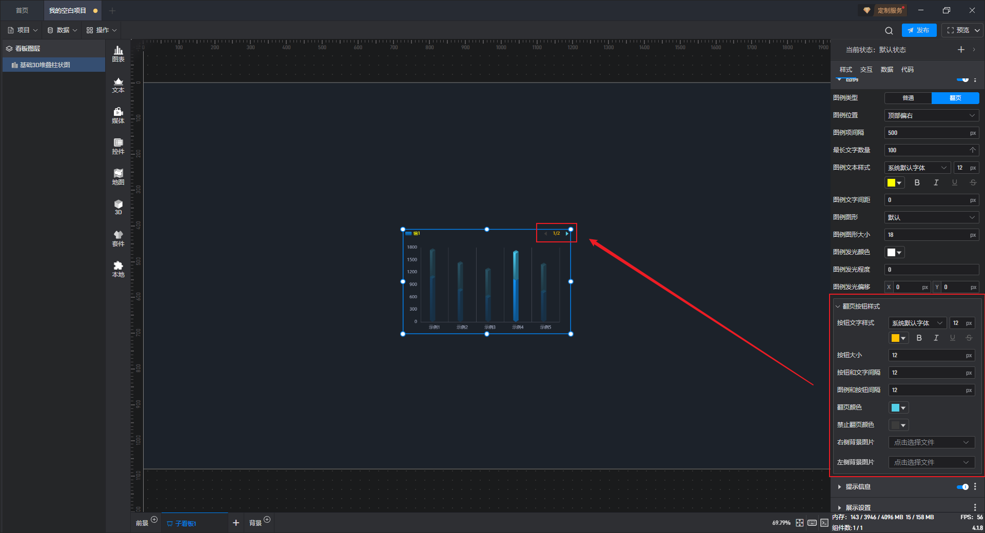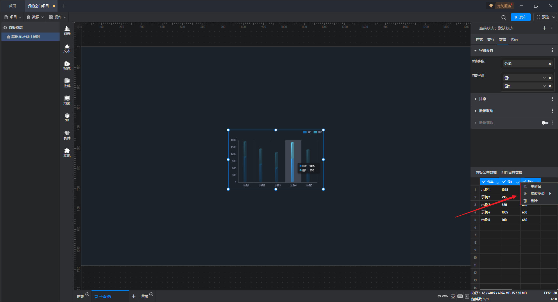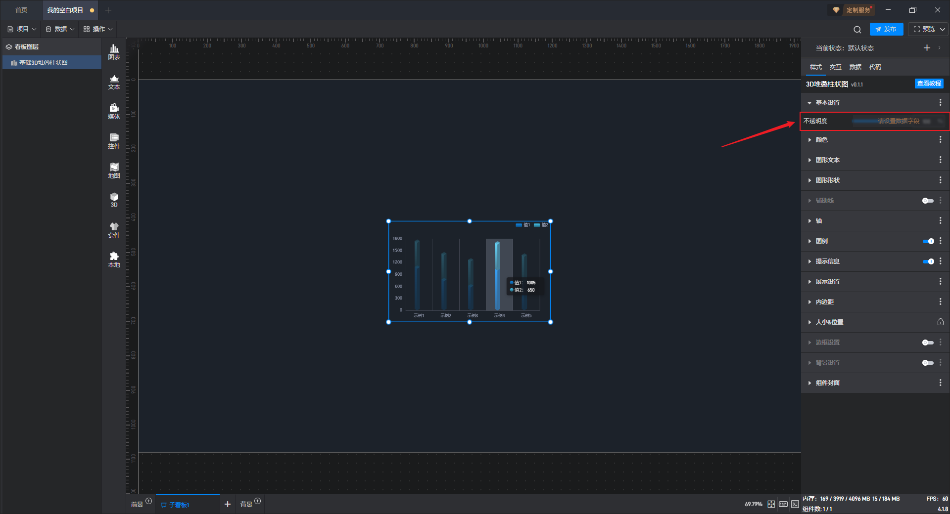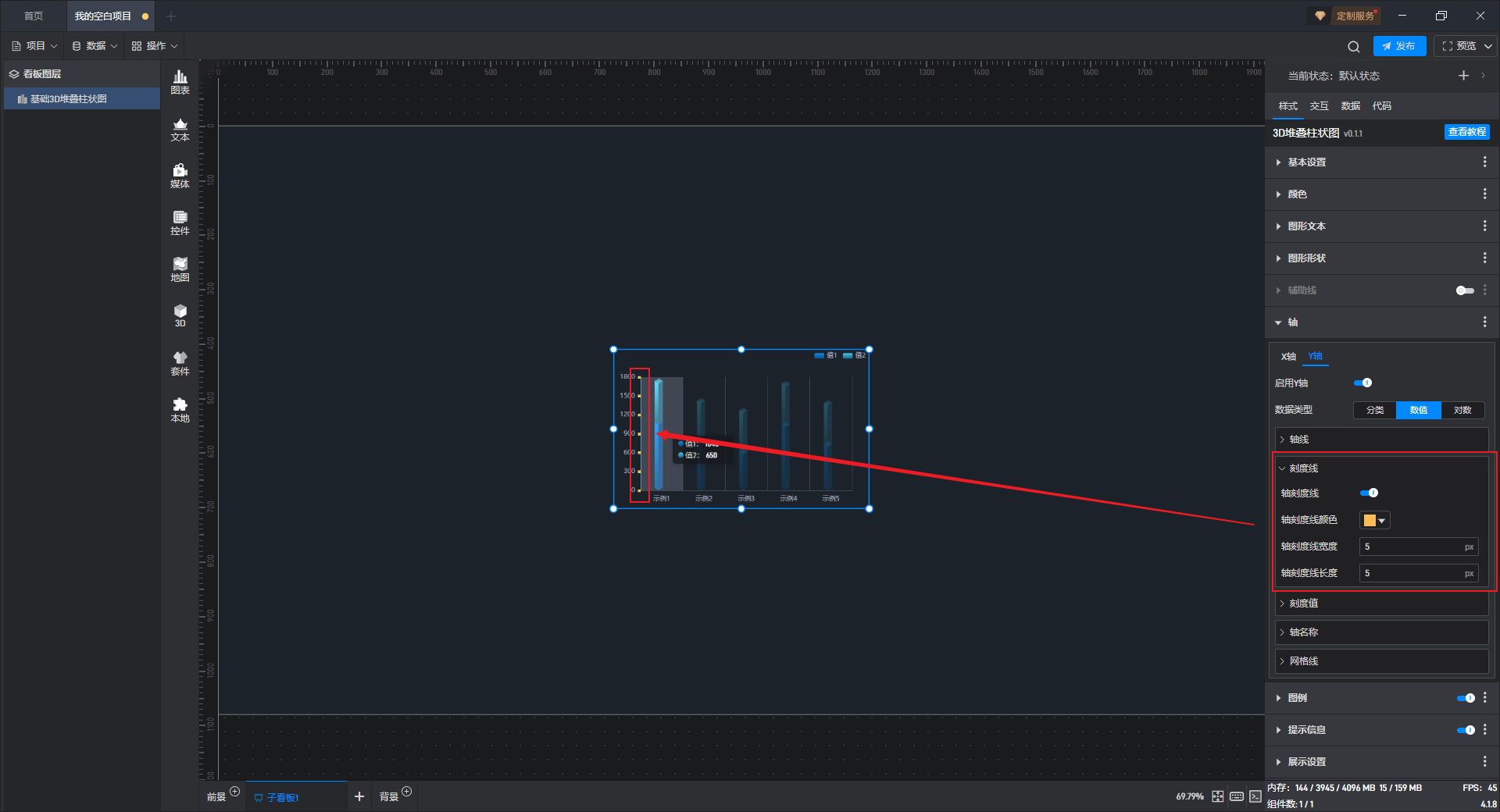 开启高亮设置,并设定高亮颜色,就可以看到组件在显示对应数据柱子时会显示设置的高亮颜色。