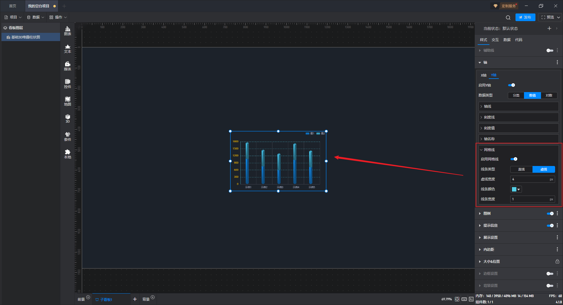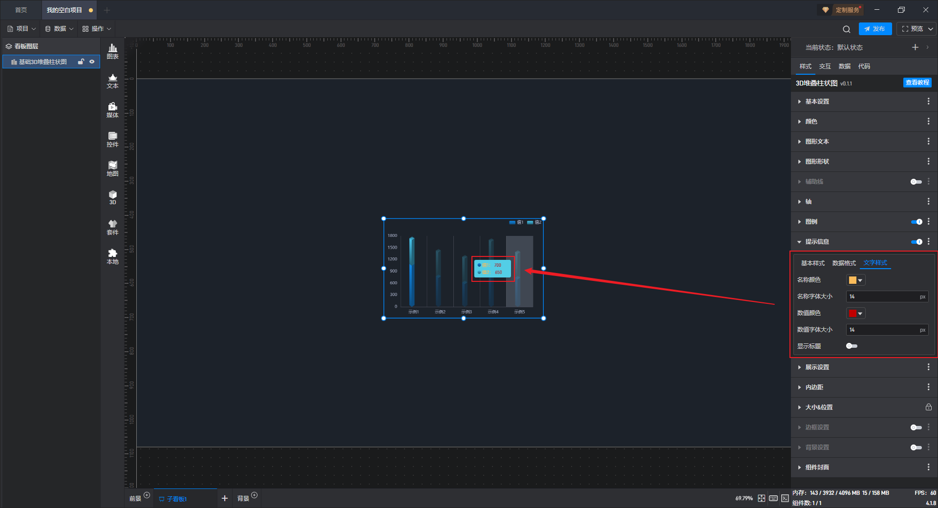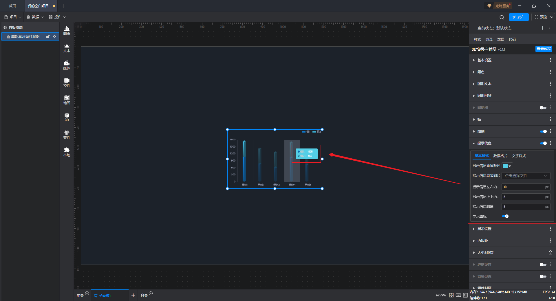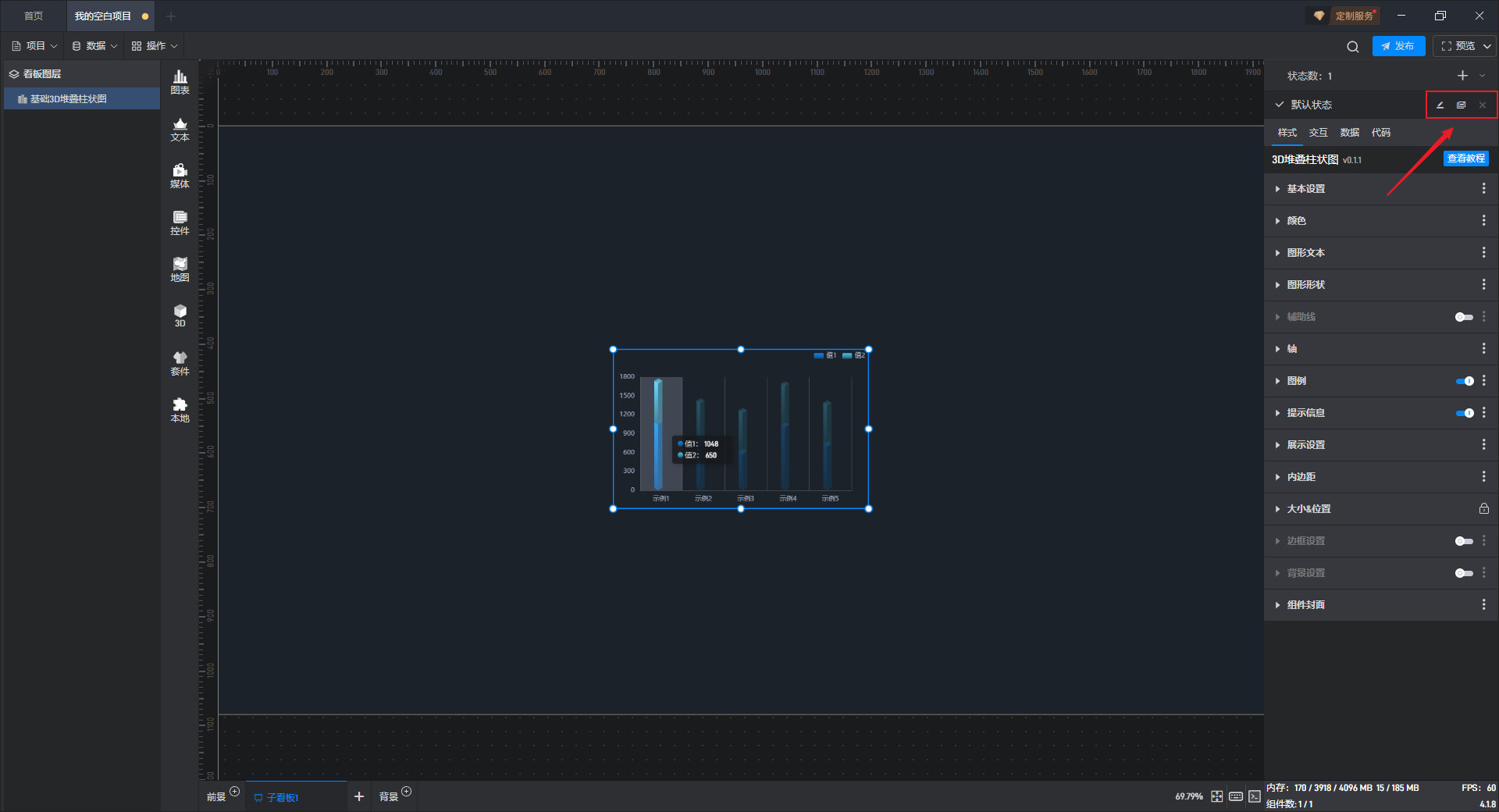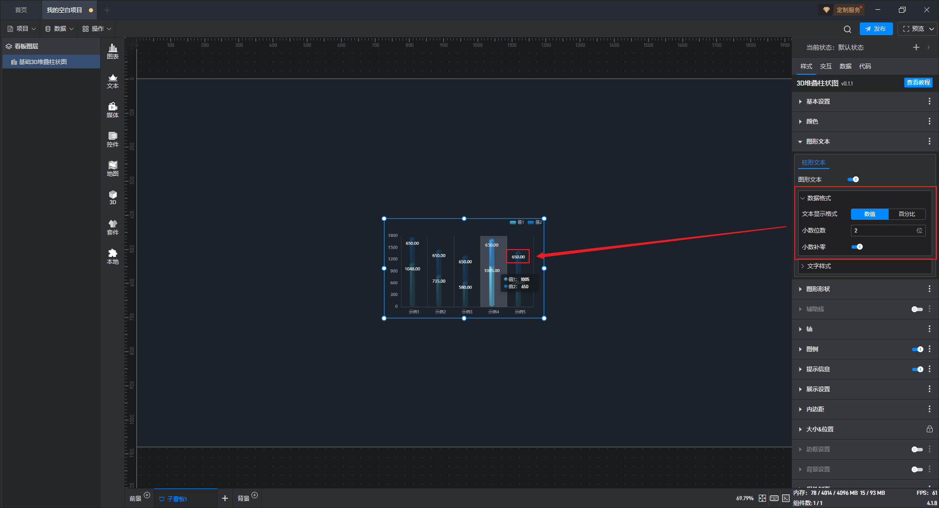 开启高亮设置,并设定高亮颜色,就可以看到组件在显示对应数据柱子时会显示设置的高亮颜色。