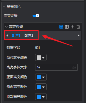 开启“高亮设置”的按钮后,才可以单独对组件中每个数据字段的高亮颜色进行配置。