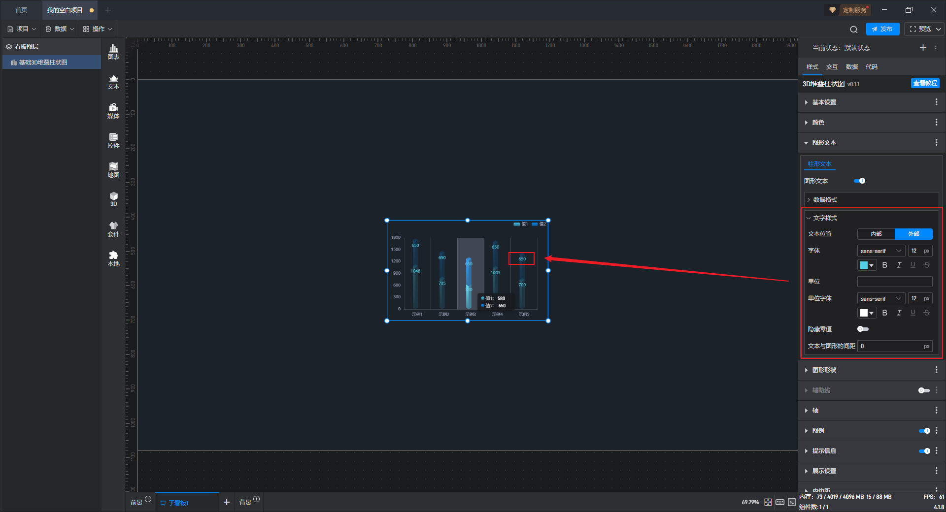 开启“图形文本”按钮后,组件中才能显示图形文字。