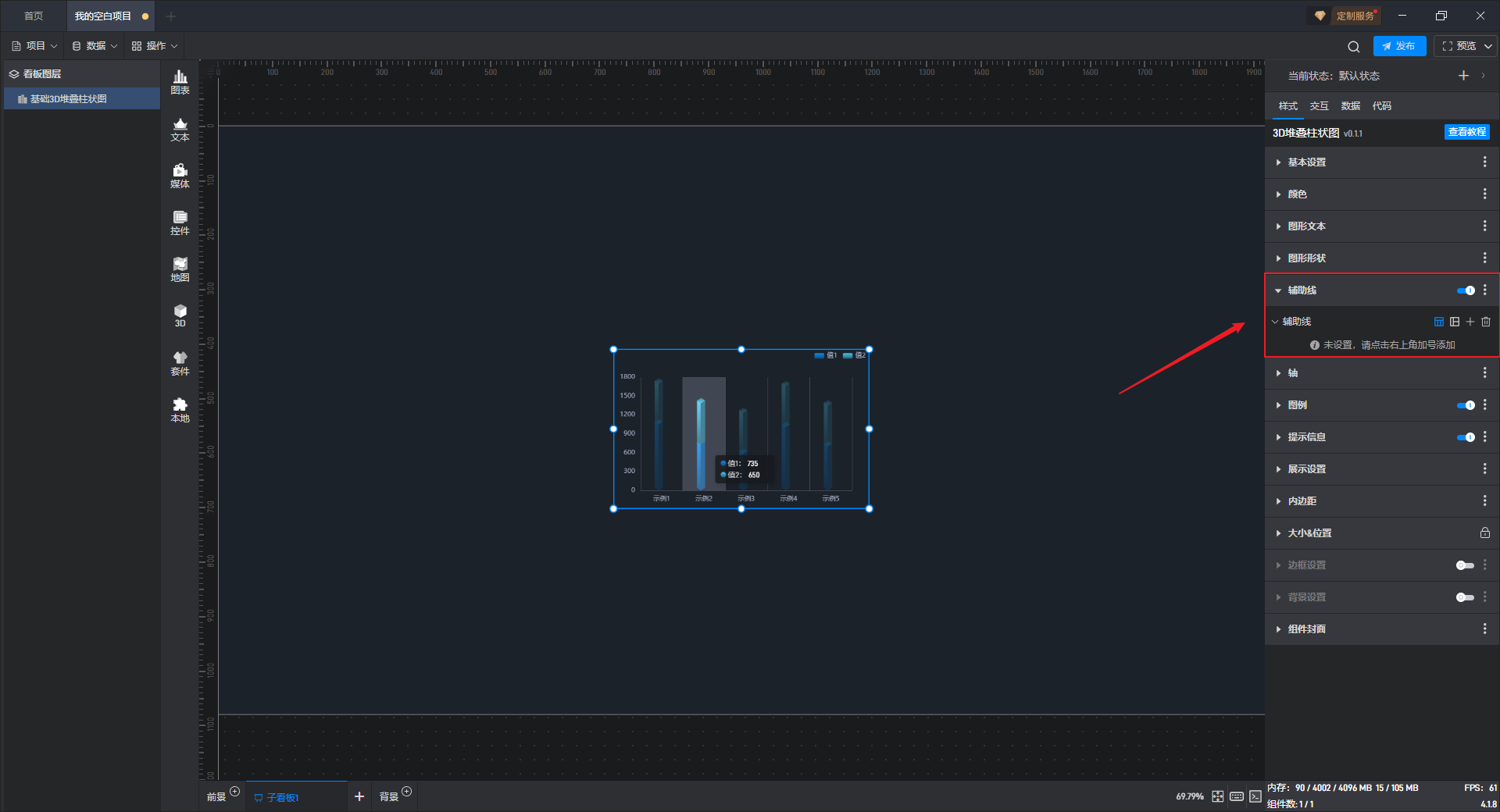 开启辅助线按钮后,可以添加辅助线,并进行设置。