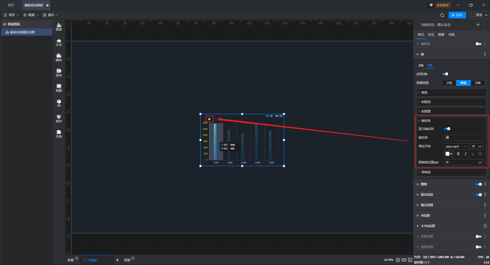 | 文本与图形的间距 | 柱形文本距离柱子的距离远近,自定义输入间距的值,默认为“15px”。 |