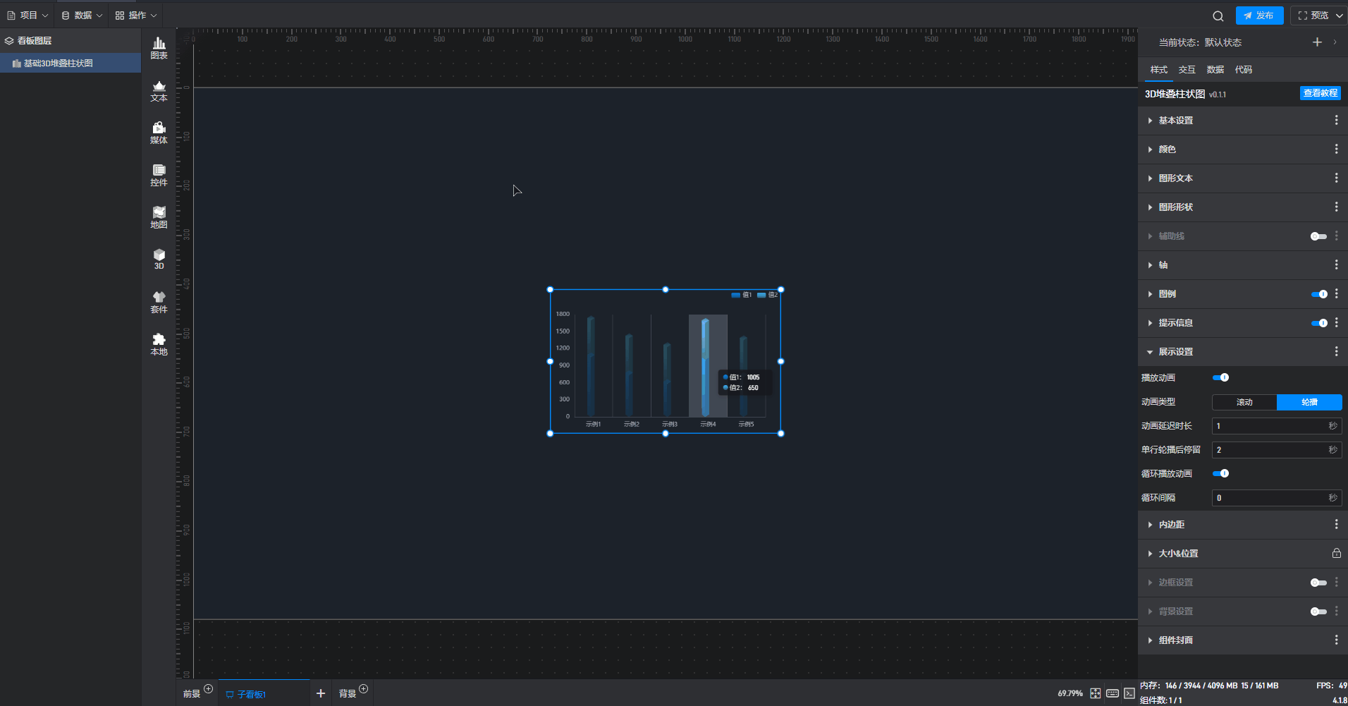 基础 3D 堆叠柱状图 轮播展示,如下图所示: