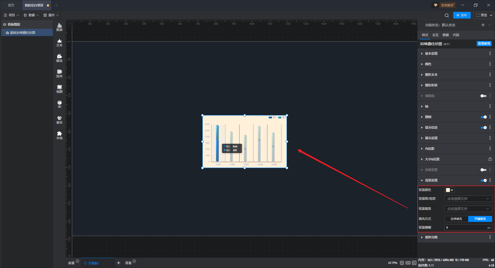 组件默认没有背景颜色,如果需要设置背景颜色,需要先开启“背景设置”项按钮。
