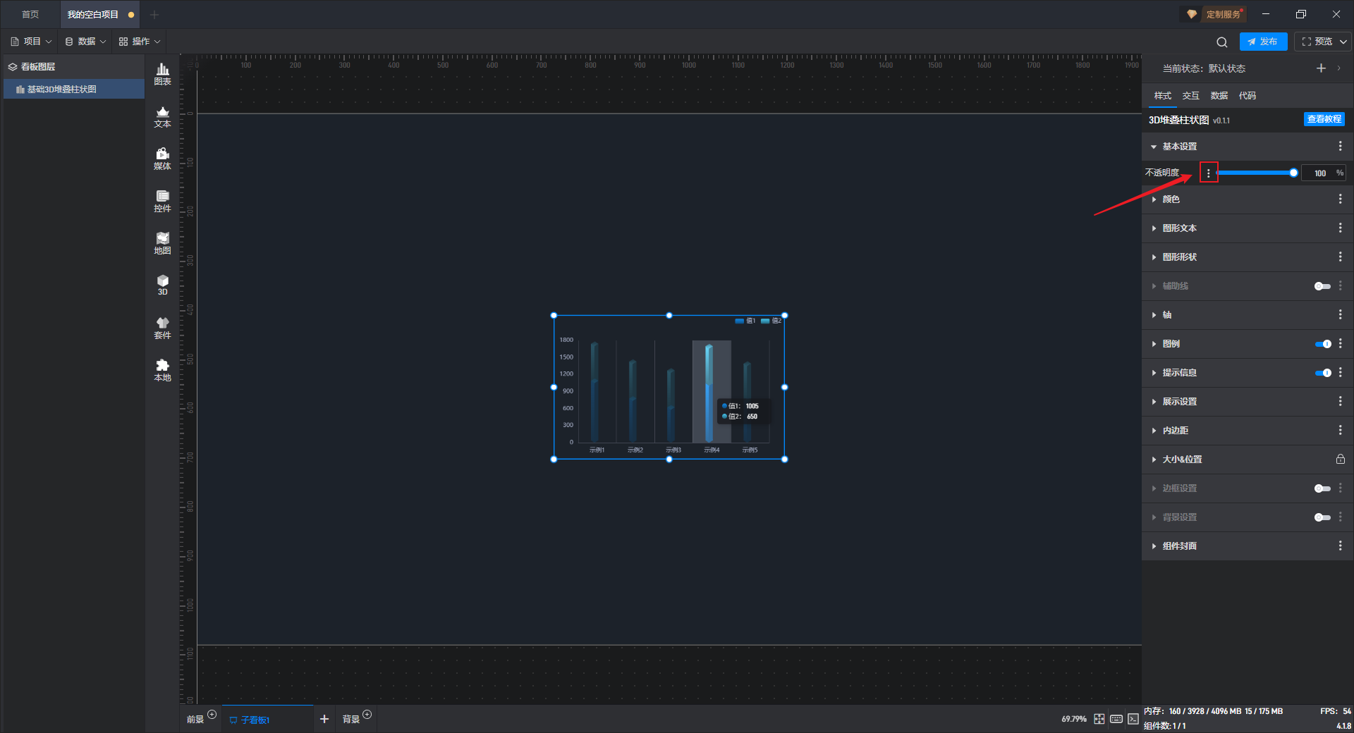 | 未选中时不透明度 | 柱子未被选中时的透明度,默认“30%”。 |
