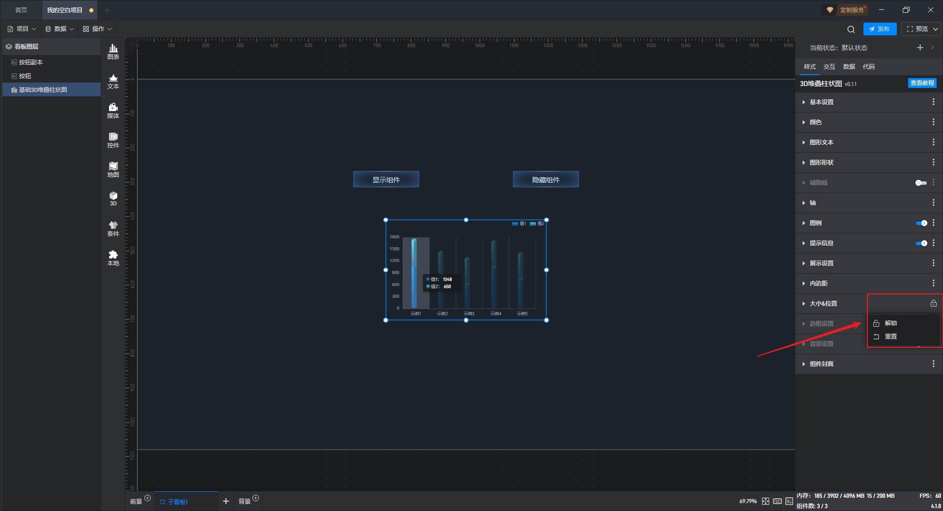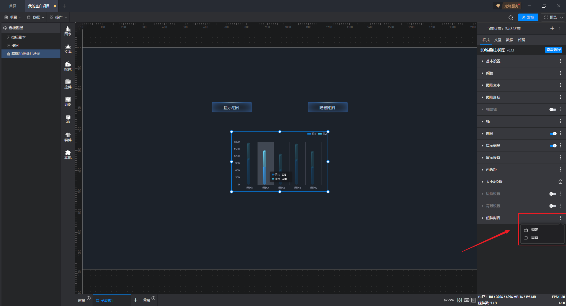 这样我们就实现了点击按钮切换柱状图组件显示隐藏的效果了。