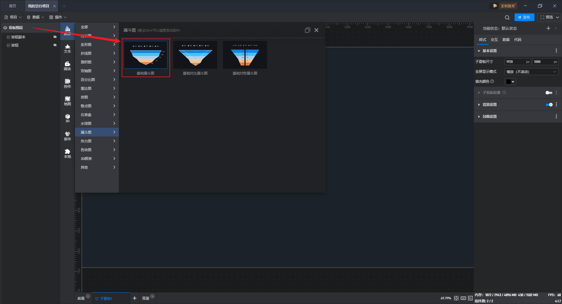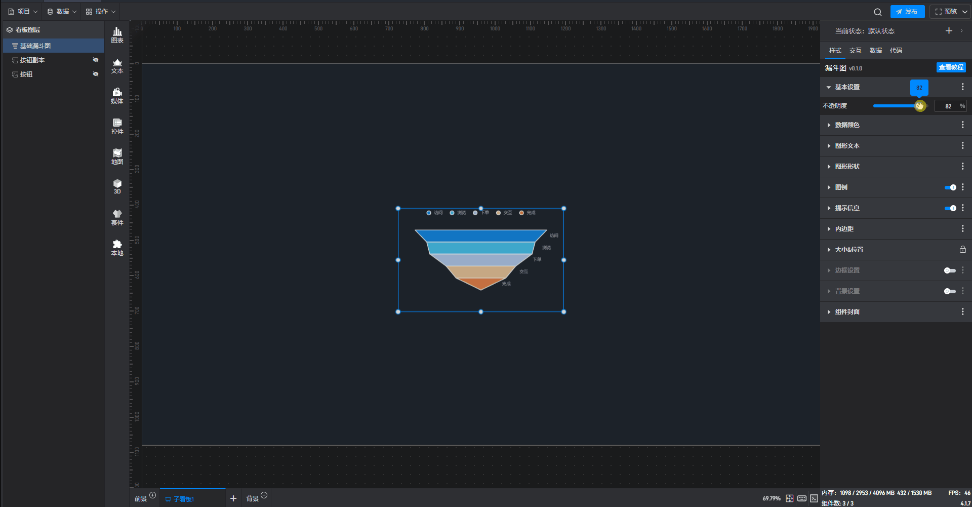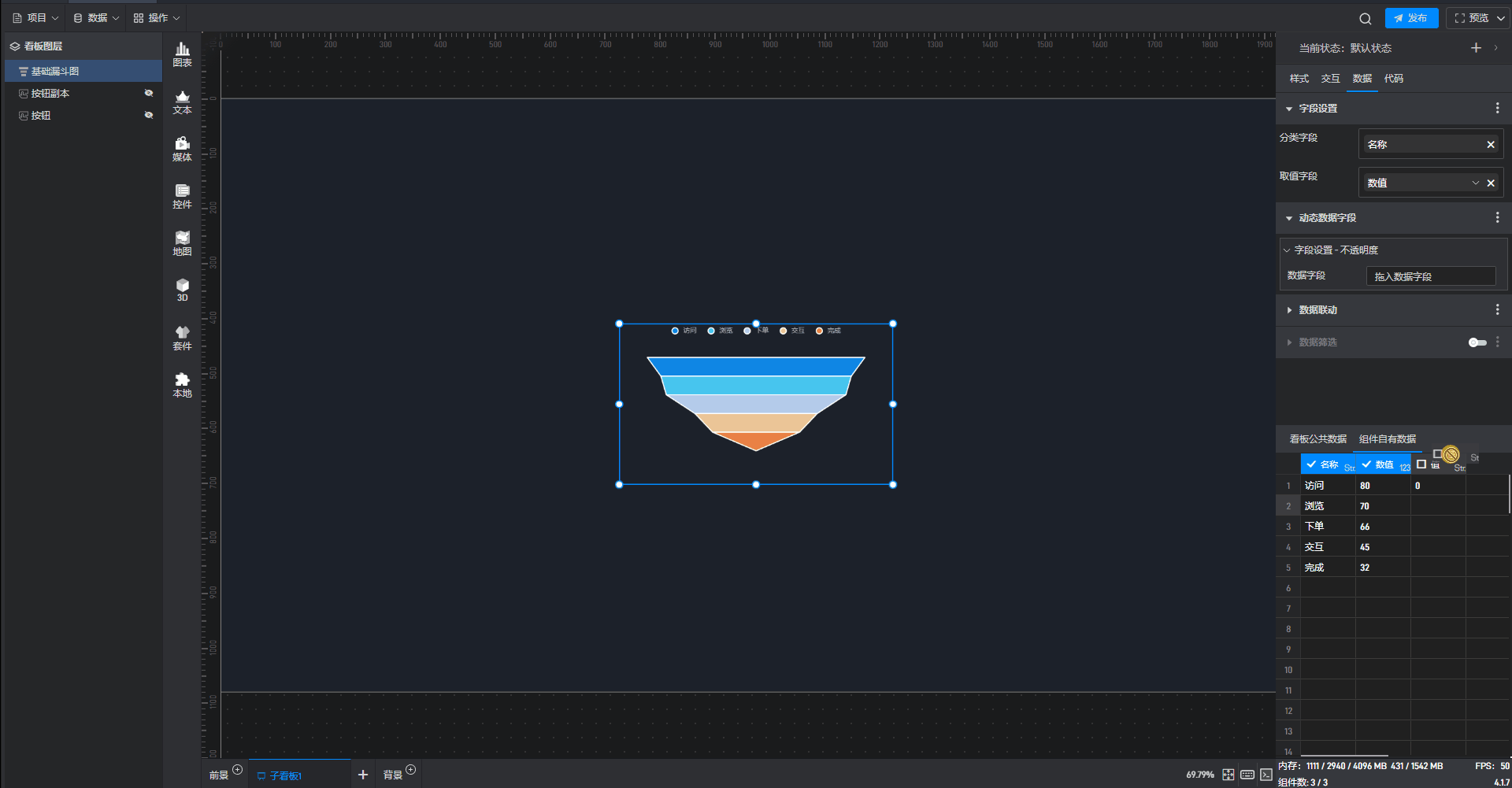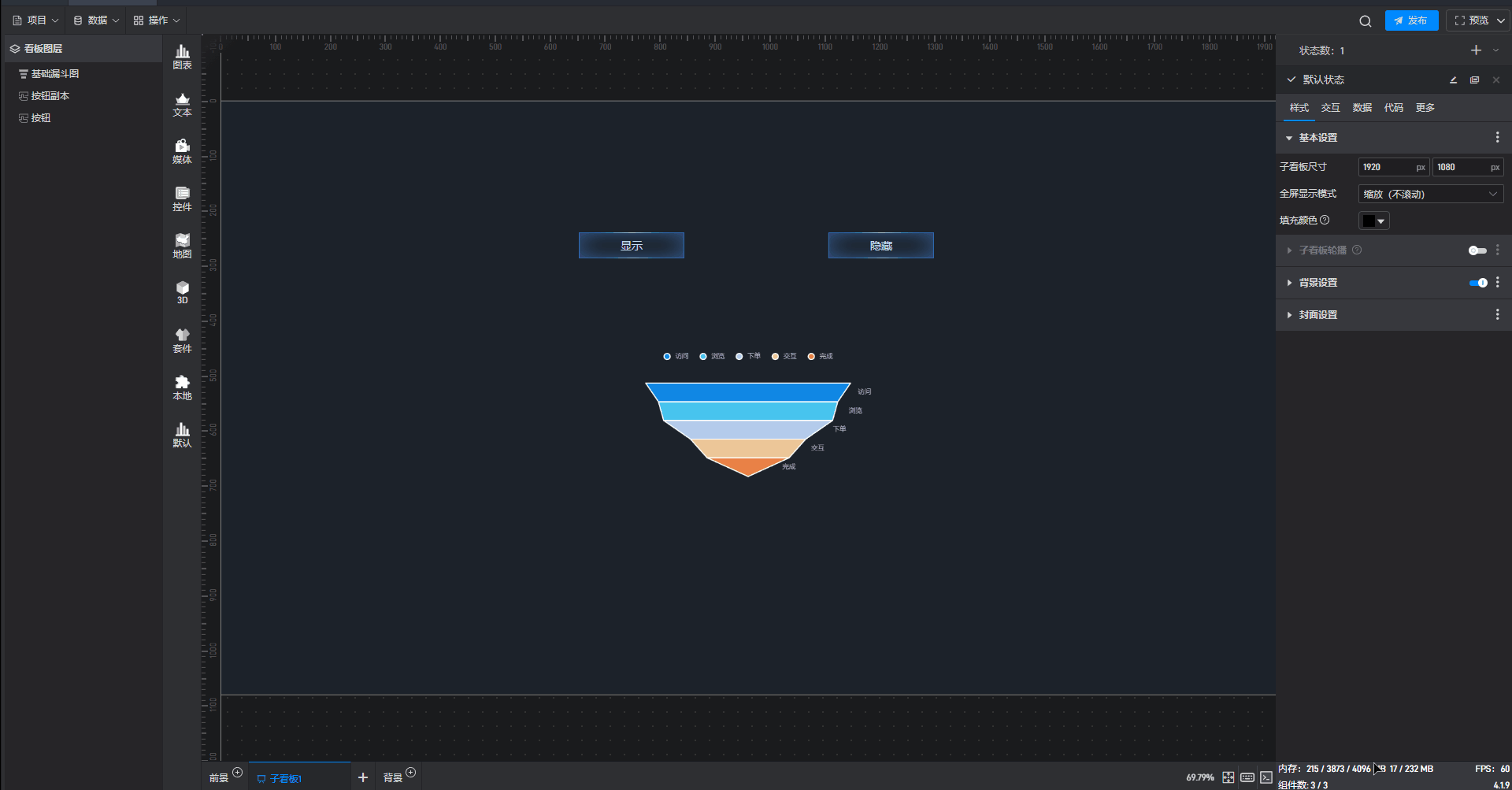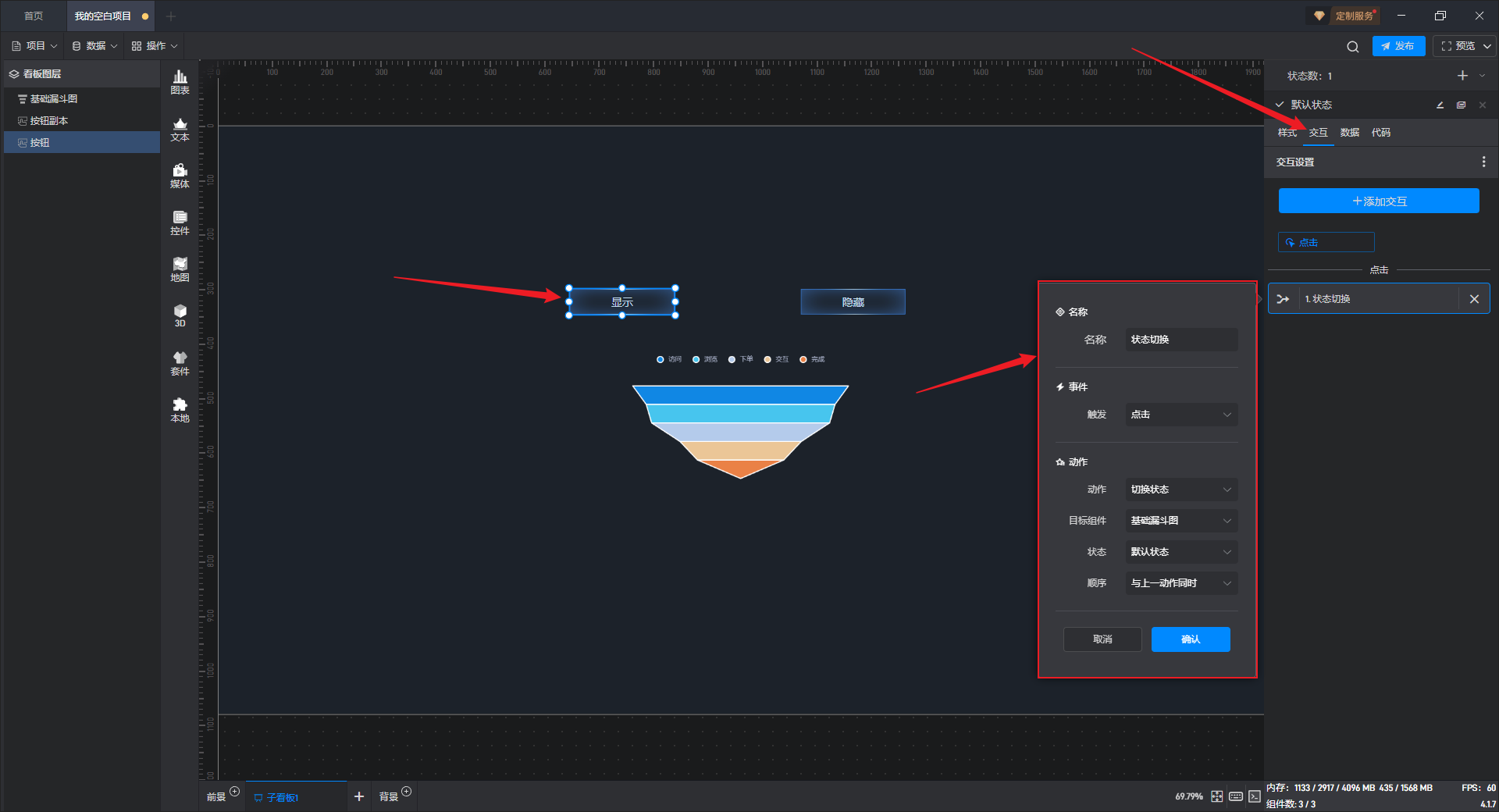 给隐藏按钮组件添加一个交互,点击后切换漏斗图组件到隐藏状态。