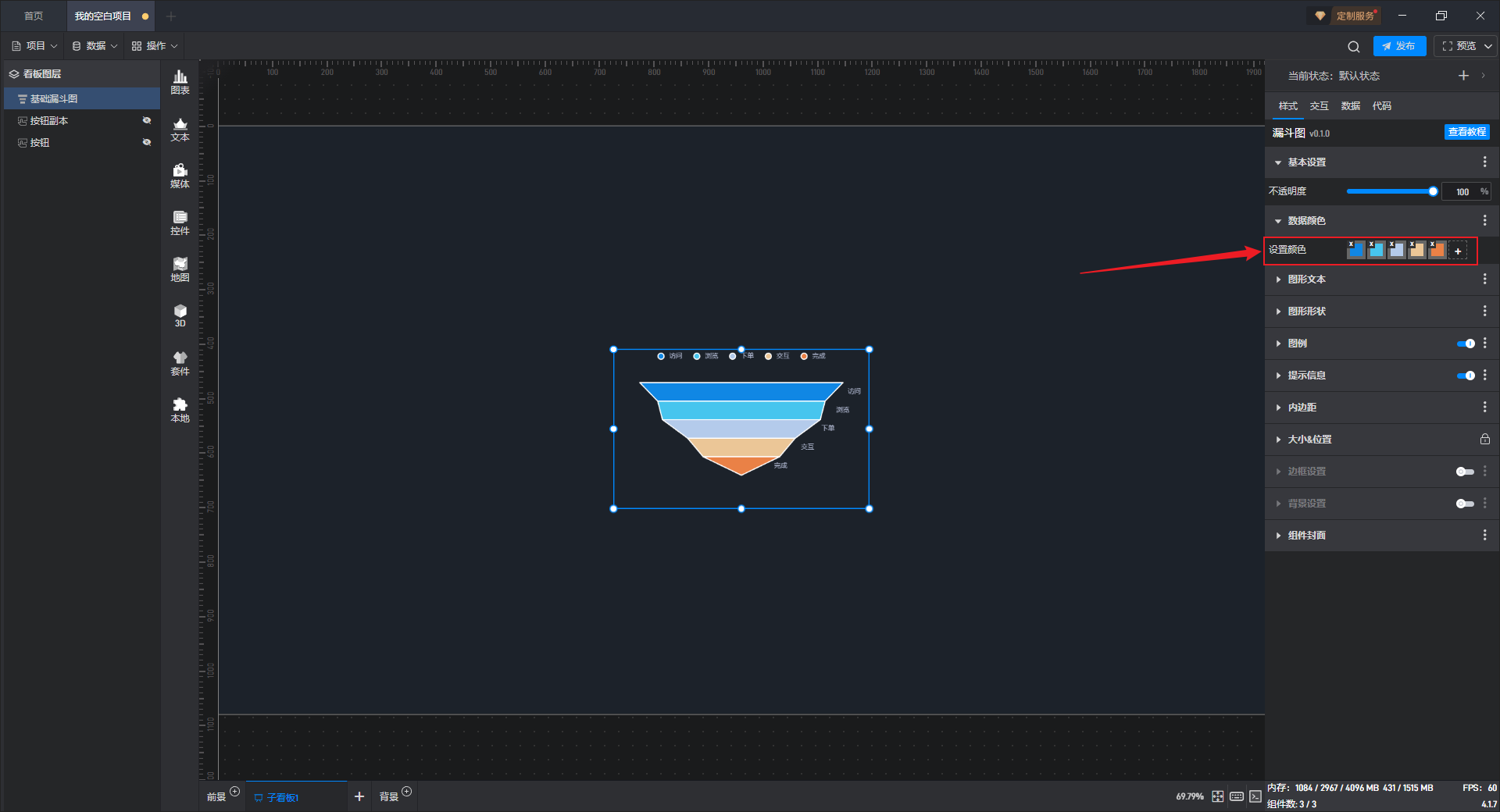 【温馨提示】在默认颜色设置中,有时可能会看到多个已添加颜色,这些颜色会按照漏斗图的取值字段默认应用在漏斗图中,可以通过鼠标拖拽直接调整颜色应用顺序。