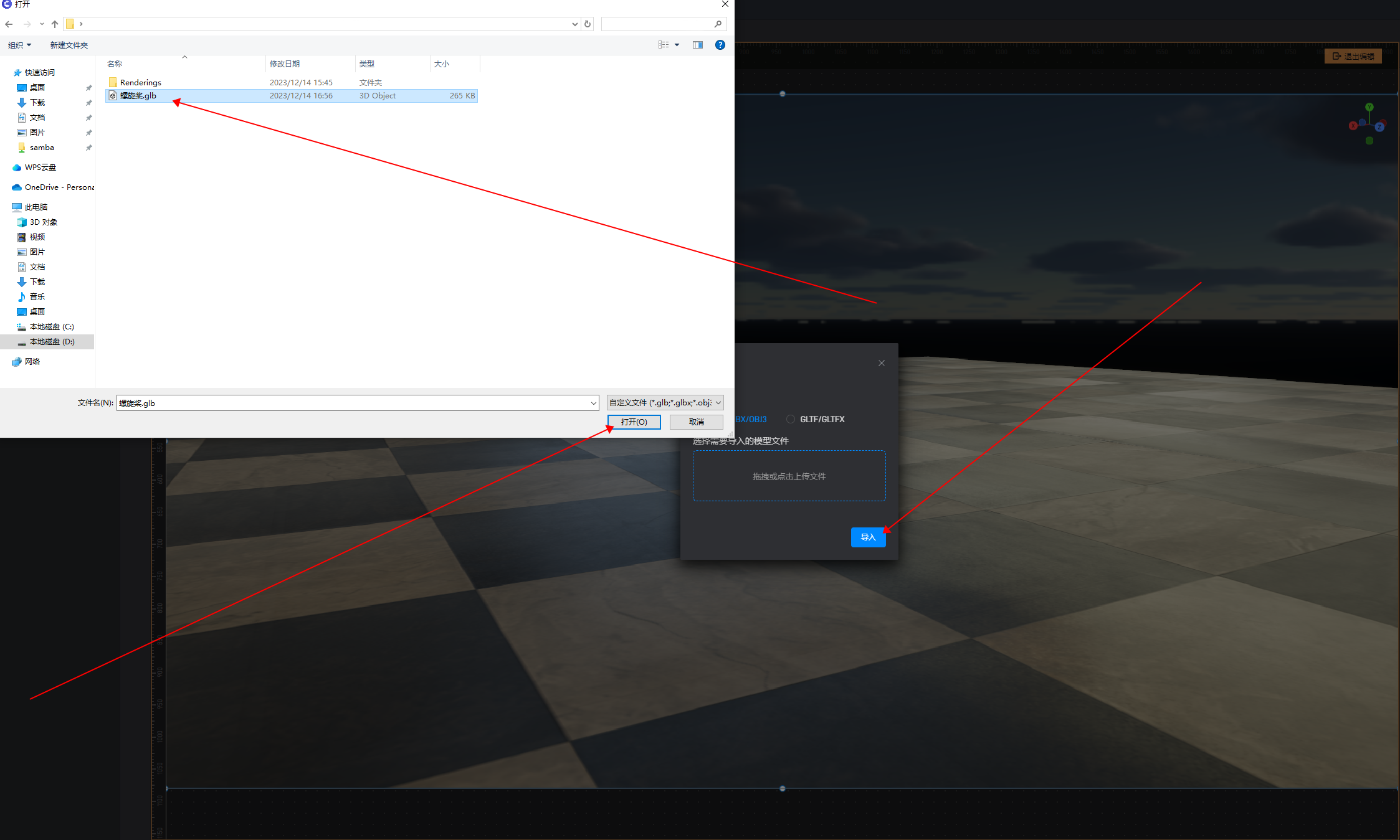 【温馨提示】gltf 有缓存,如果希望第二次打开项目时加载速度快的话,应选择 gltf。