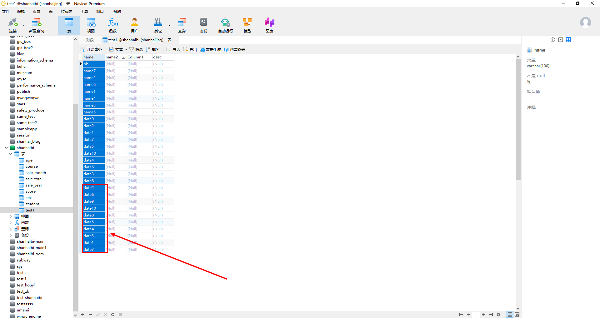 接入 MySQL 数据库后,可以看到应用界面左侧展示了数据库的所有信息,我们找到需要存储物联网设备数据的数据表,如下图所示: