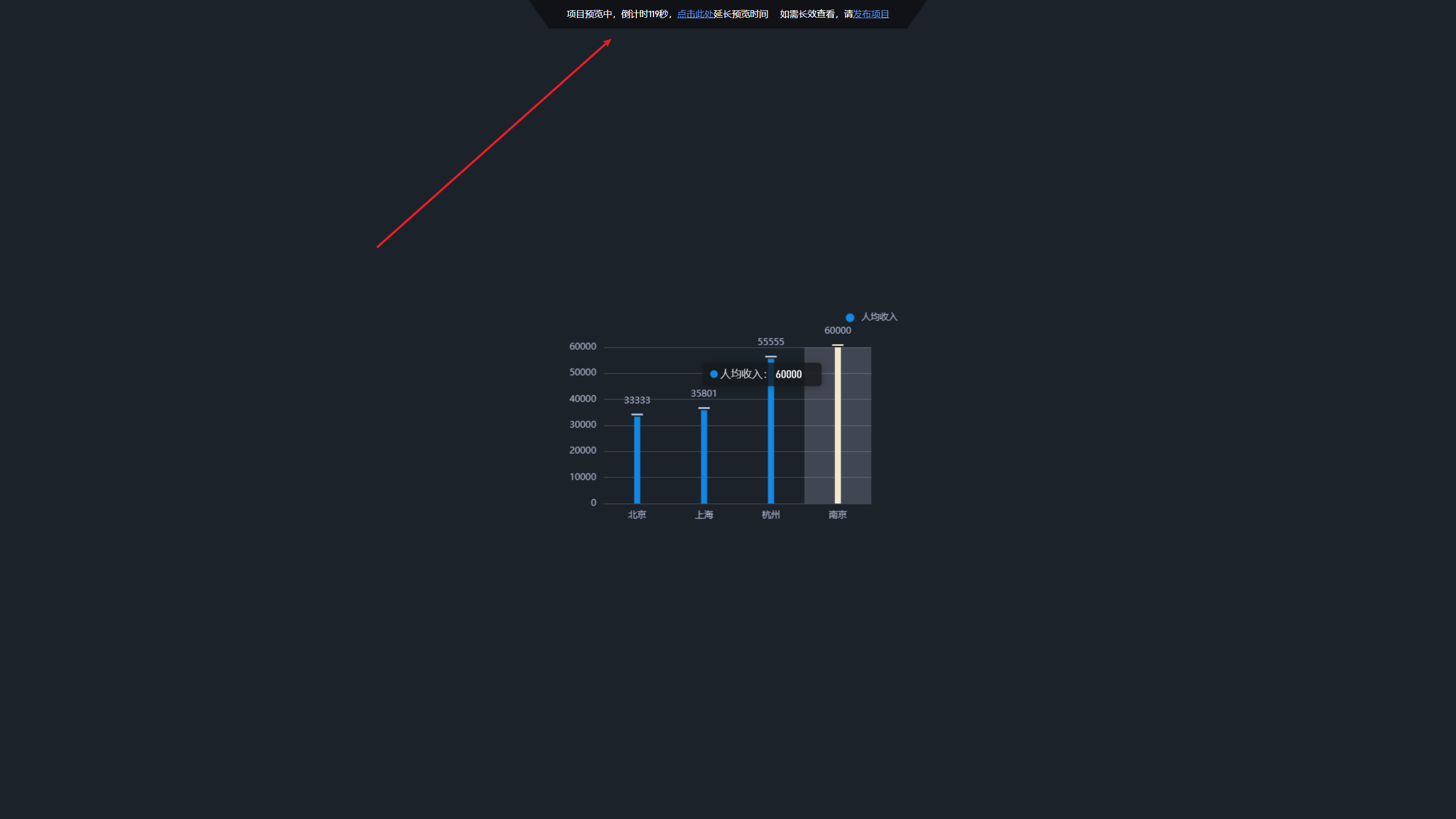 预览过程是限时的,在项目预览过程中,页面顶部会有倒计时提示。
