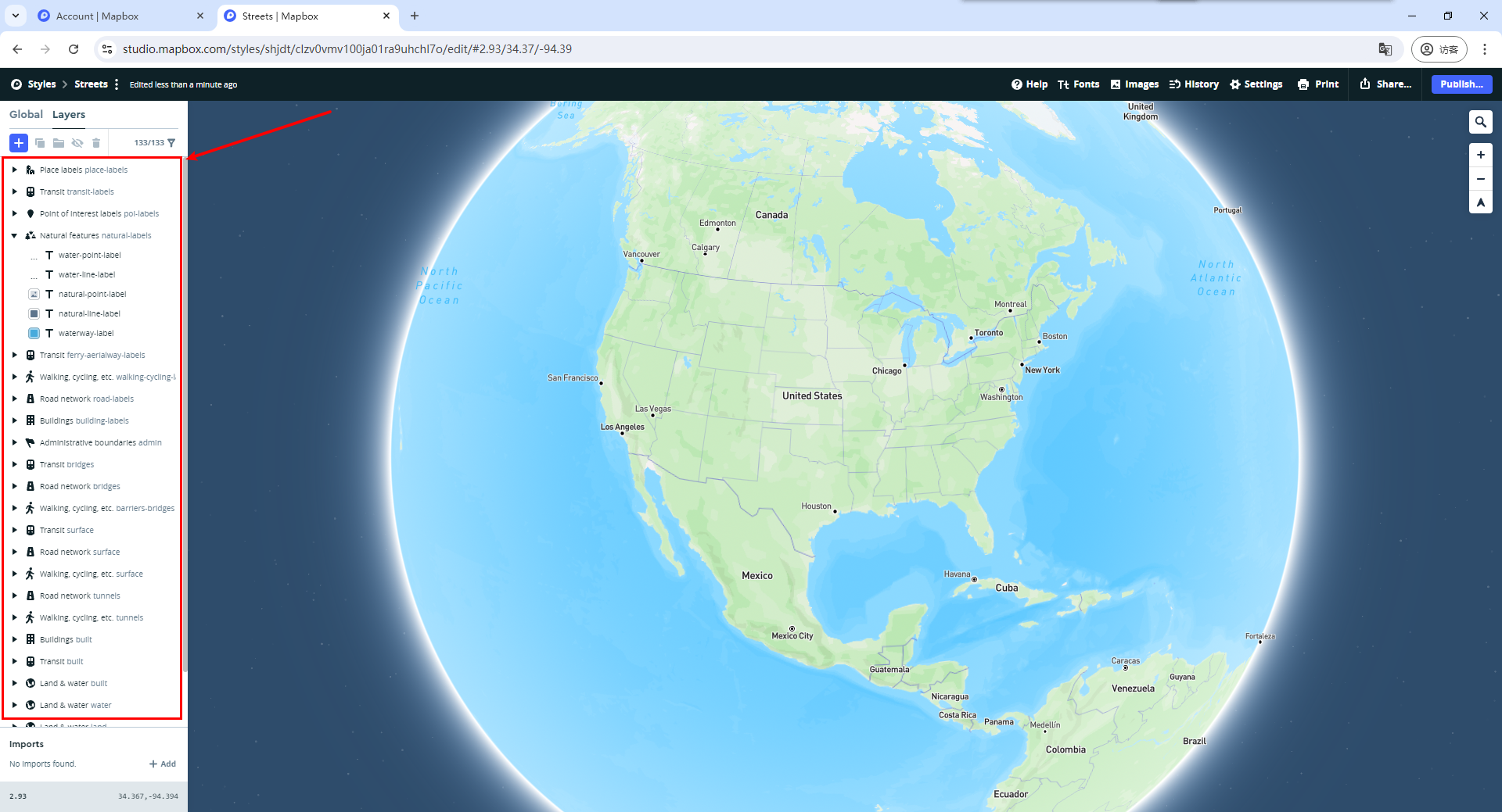 我们可以将本地的地图样式包上传到Mapbox上,并生成对应的StyleURL和Access token,导入到山海鲸可视化中使用。