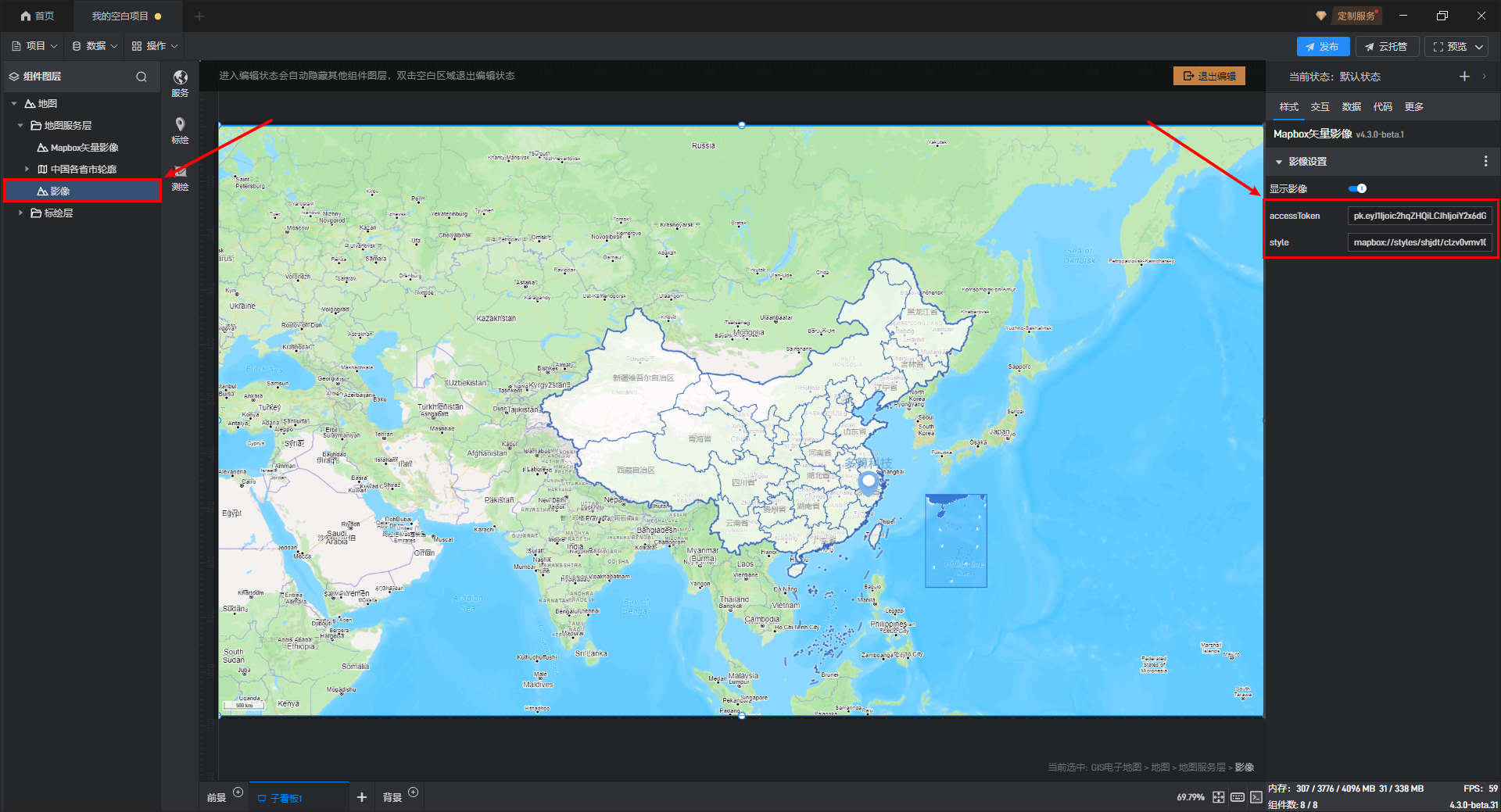4)这样我们就成功在山海鲸可视化中添加了 Mapbox 影像。