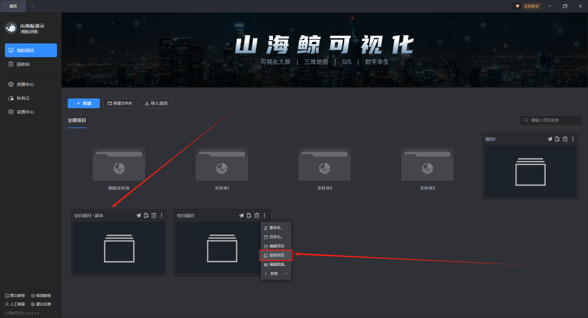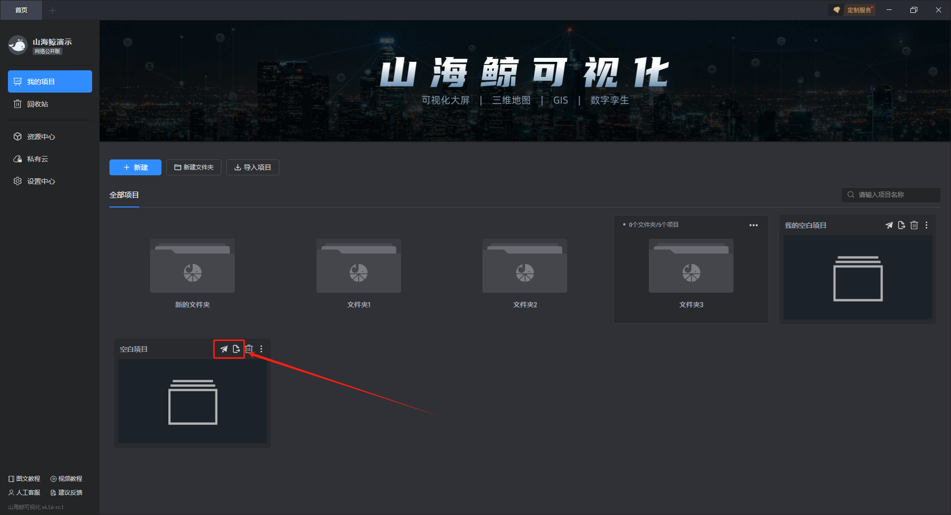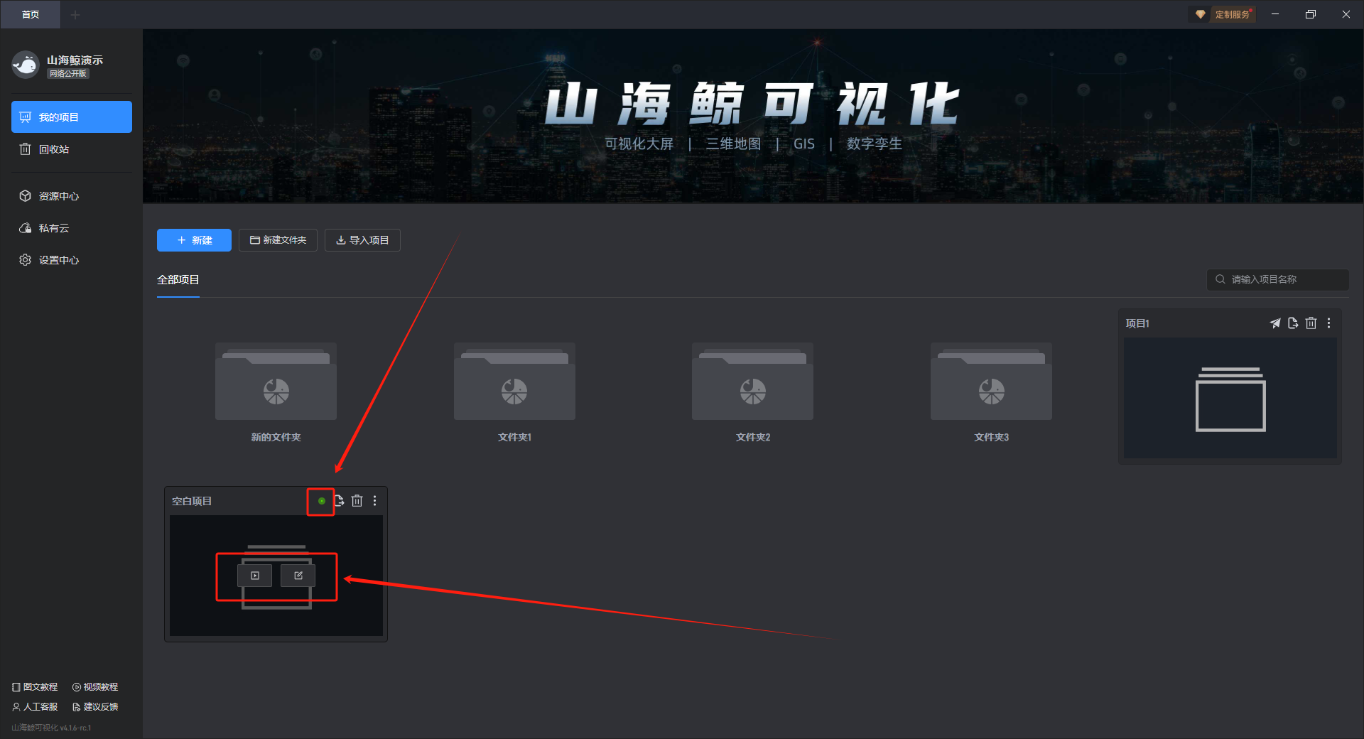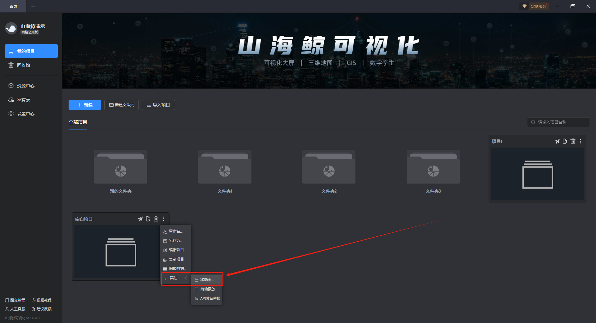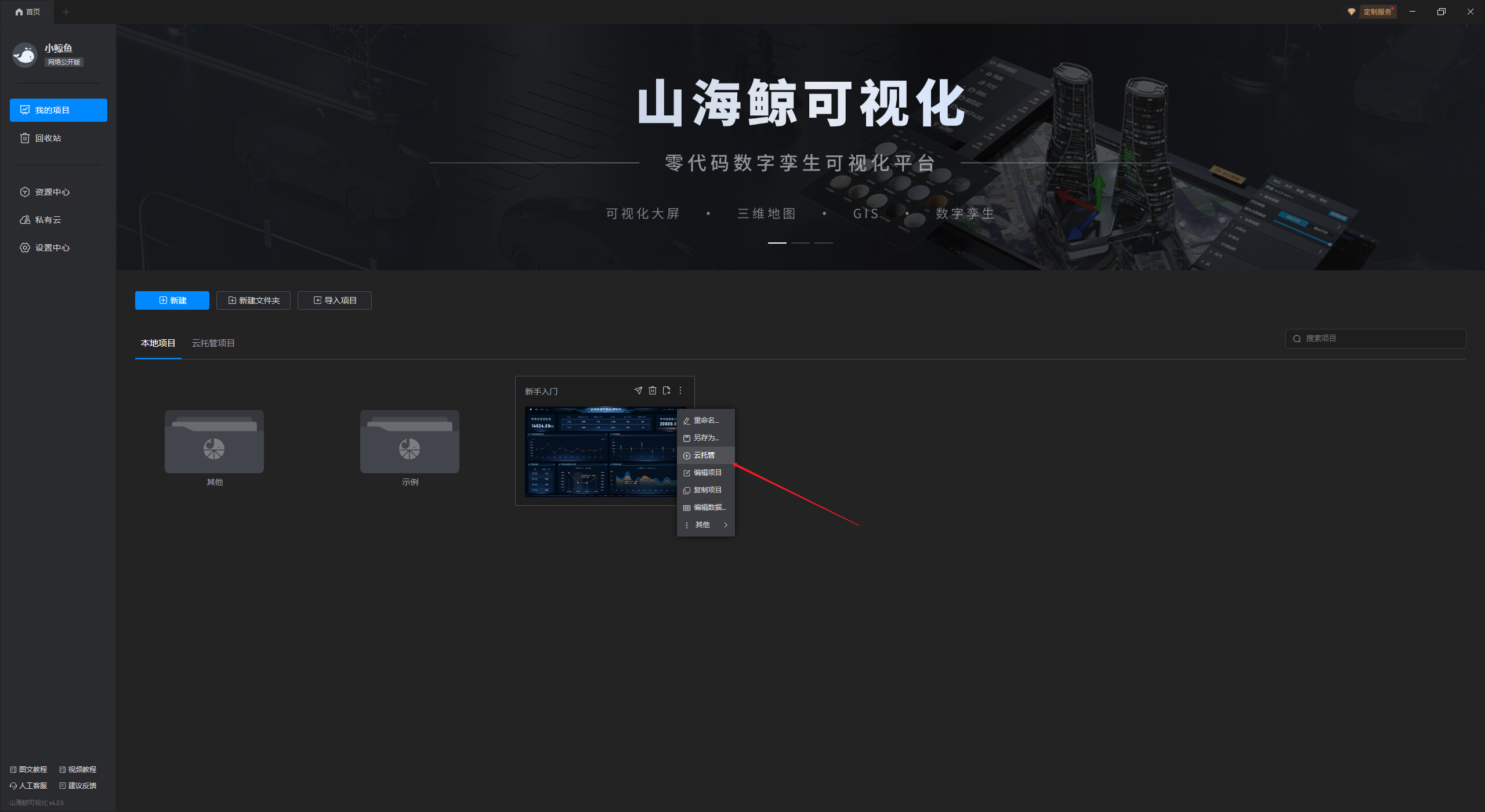 在我的项目界面中,我们可以看到所有项目文件夹和项目,除了点击打开项目进行编辑,我们也可以在这个界面中进行一些操作,具体如下:
