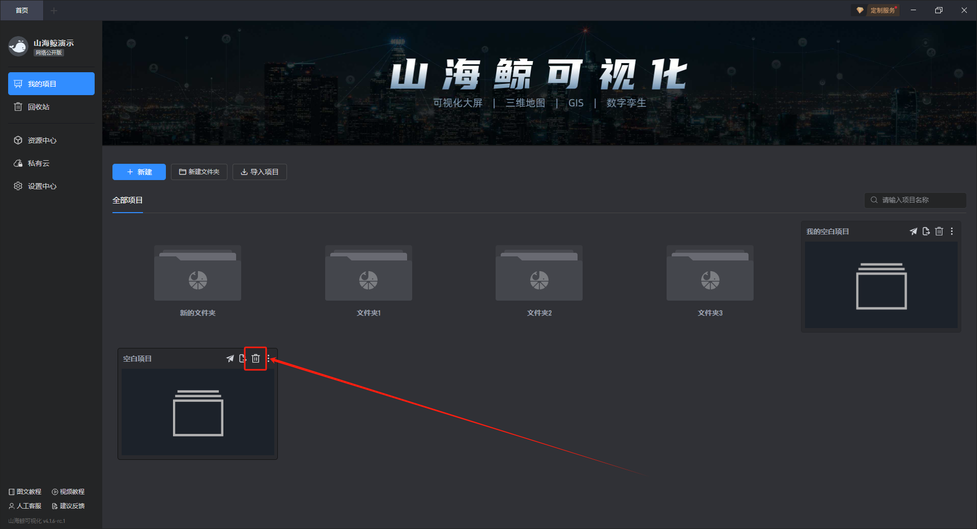 项目删除后默认进入回收站,从回收站删除后则会彻底删除。