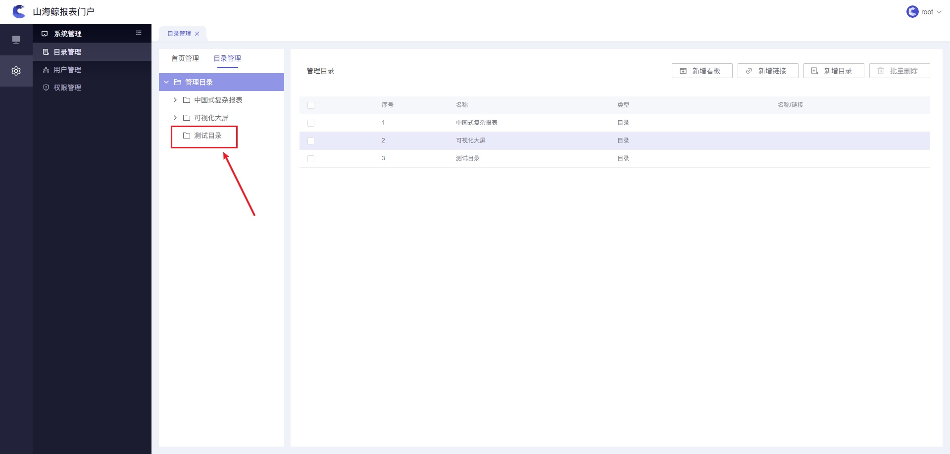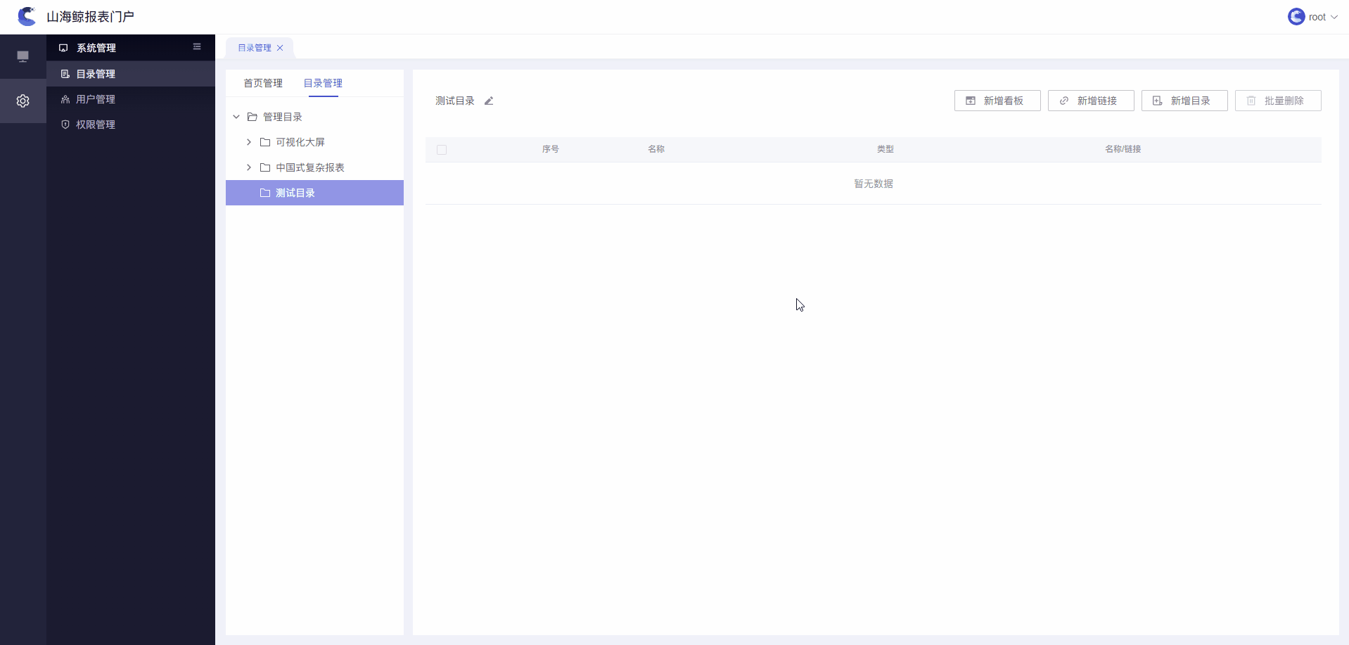 管理员可进行目录的增删改查操作,可添加看板、链接、目录等,本文将详细介绍。如下图所示: