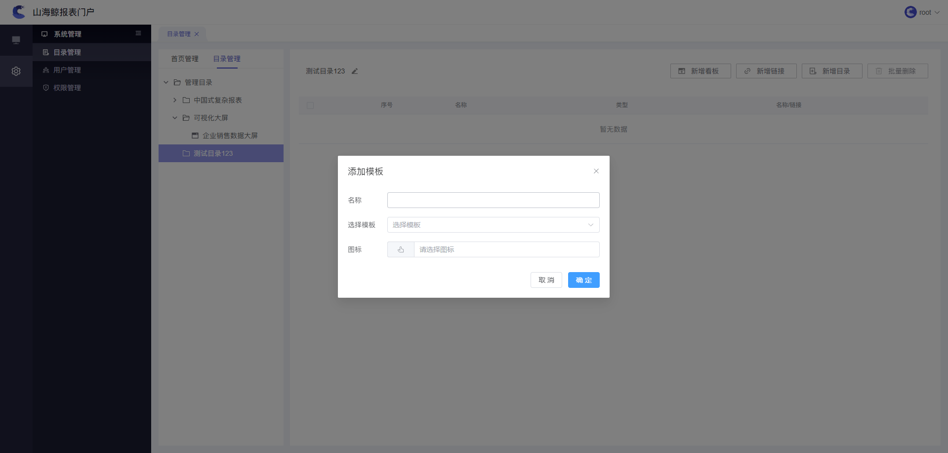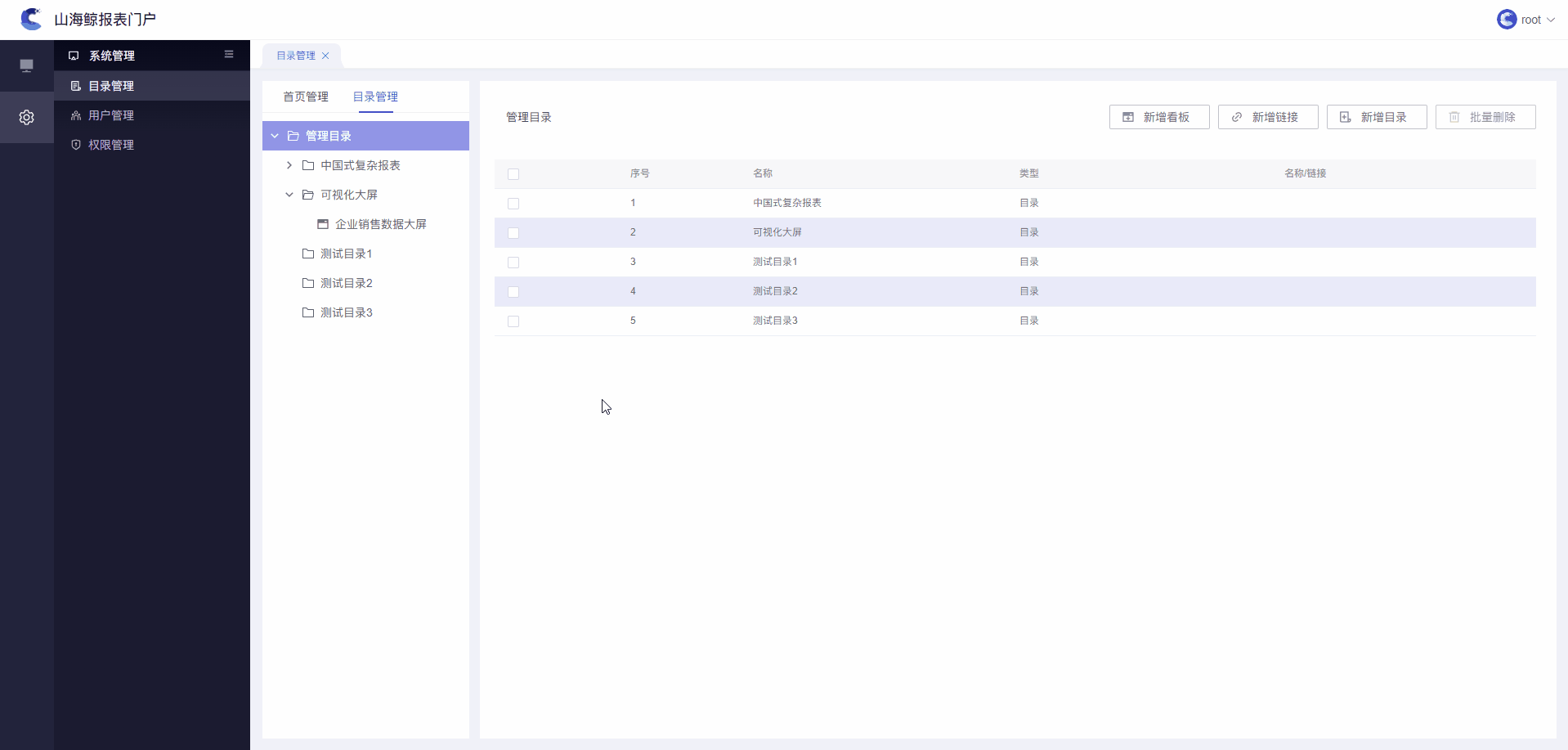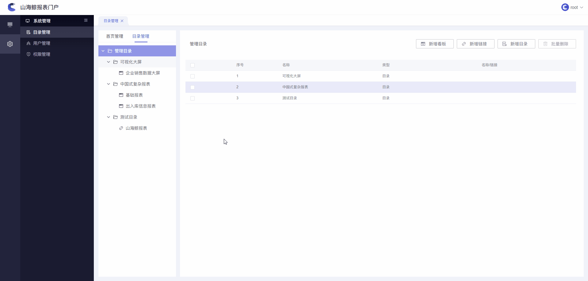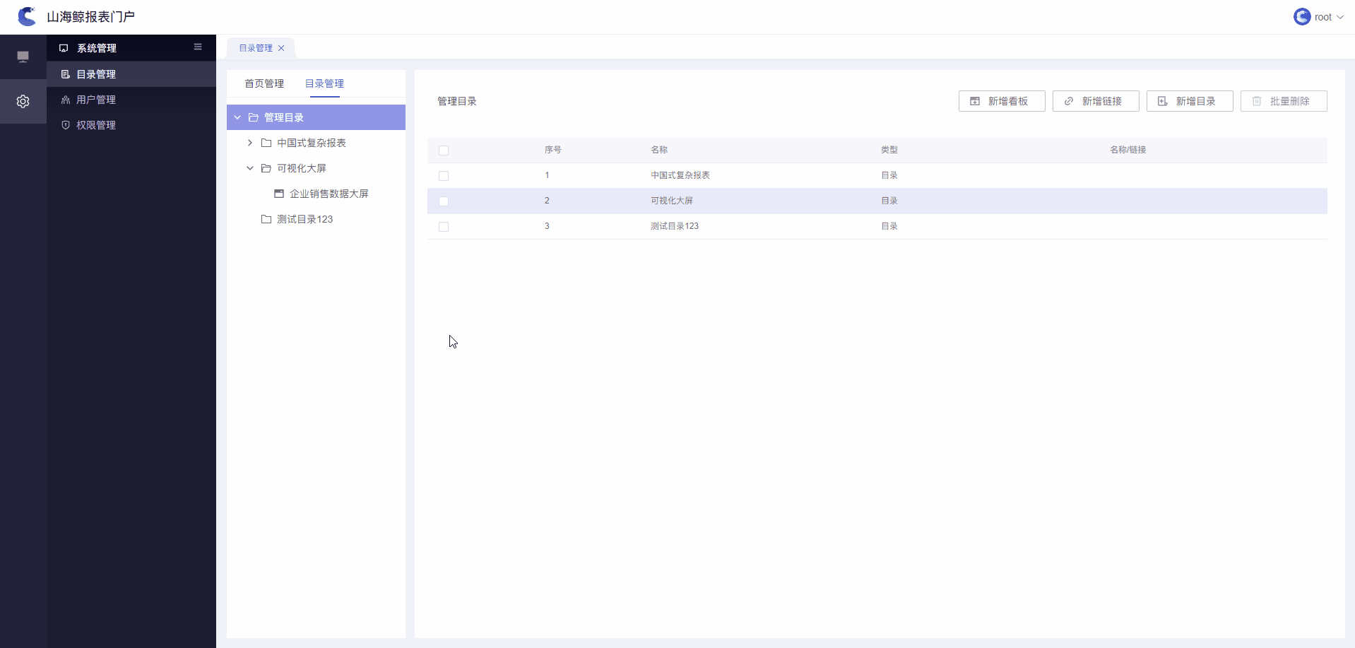 1)用户可在目录管理中,对报表门户系统的目录进行增加、修改和删除等操作。