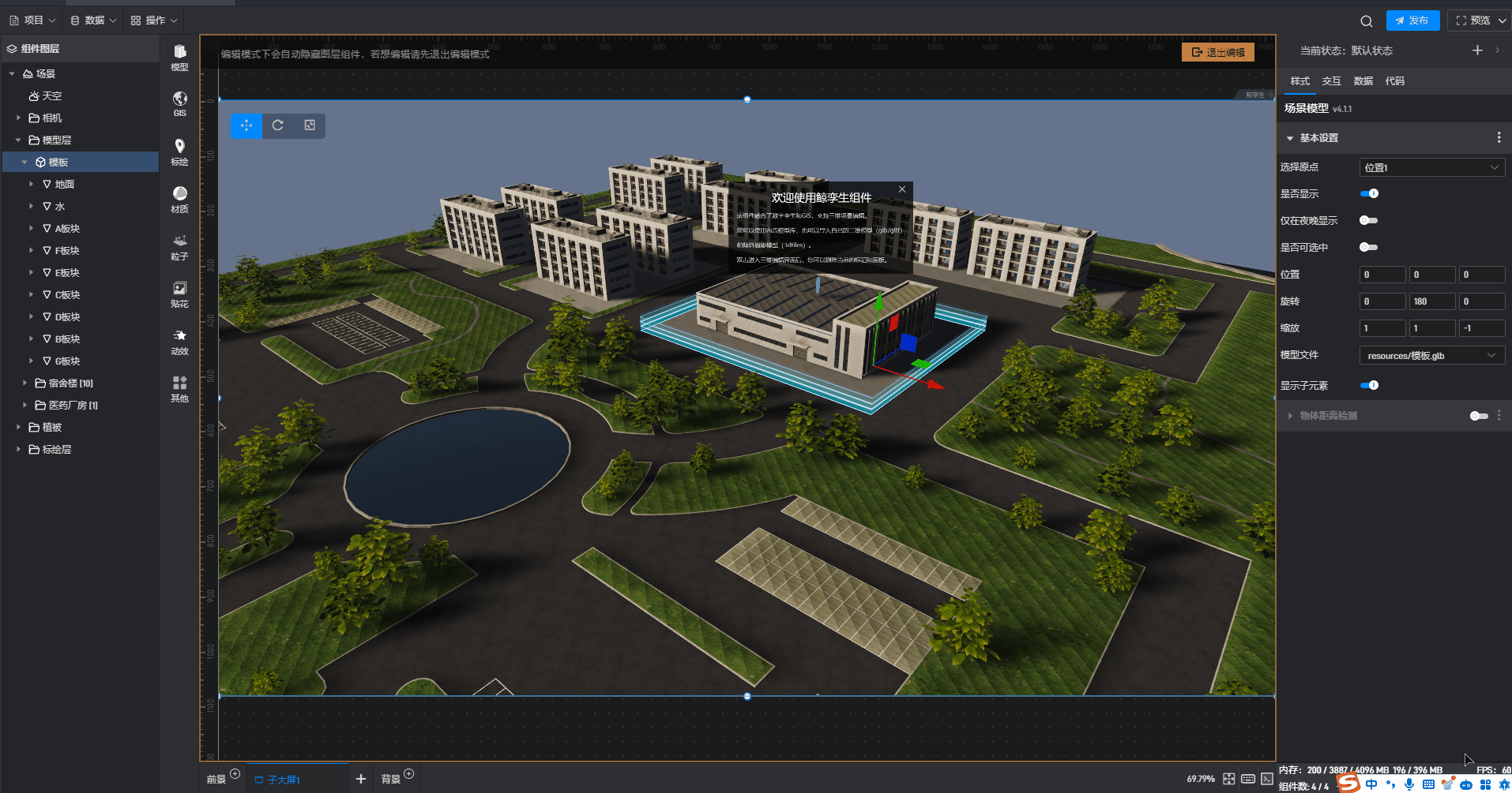 场景模式是指通过模型文件导入鲸孪生中的模型根节点,我们分成两个部分来介绍。