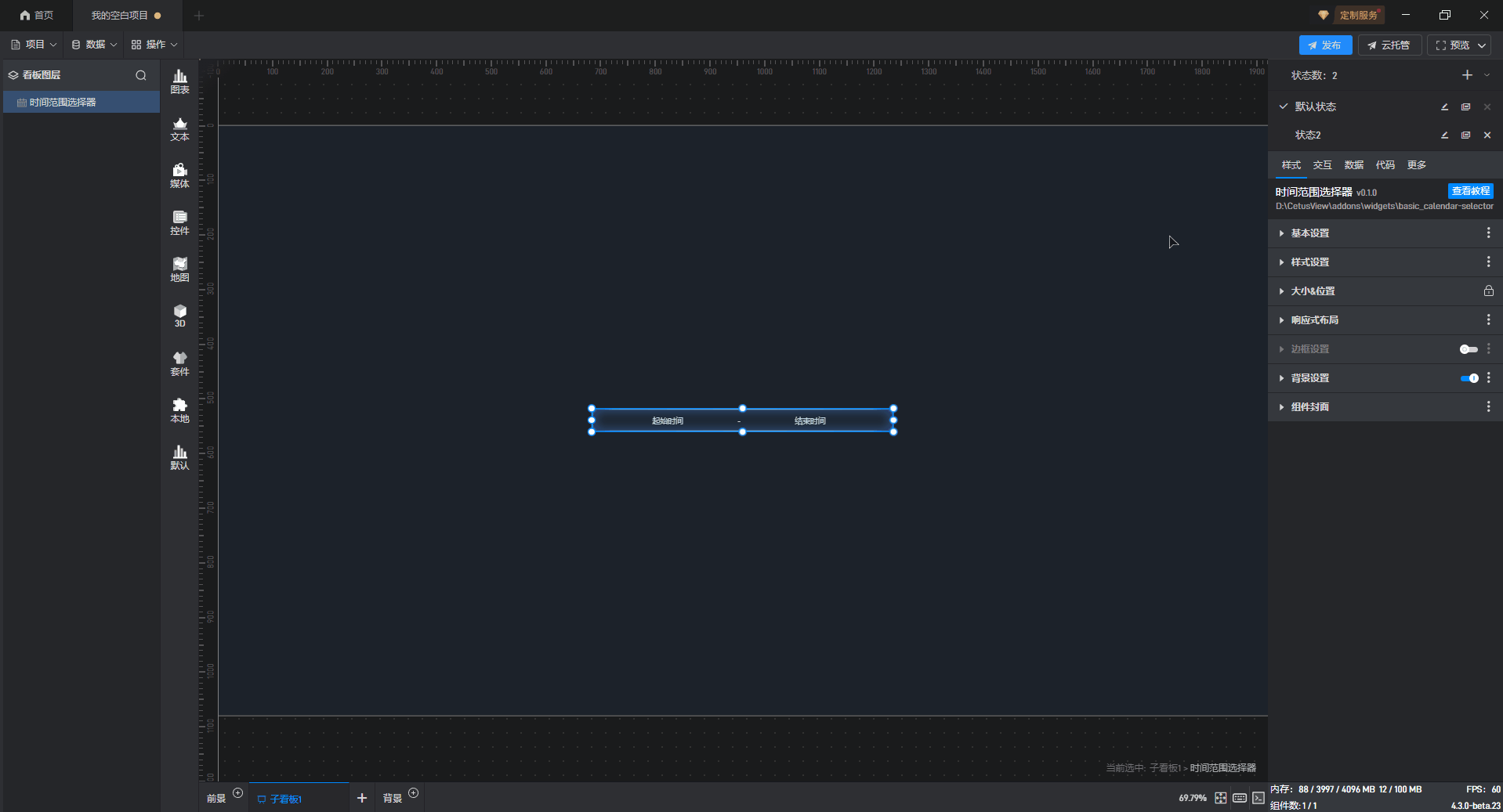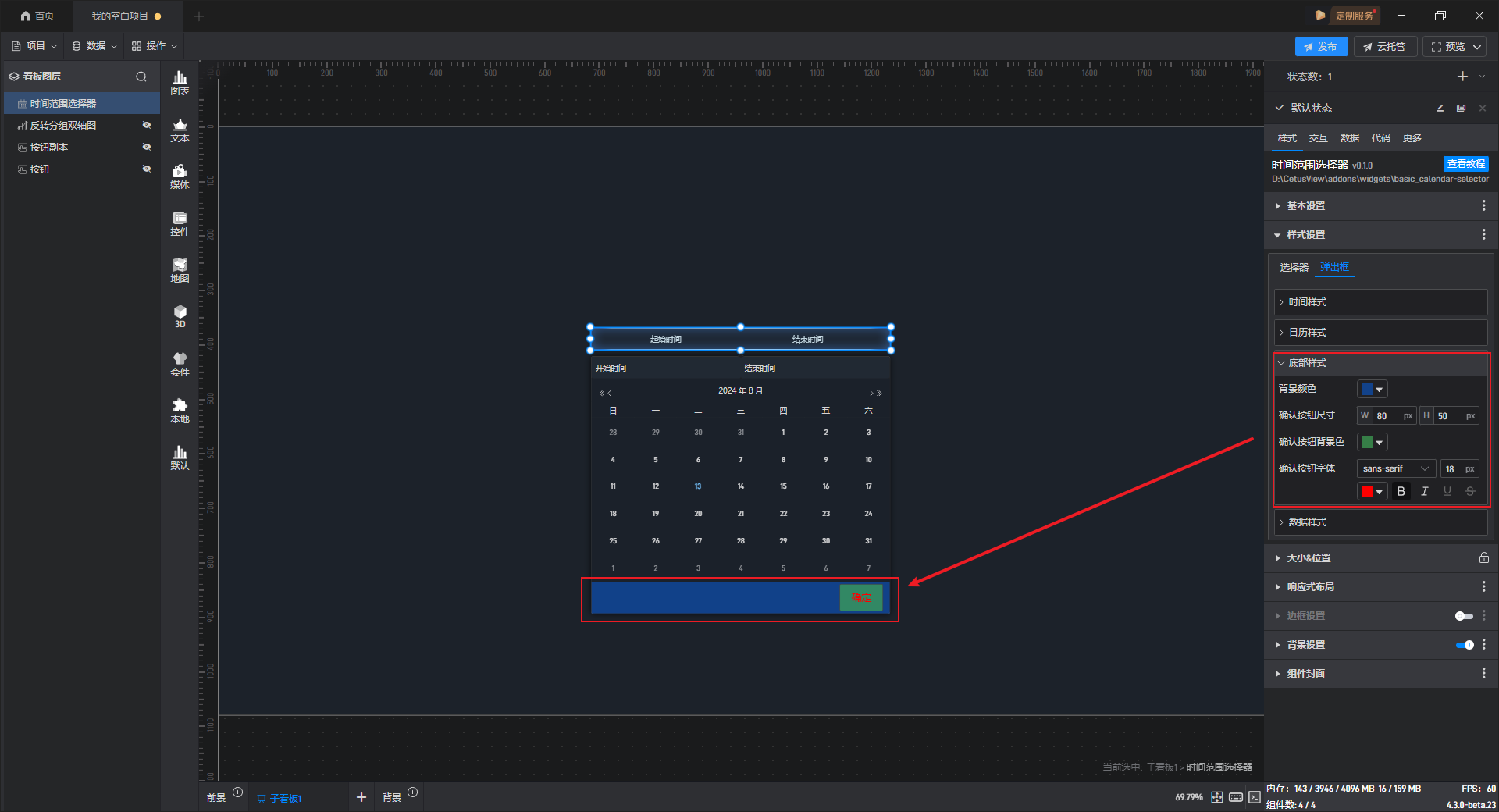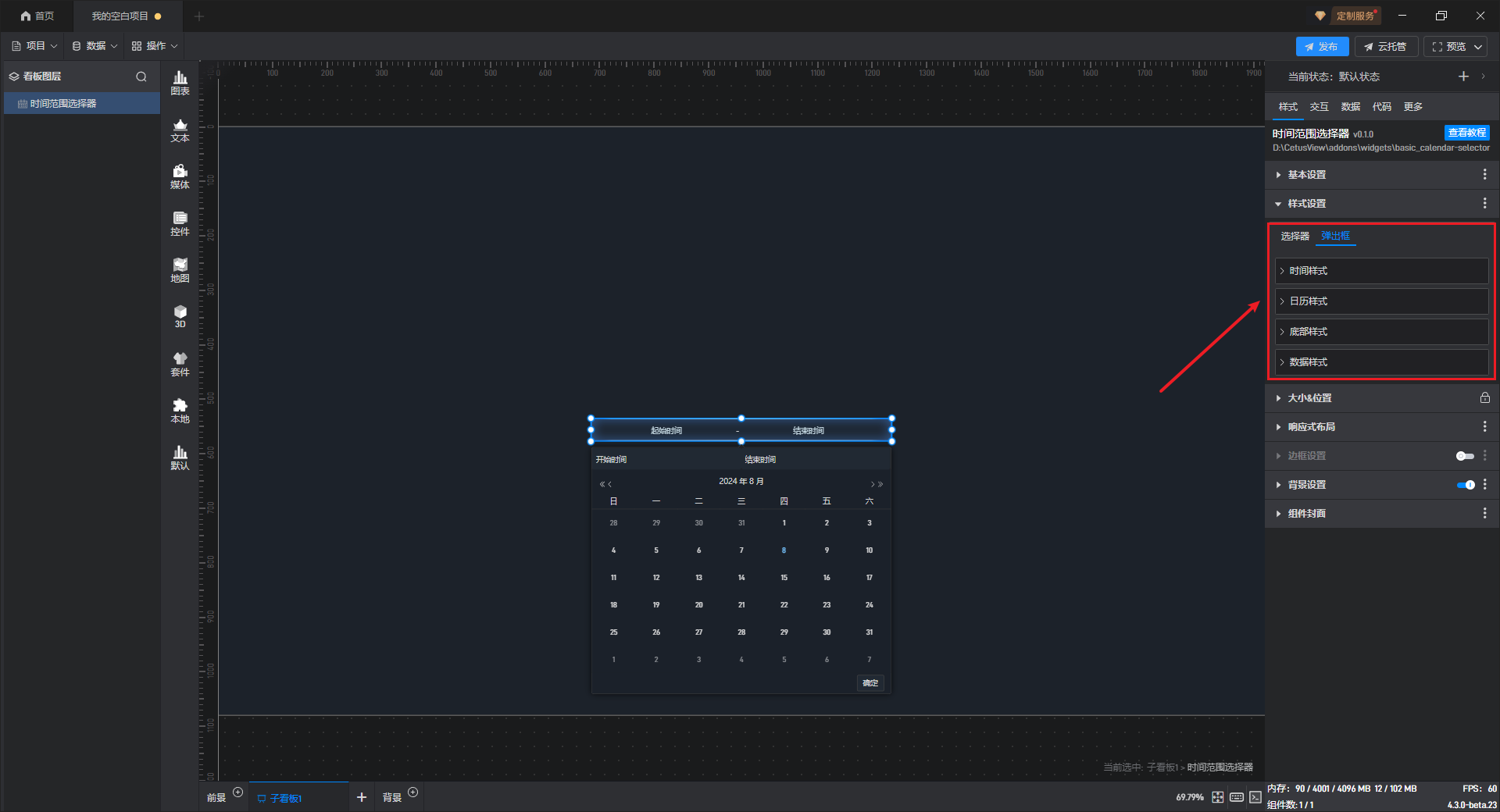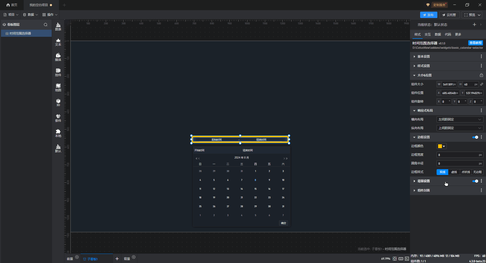 时间范围选择组件添加 边框样式,如下图所示: