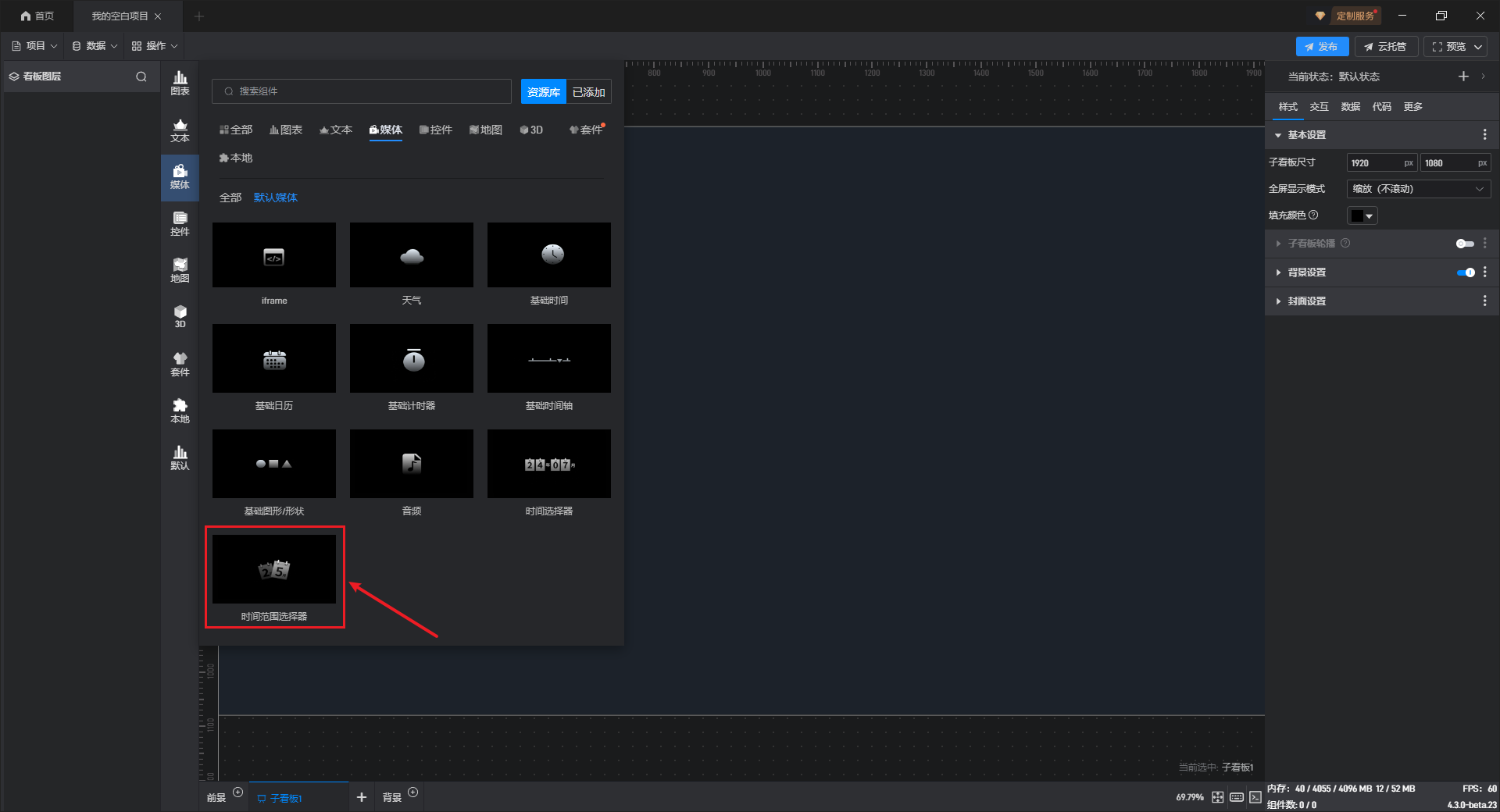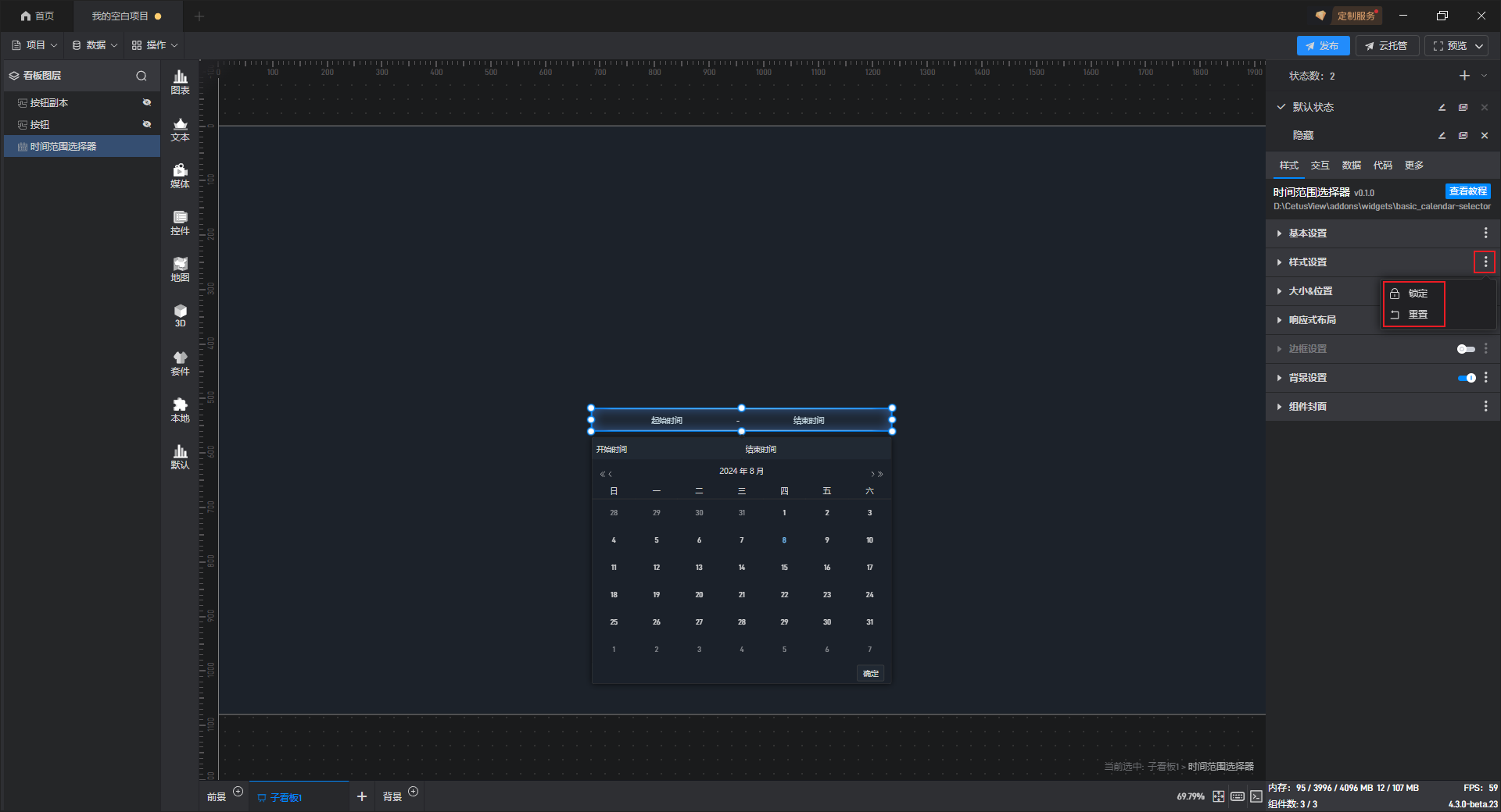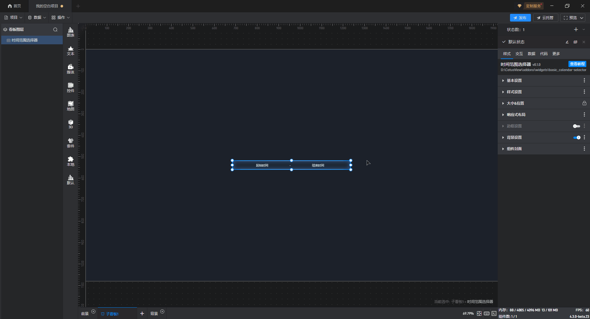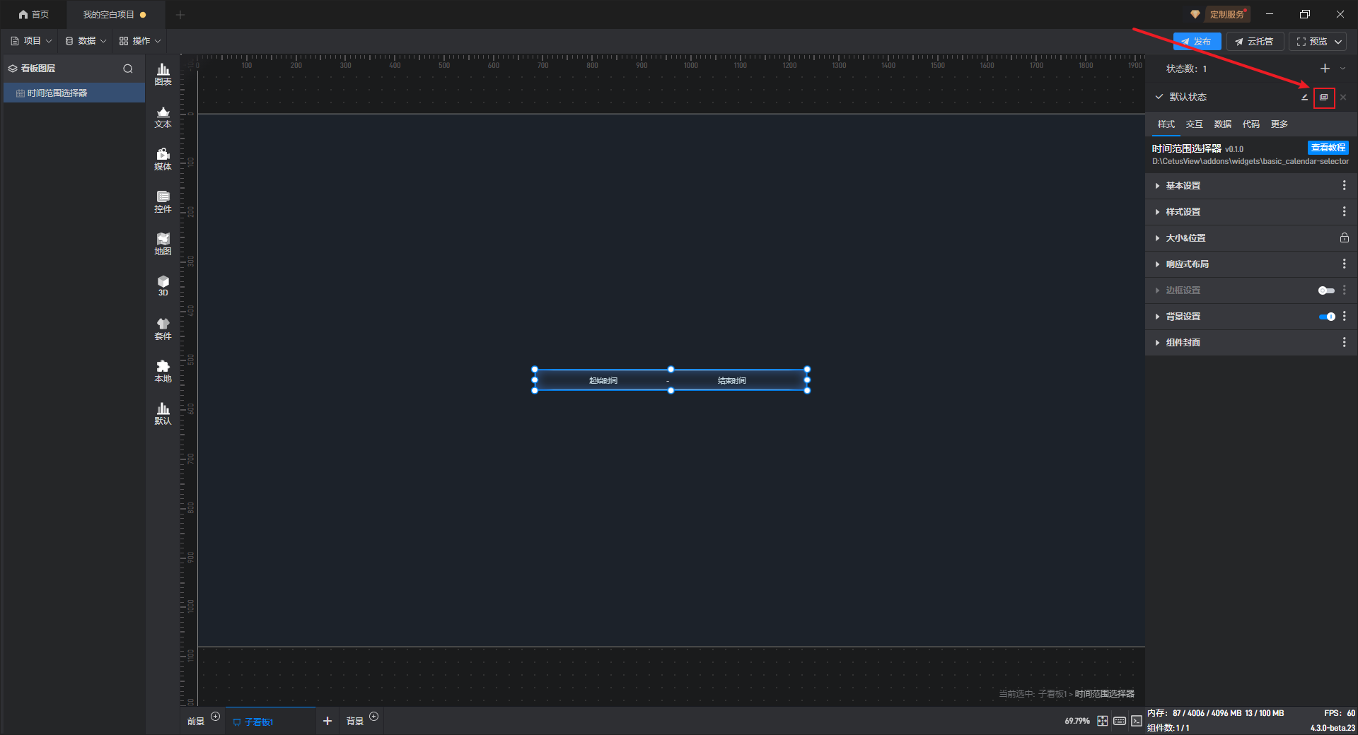时间范围选择组件添加 边框样式,如下图所示: