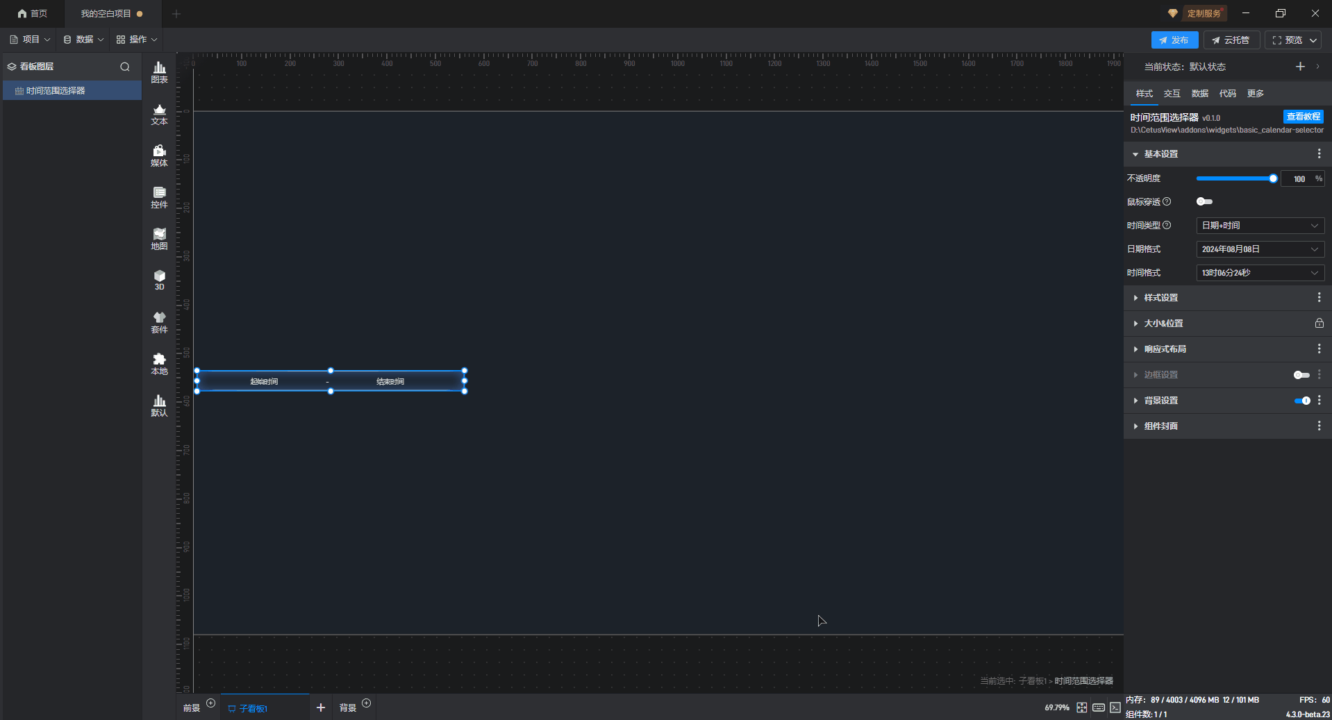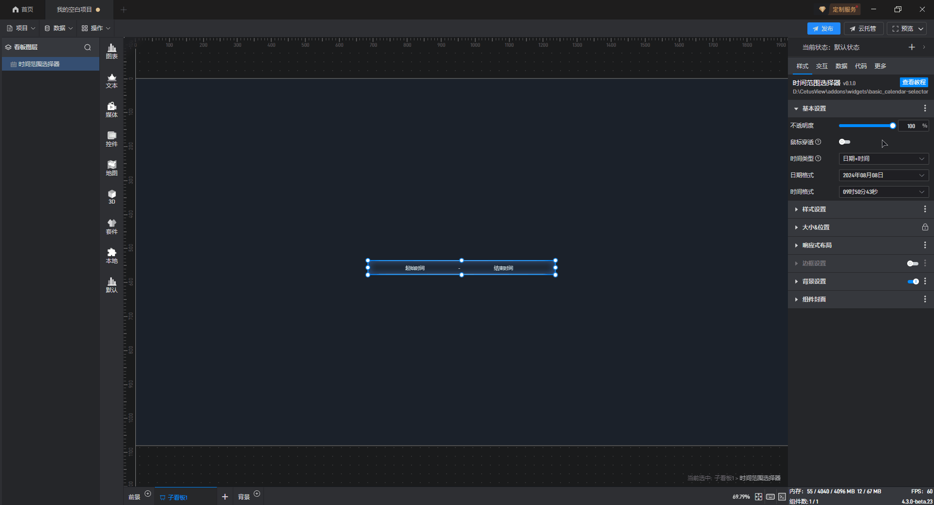 | 时间格式 | 时间格式默认为添加该组件的日期,如“09 时 50 分 43 秒”,也可以根据需求自定义格式样式。 |