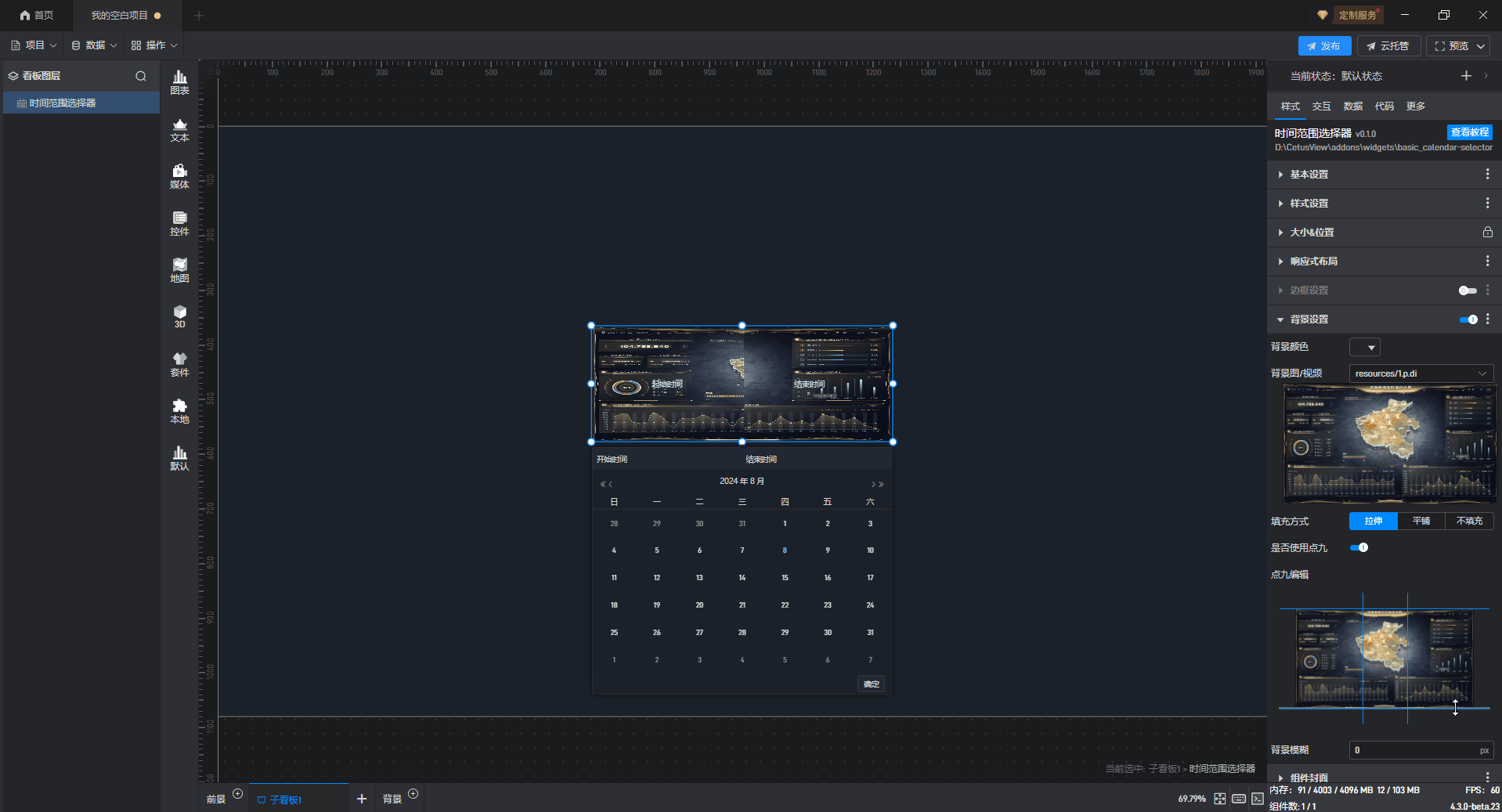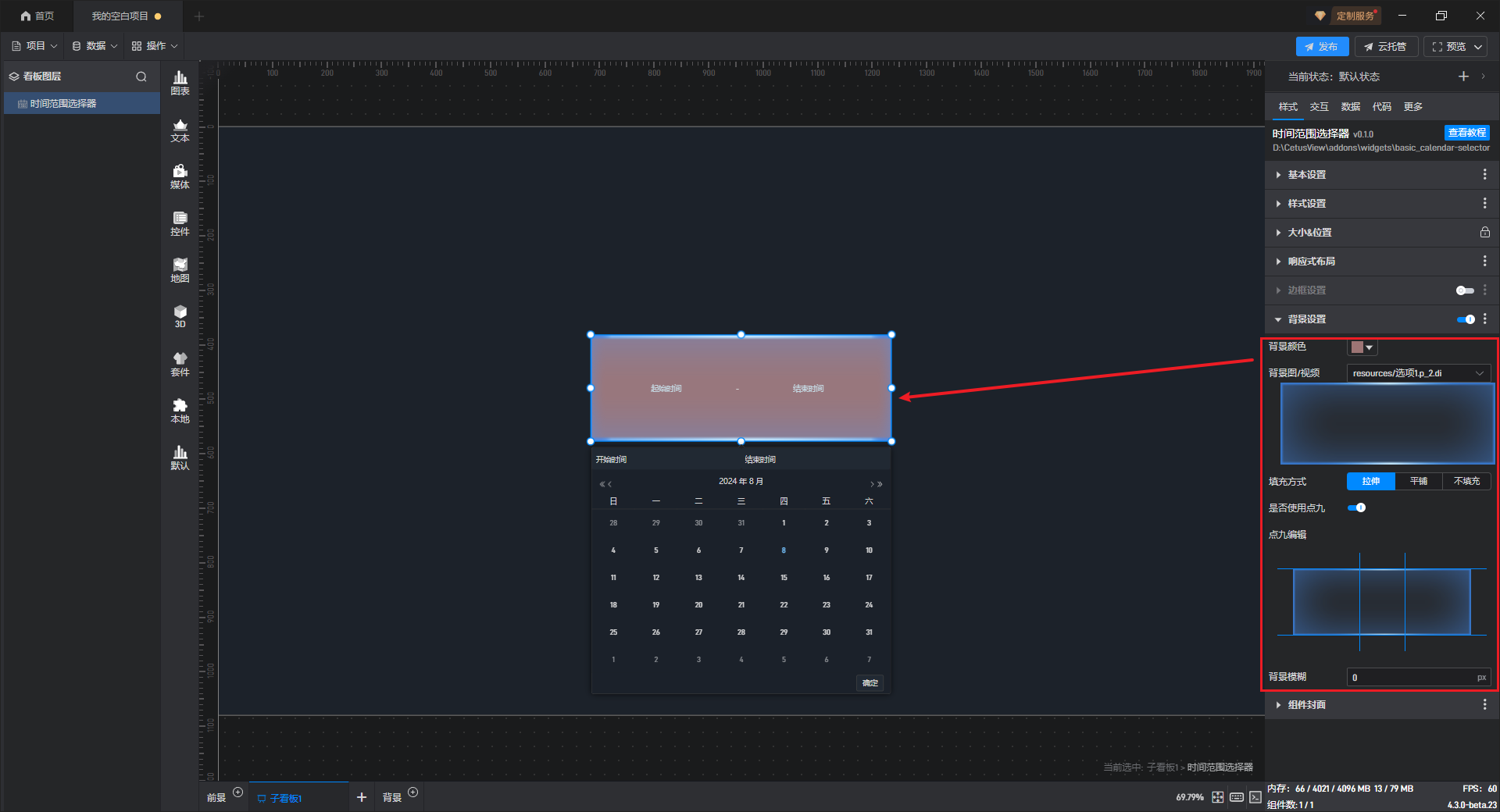 时间范围选择组件 使用点九填充背景样式,如下图所示: