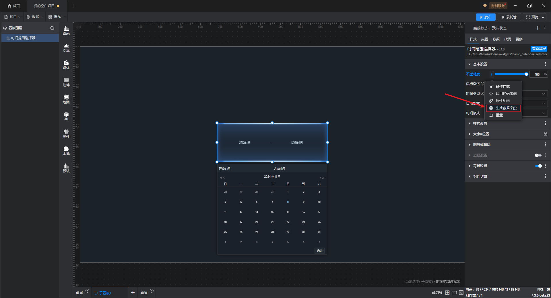 打开扩展设置的窗口,点击第三个选项“生成数据字段”。