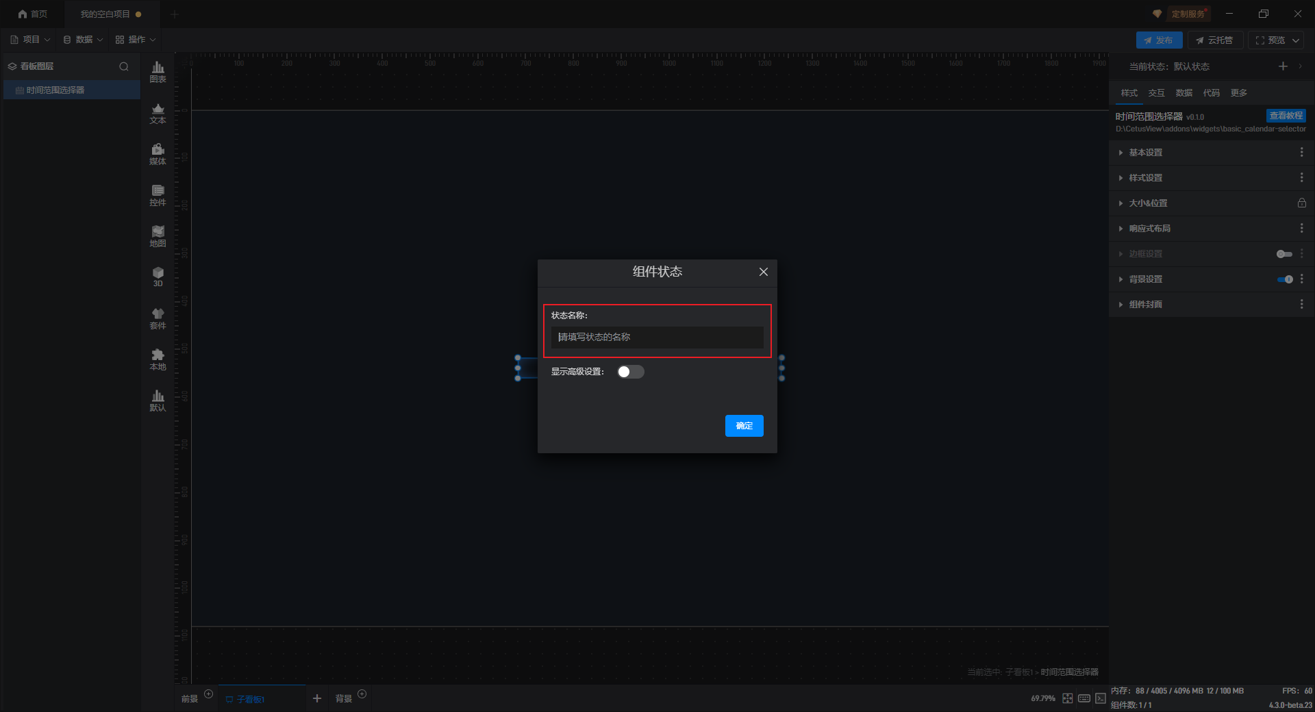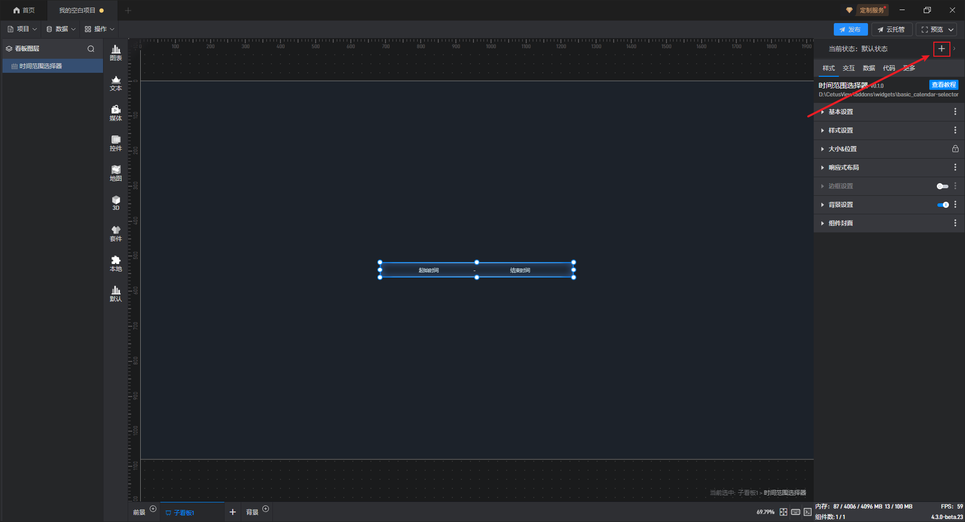 点击右上角的“+”可以添加一个新的组件状态。