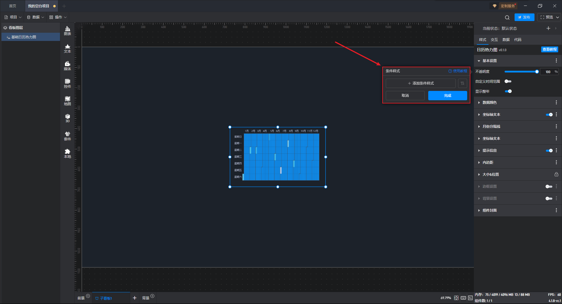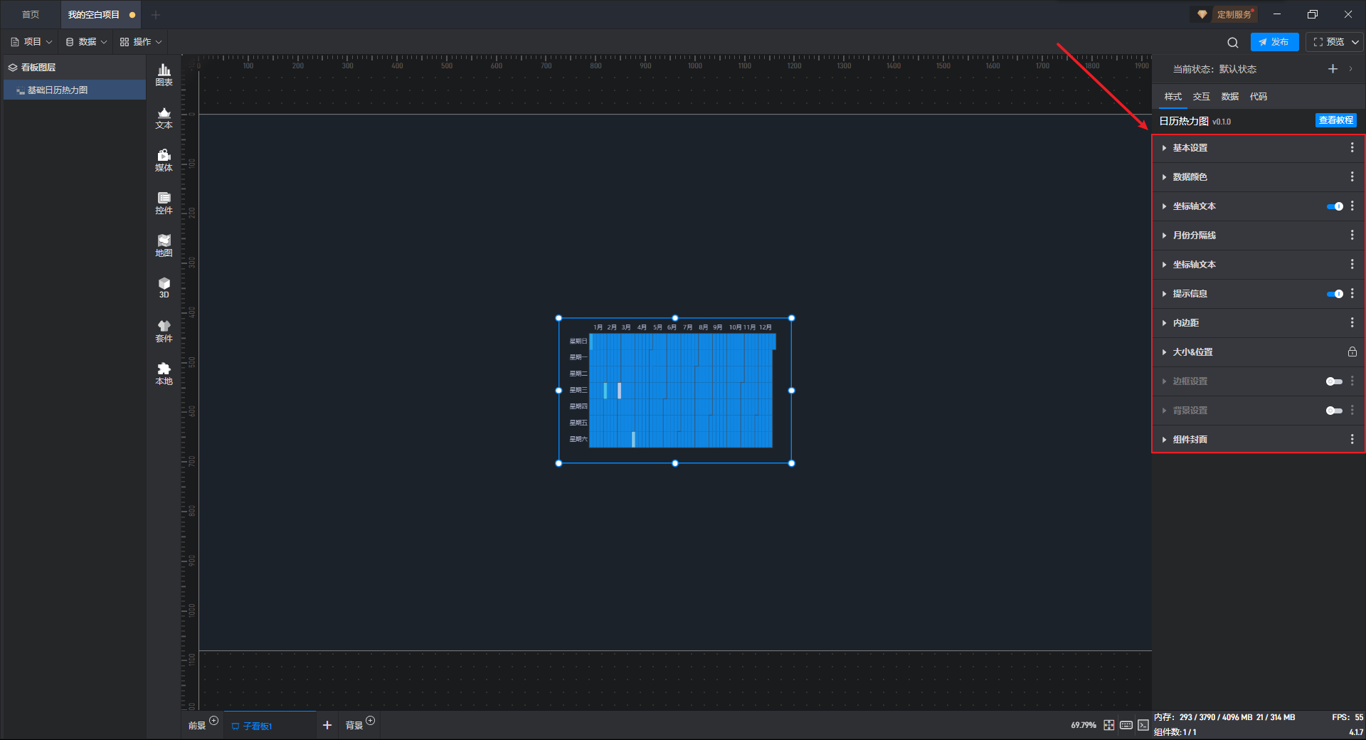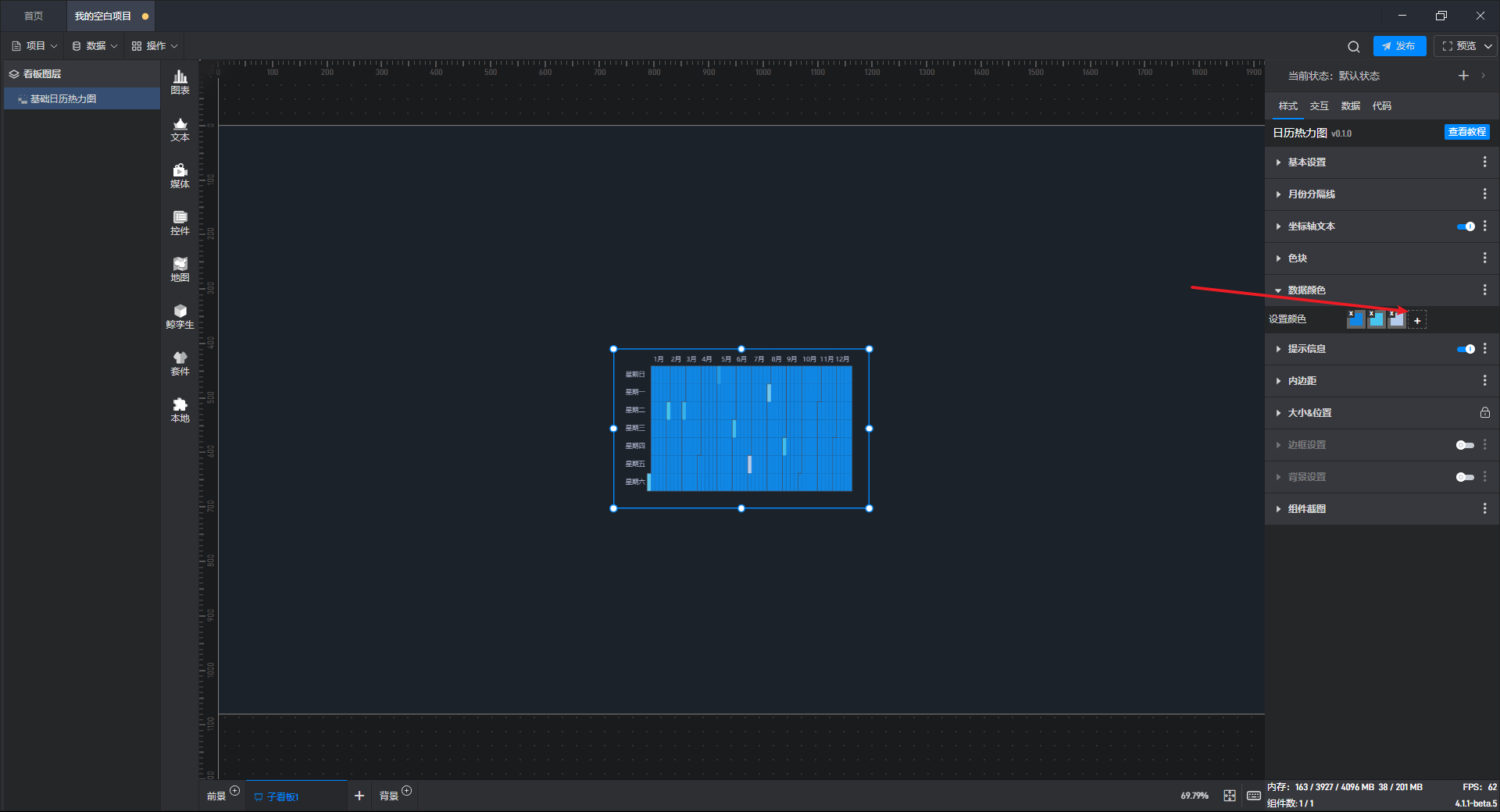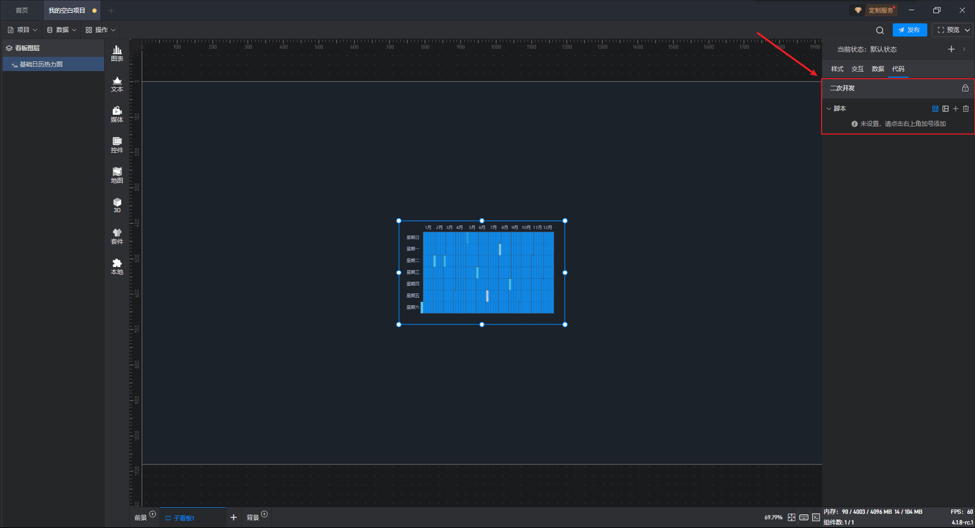 下面我们以基础日历热力图为例,为大家介绍一下组件的使用步骤: