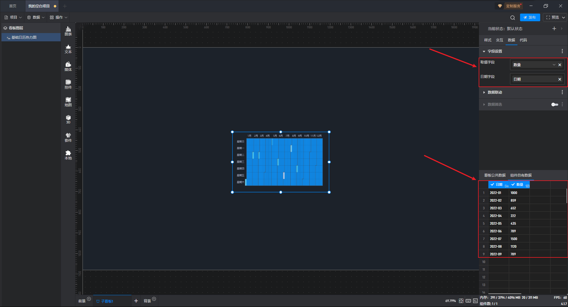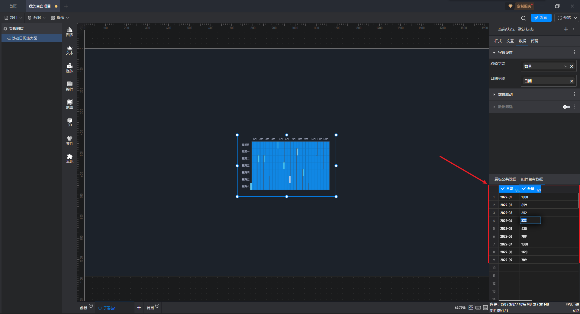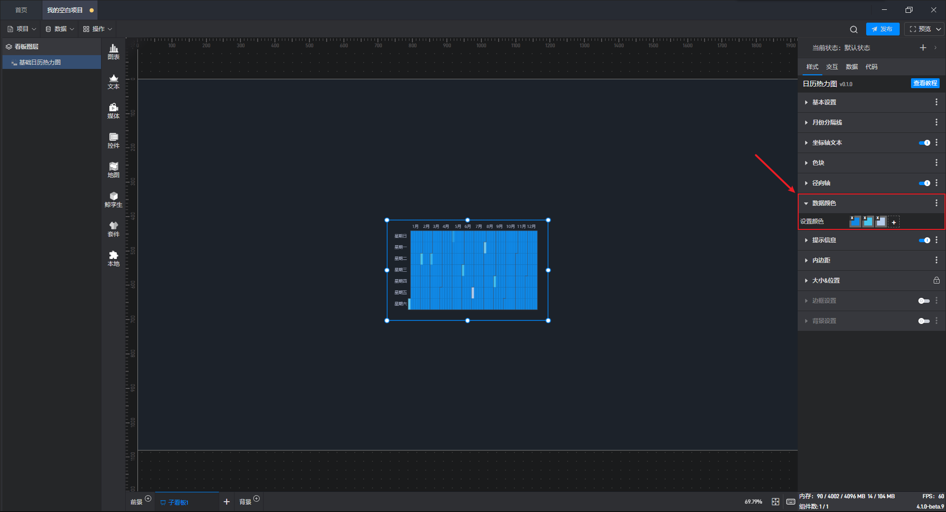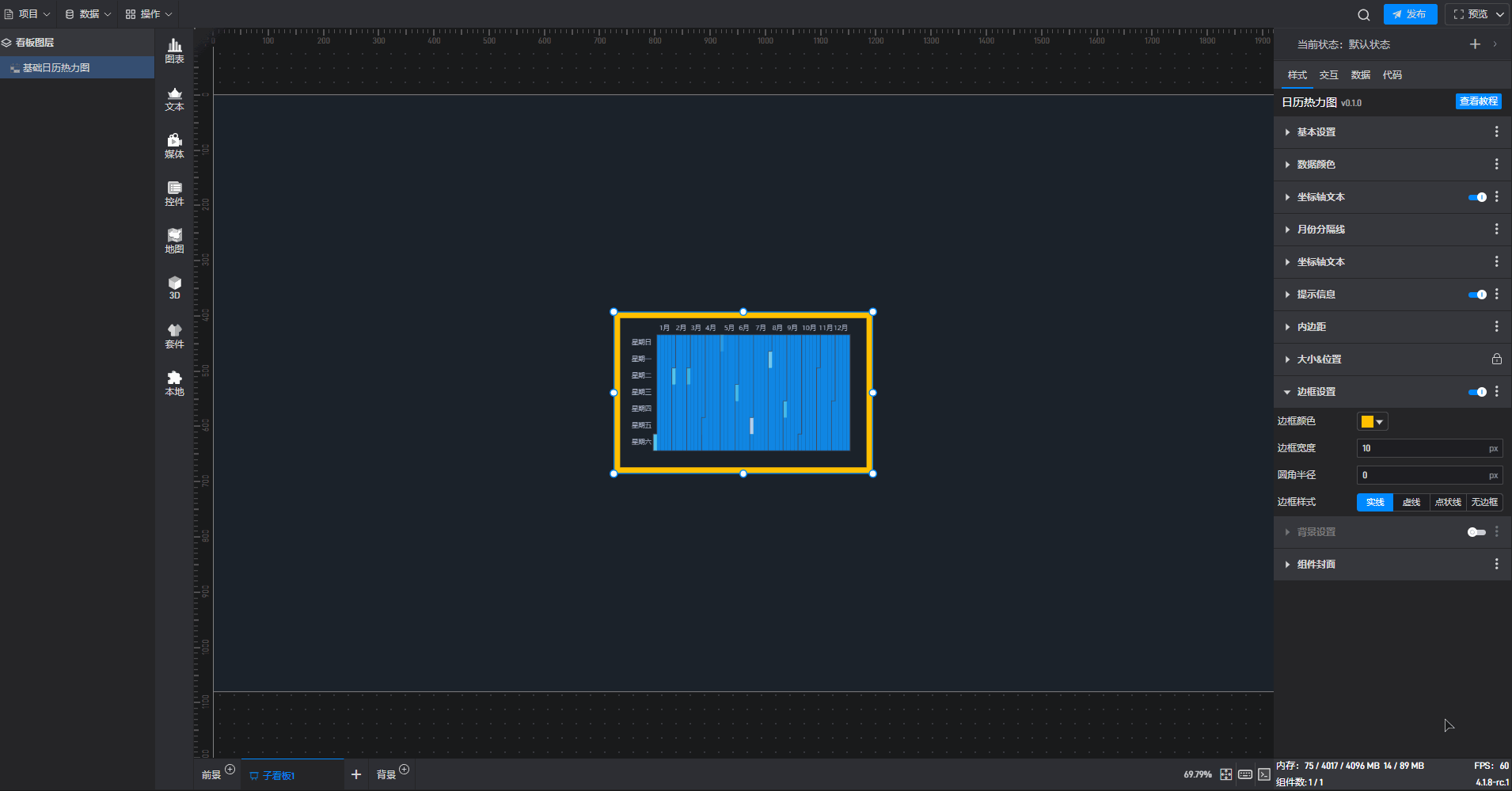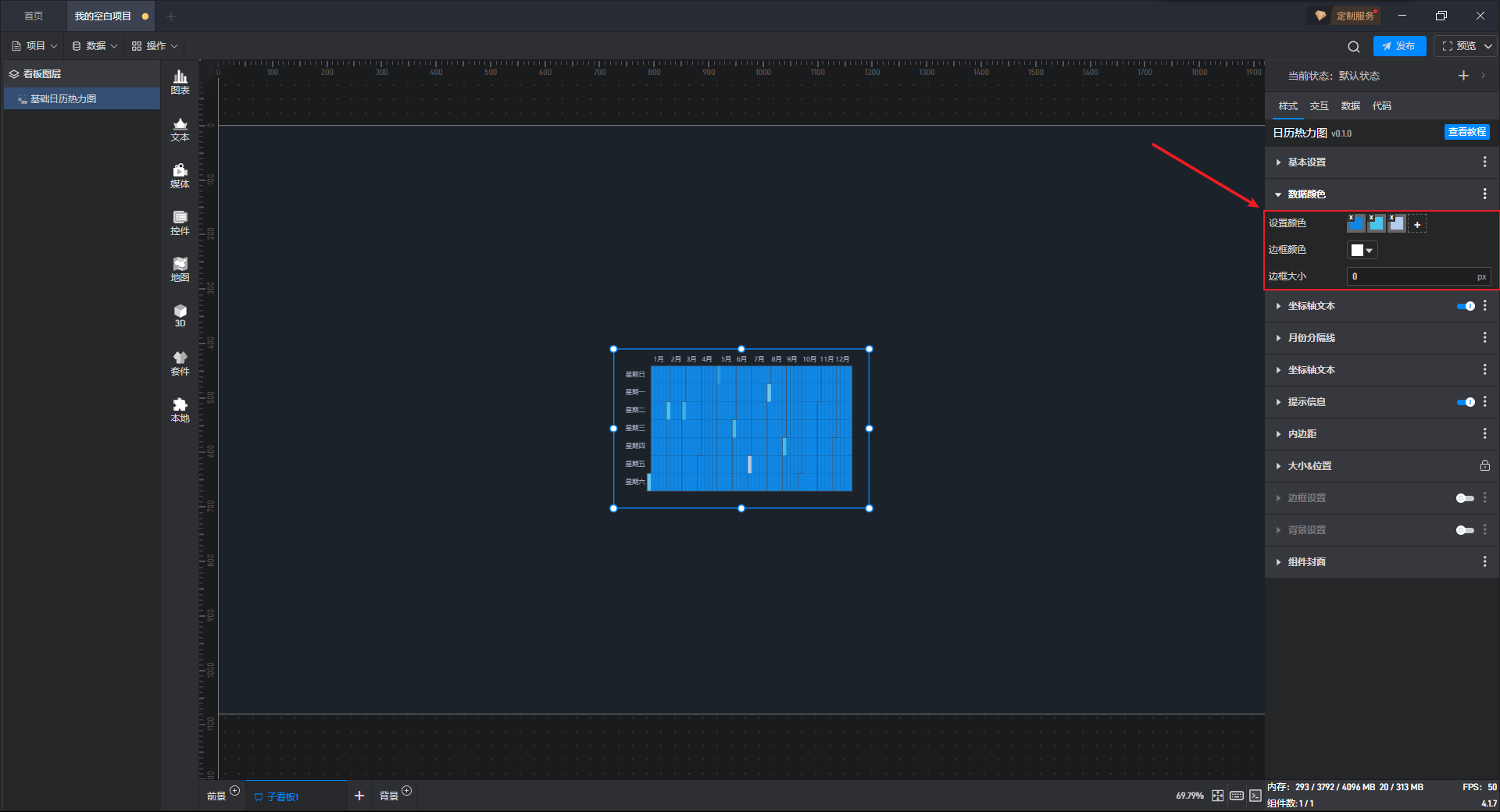 下面我们以基础日历热力图为例,为大家介绍一下组件的使用步骤: