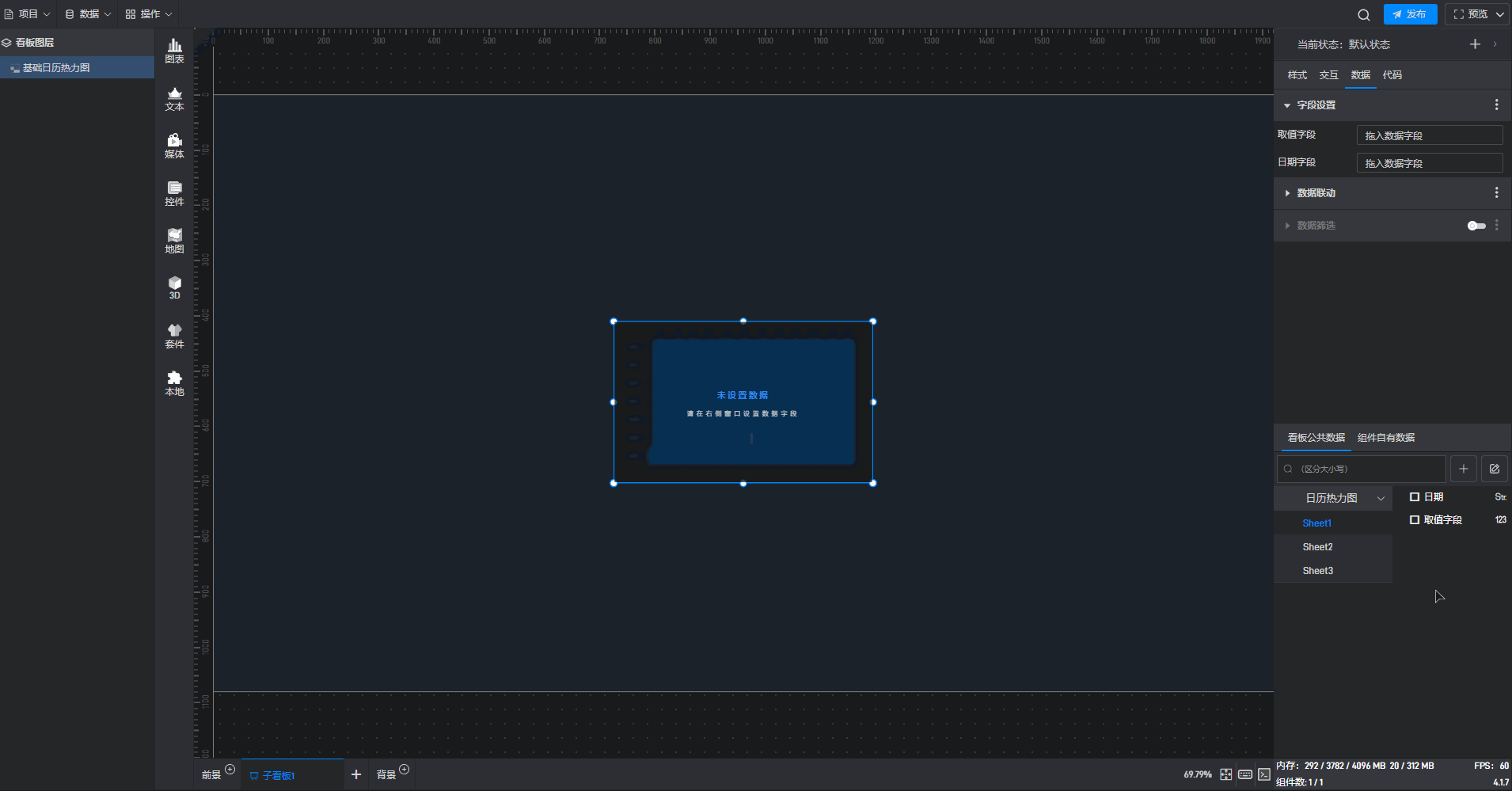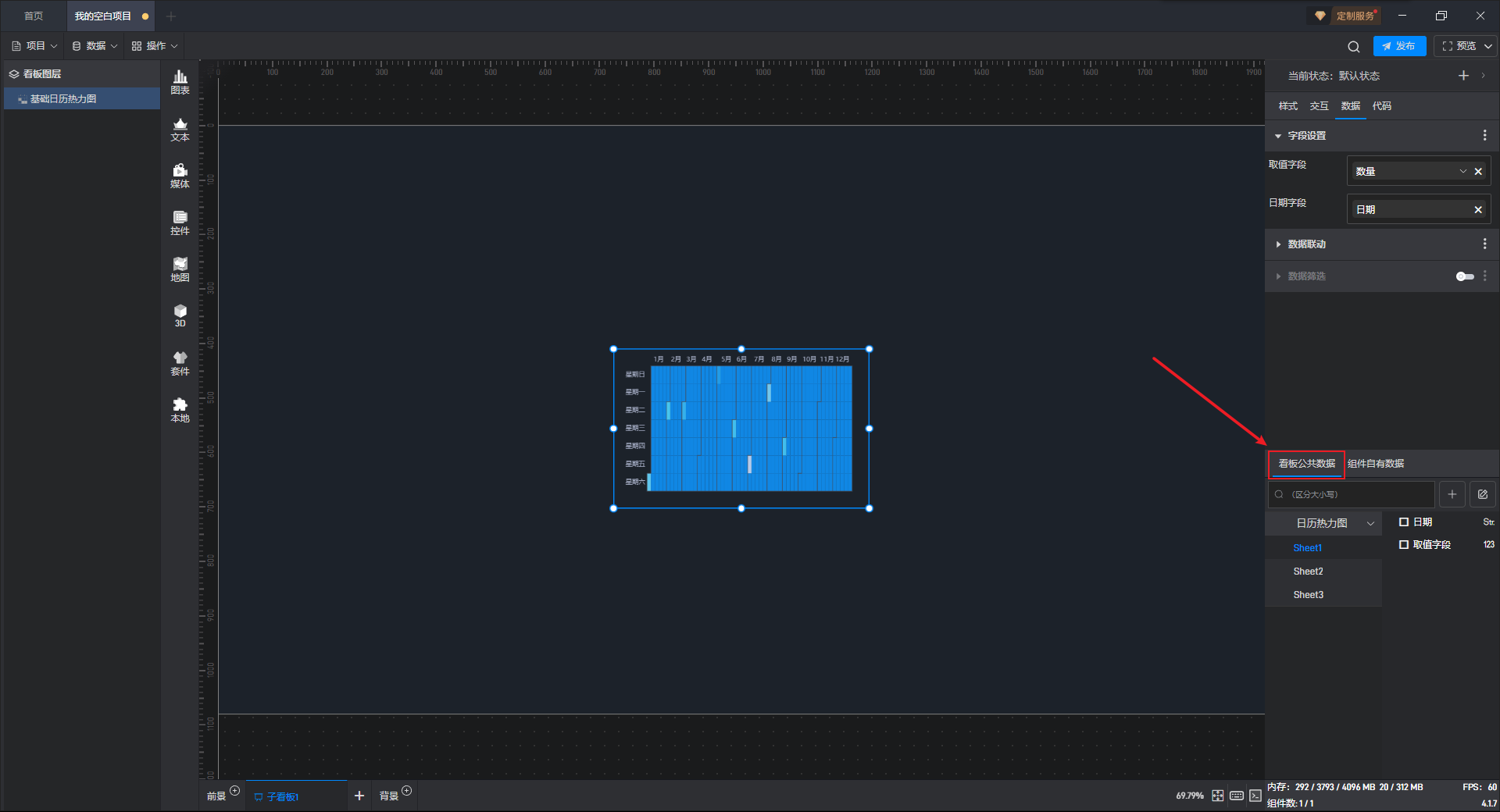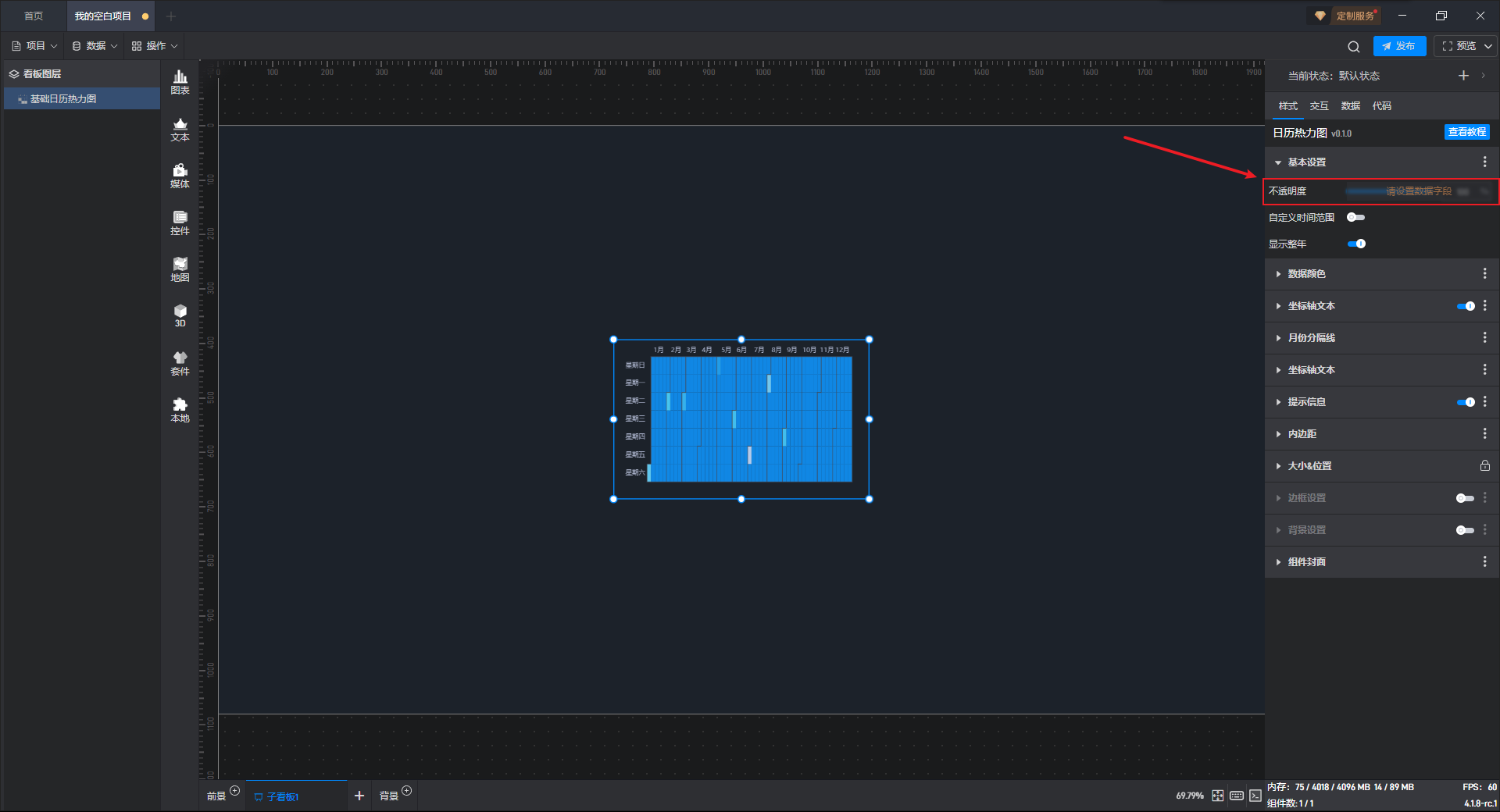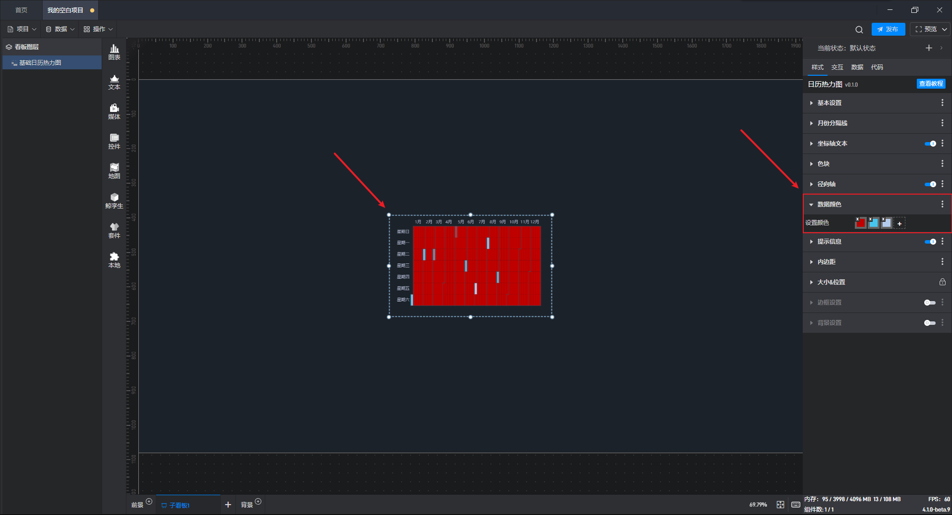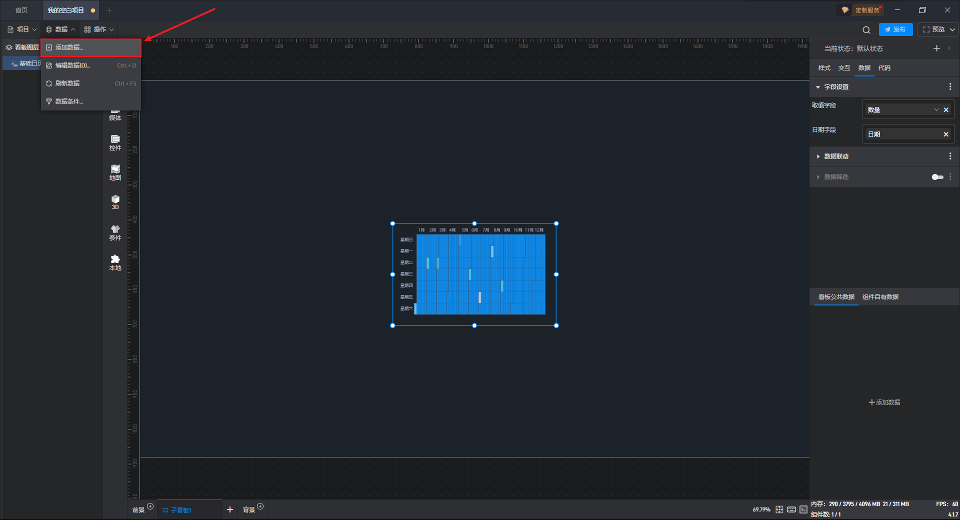 下面我们以基础日历热力图为例,为大家介绍一下组件的使用步骤: